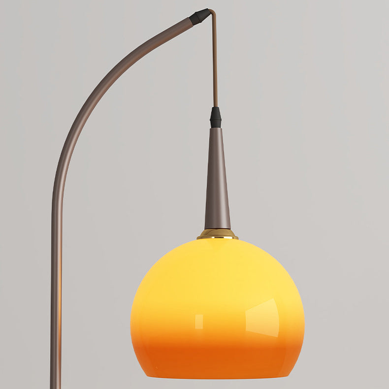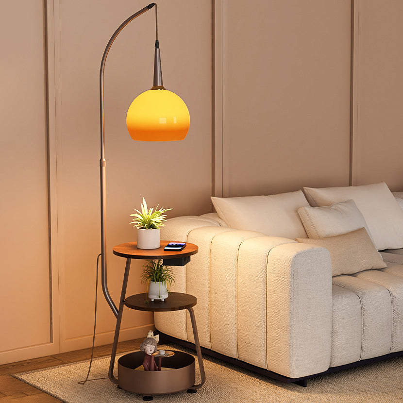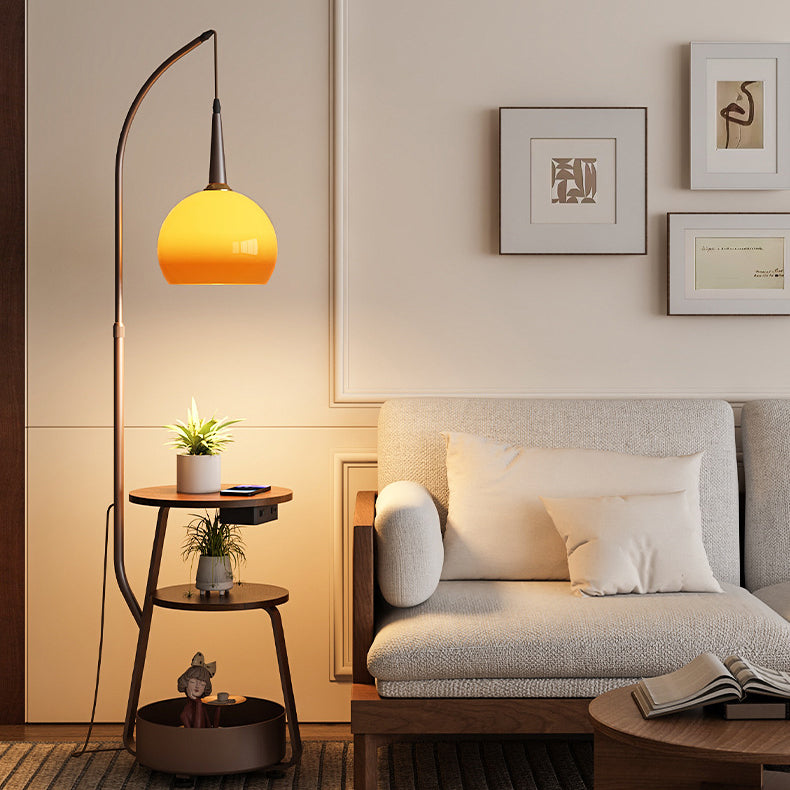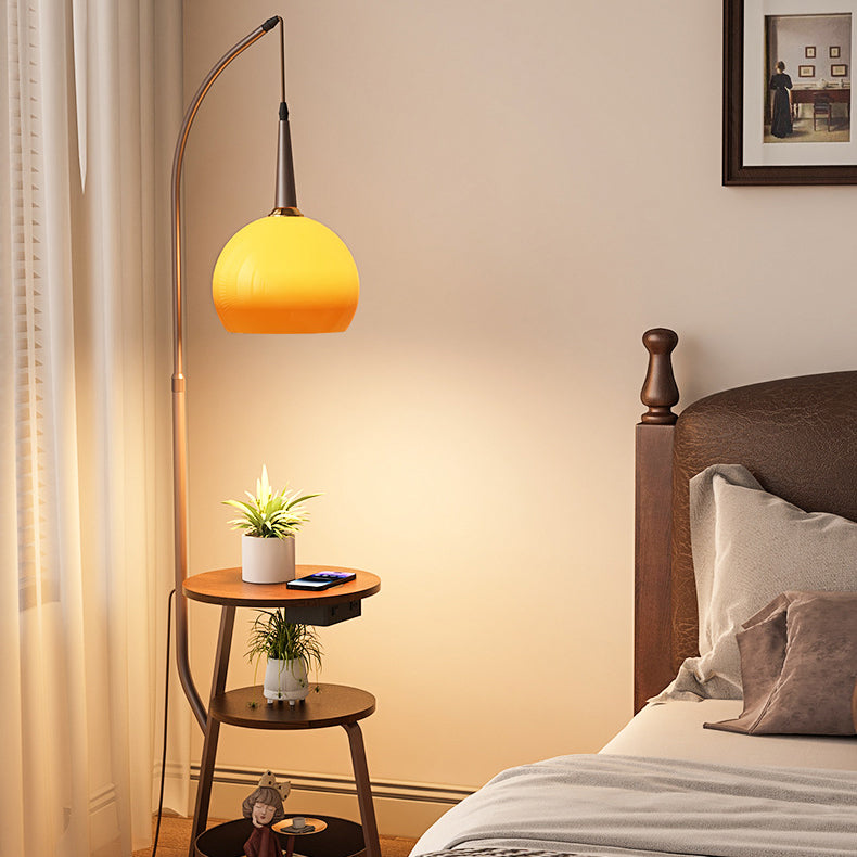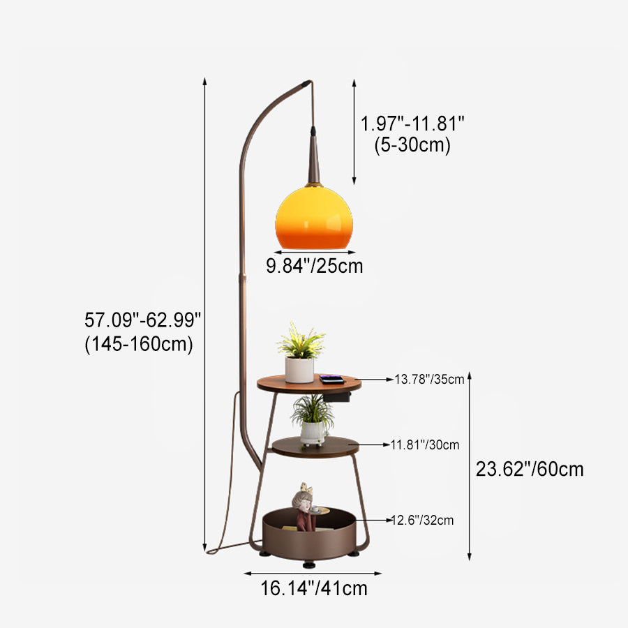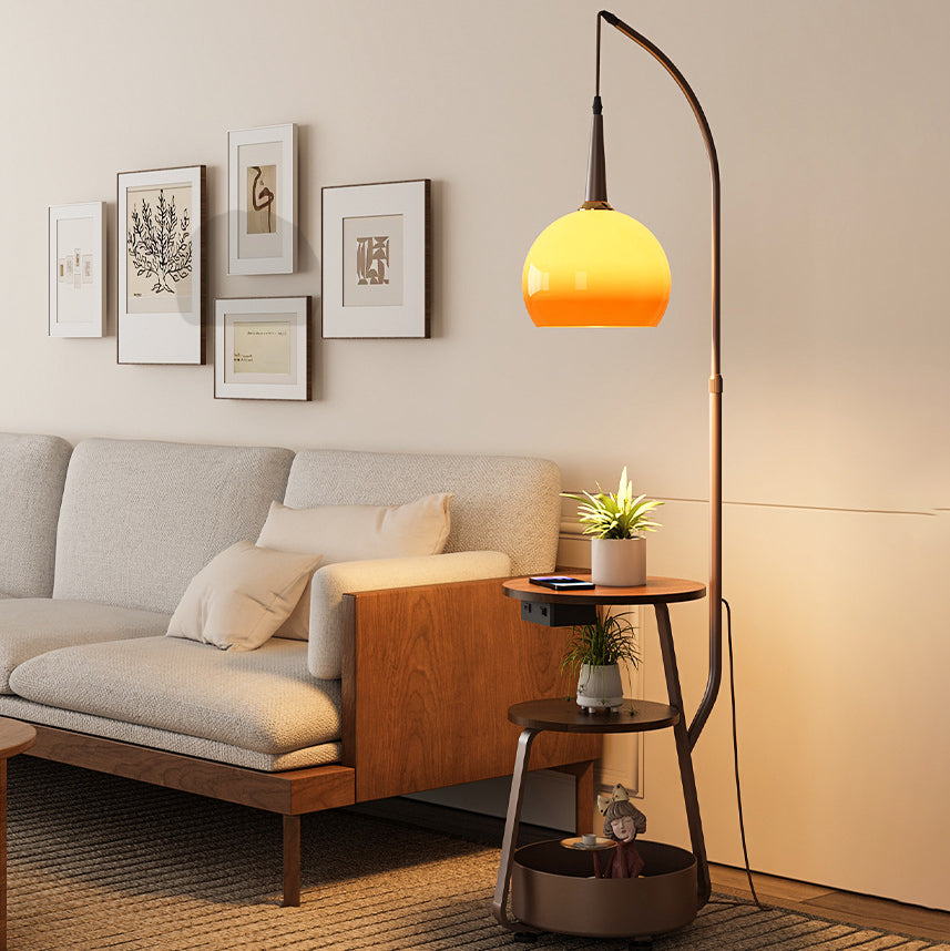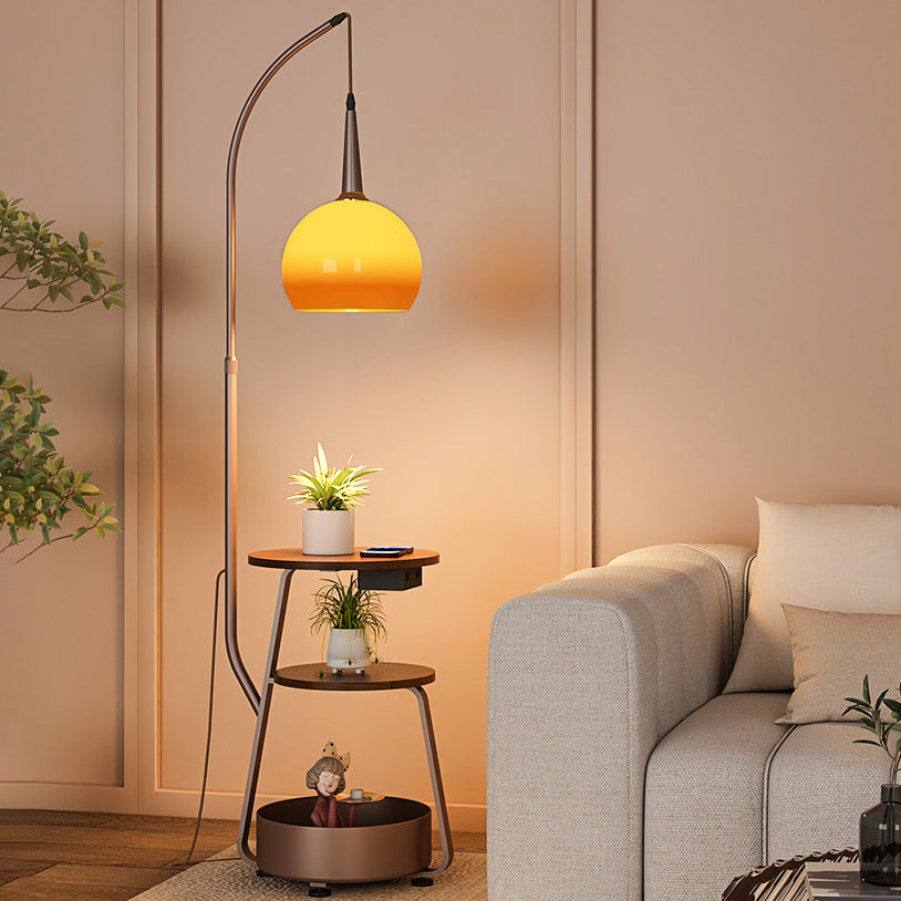 Contemporary Retro Fishing Rod Round Globe Wooden Coffee Table Iron Frame Glass Shade 1-Light Standing Floor Lamp For Living Room