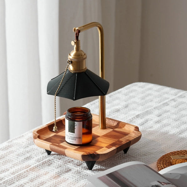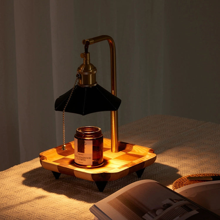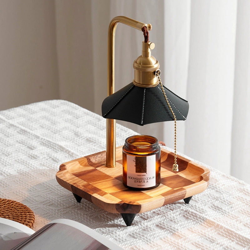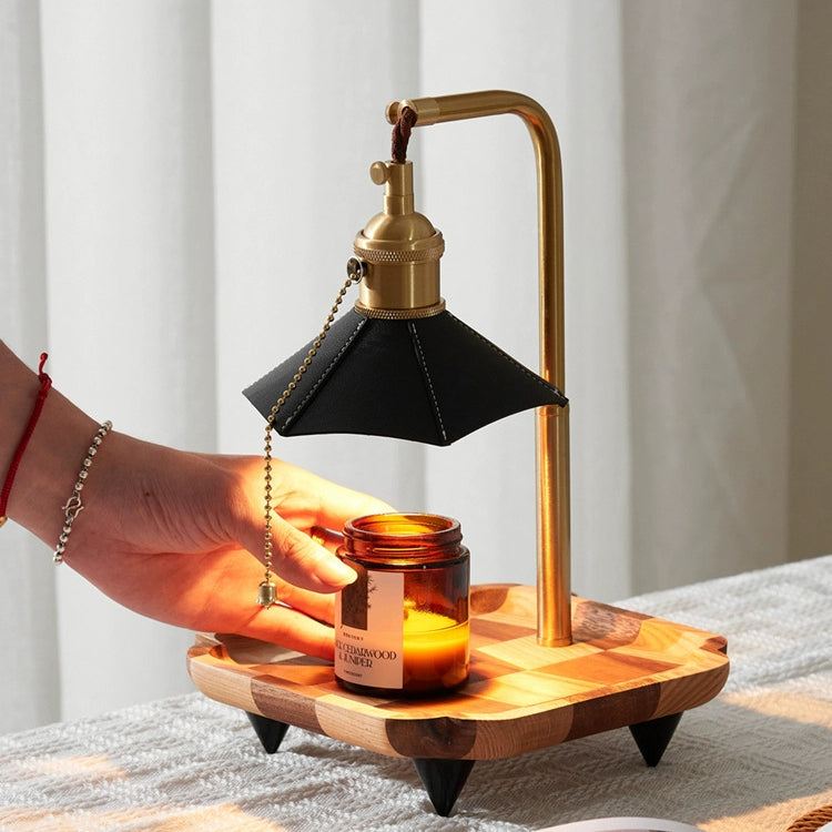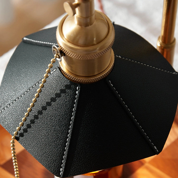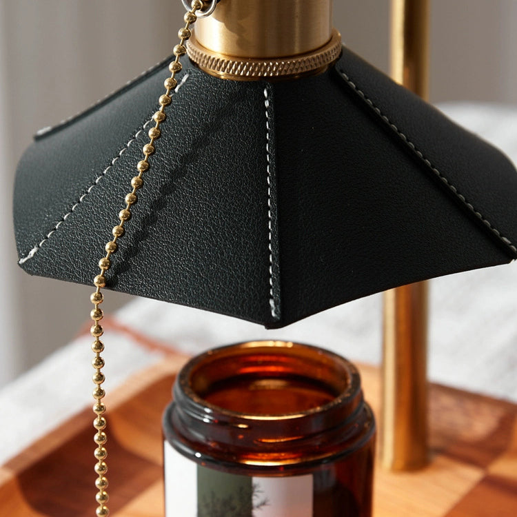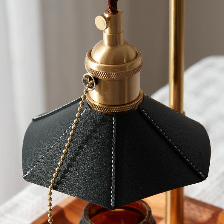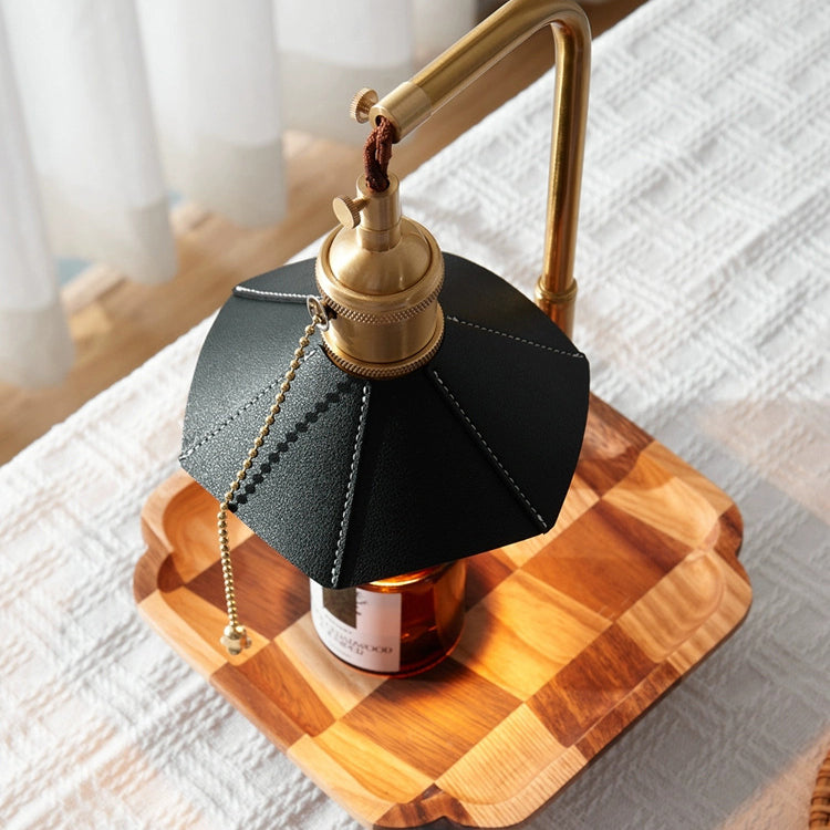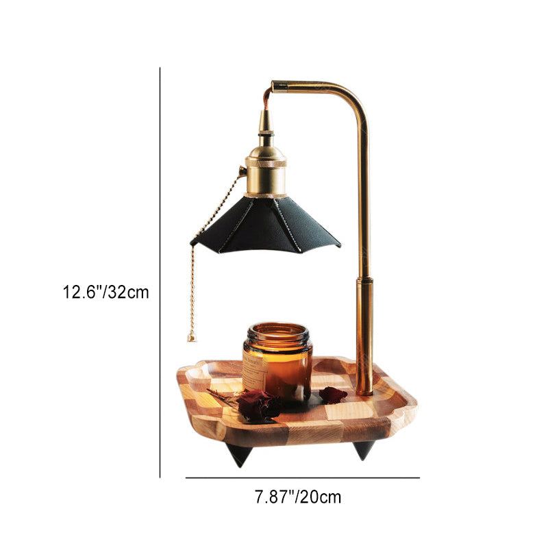 Contemporary Retro Hexagonal Umbrella Shape Wooden Base Brass Leather Shade 1-Light Aroma Melting Wax Table Lamp For Bedroom