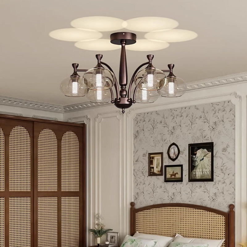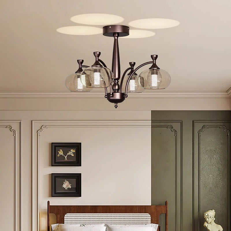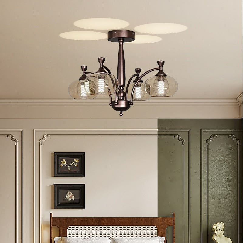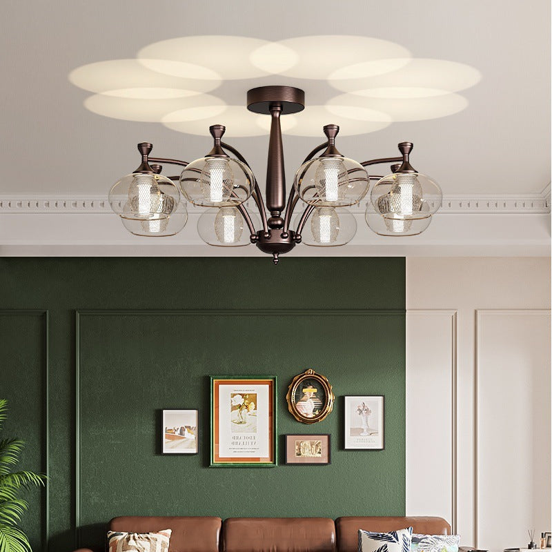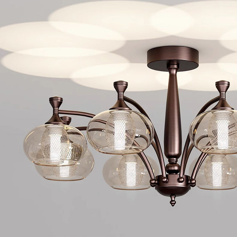 Contemporary Retro Oval Glass Lampshade Aluminum Hardware LED Chandeliers For Living Room