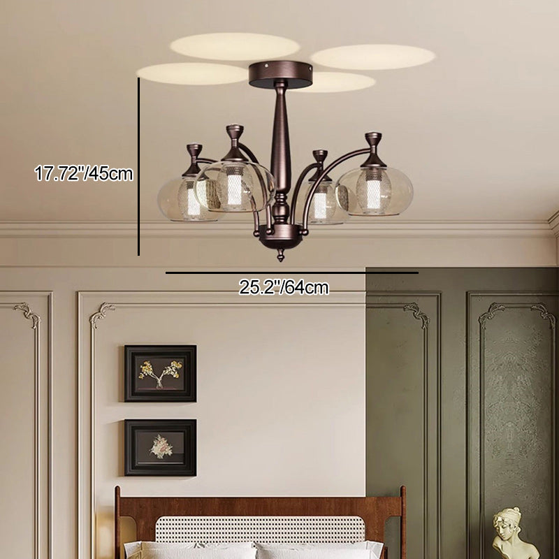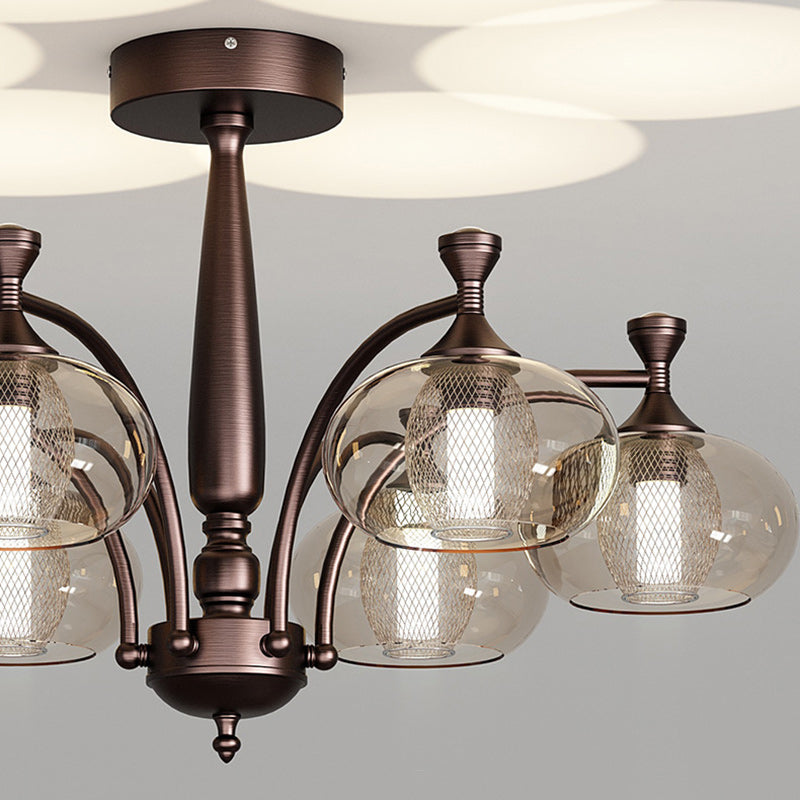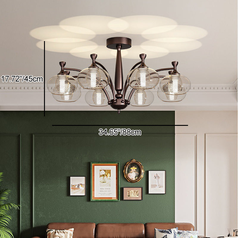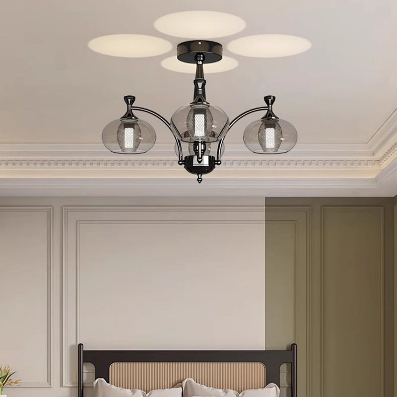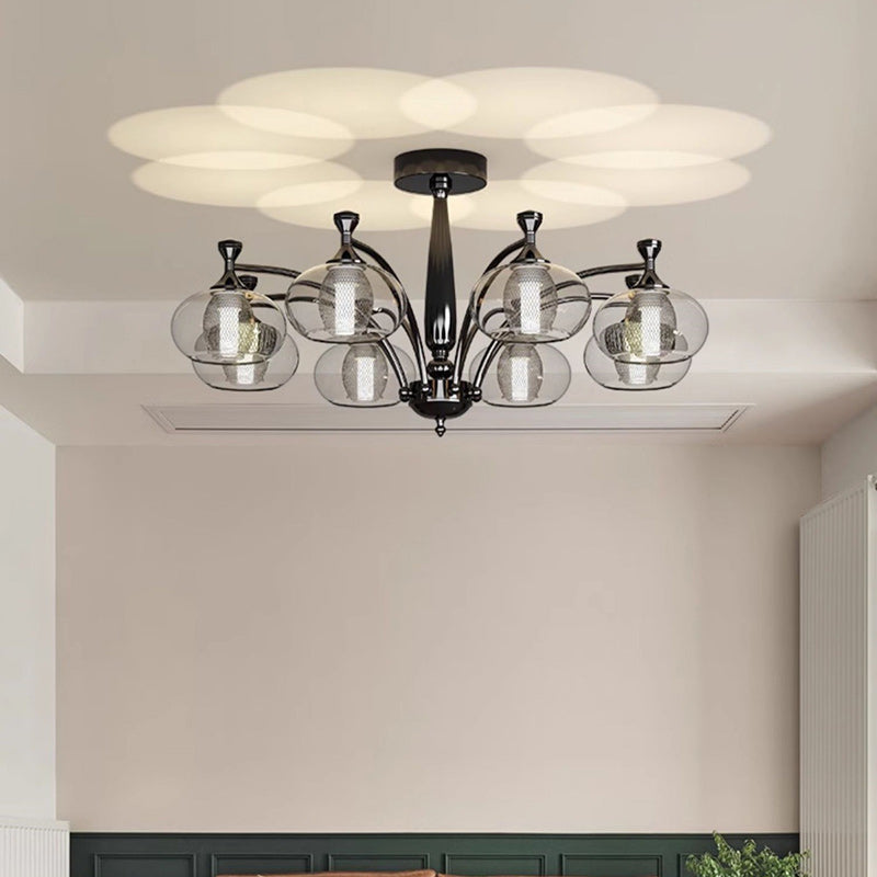Contemporary Retro Oval Glass Lampshade Aluminum Hardware LED Chandeliers For Living Room