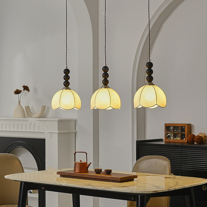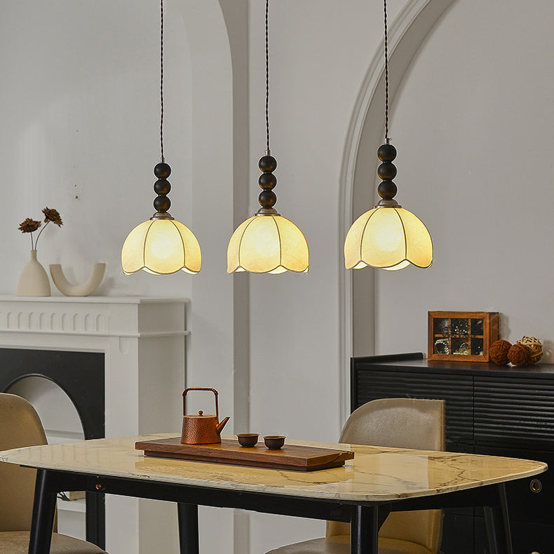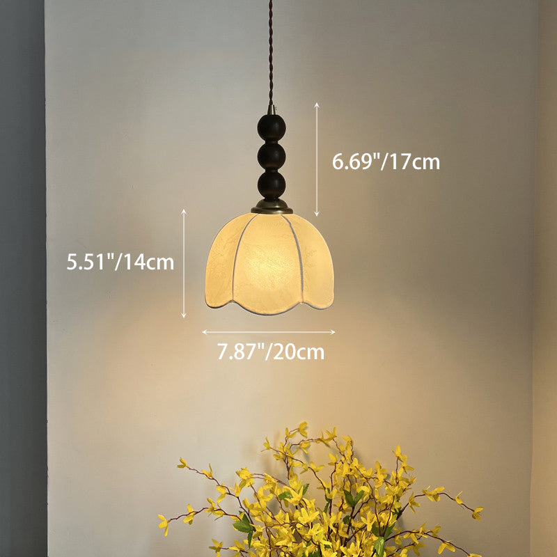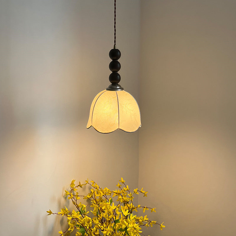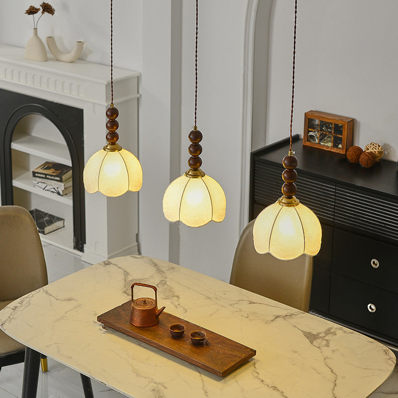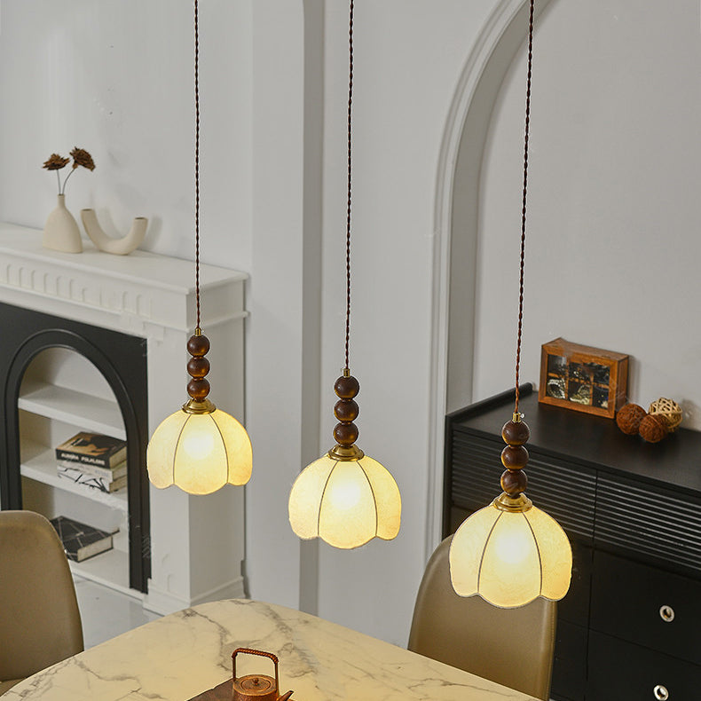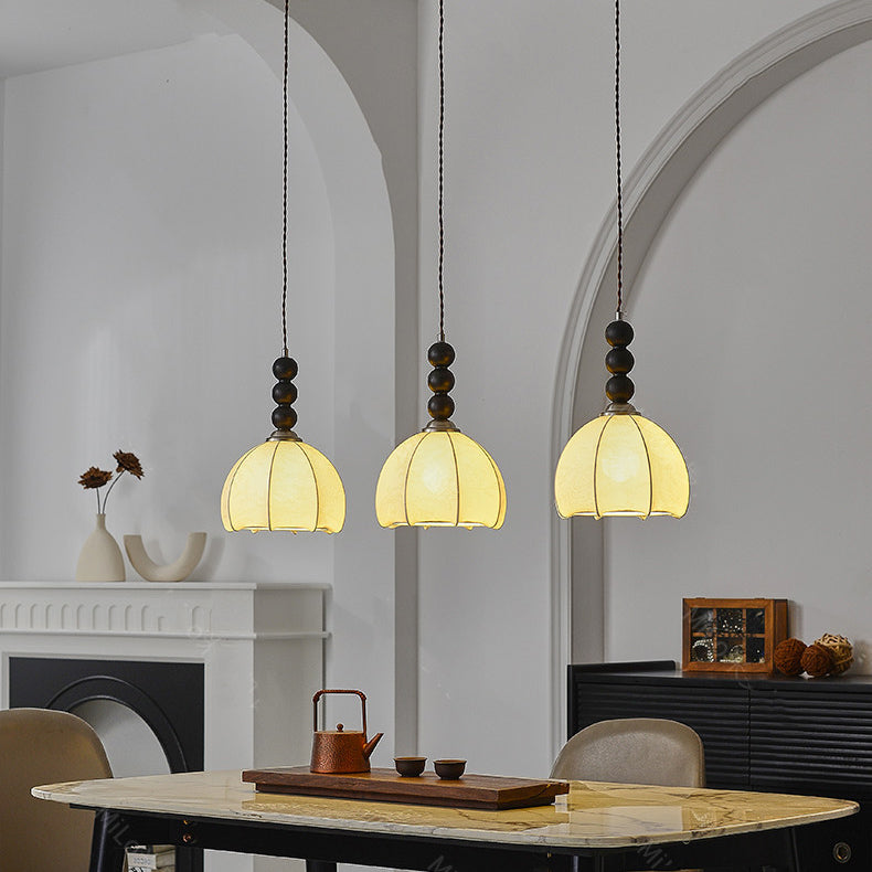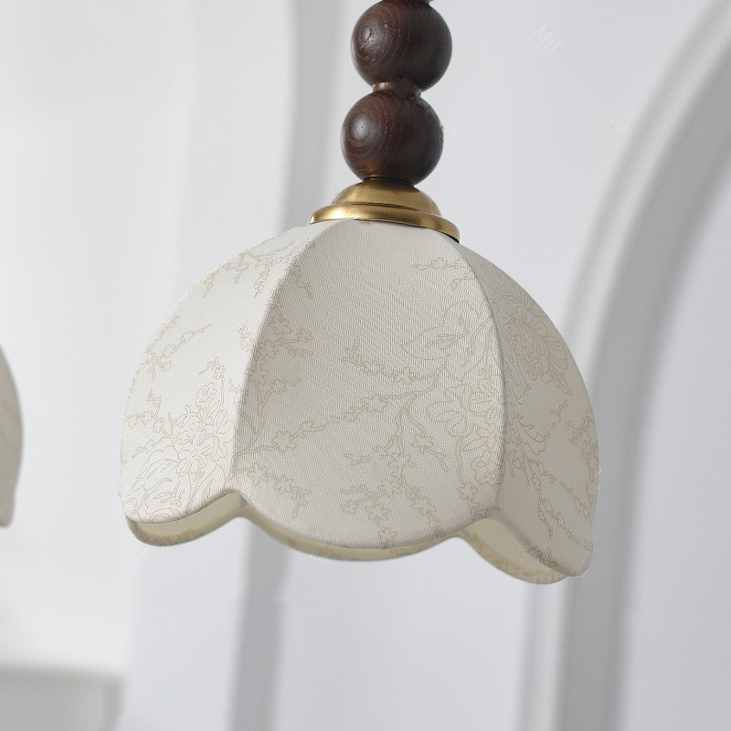Contemporary Retro Petal Fabric Wood Ball 1-Light Pendant Light For Living Room