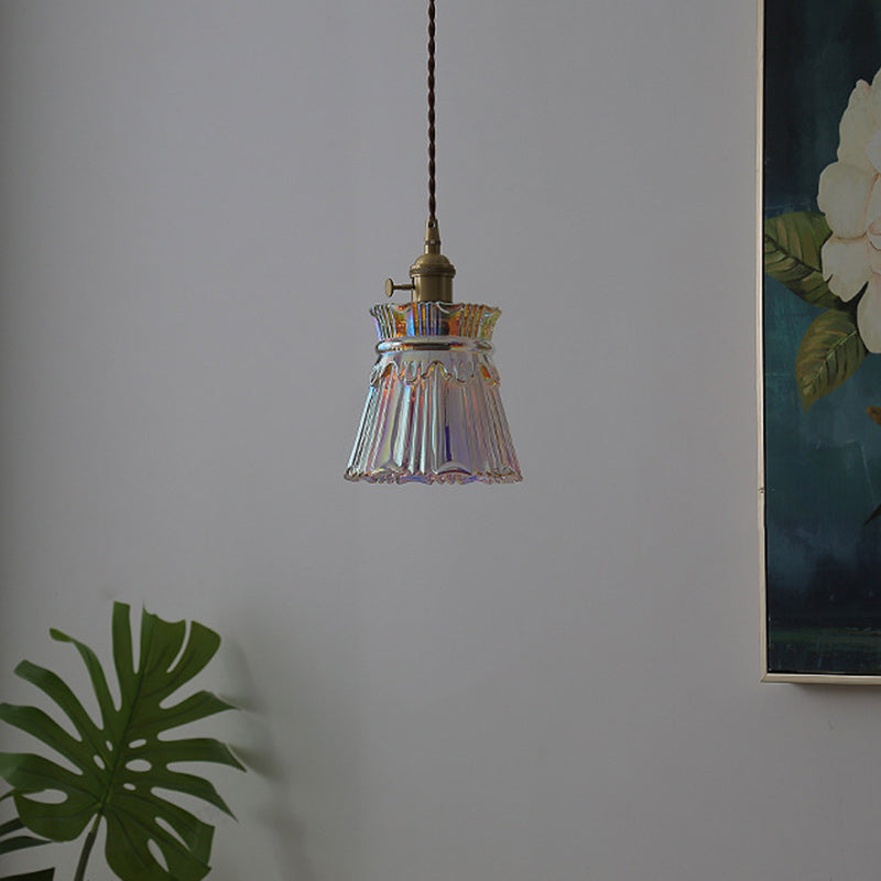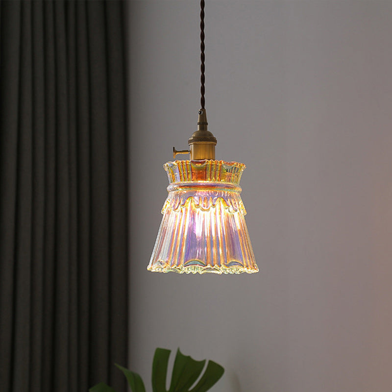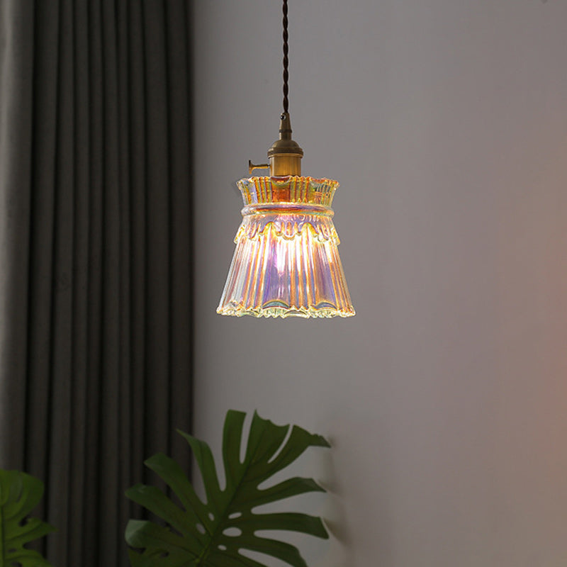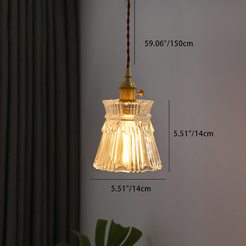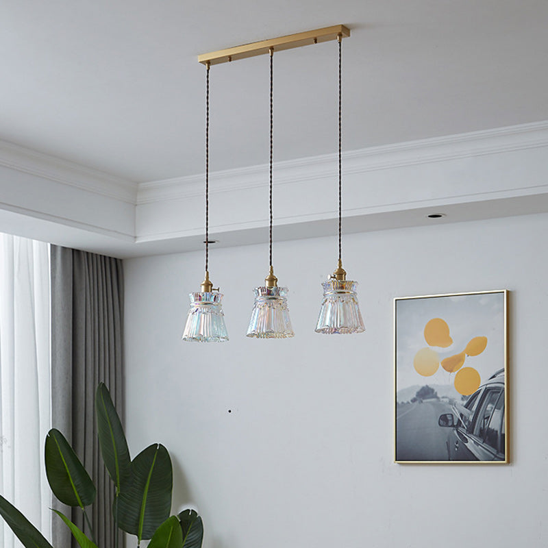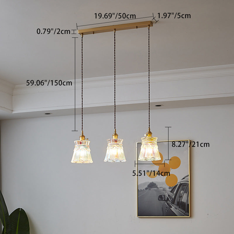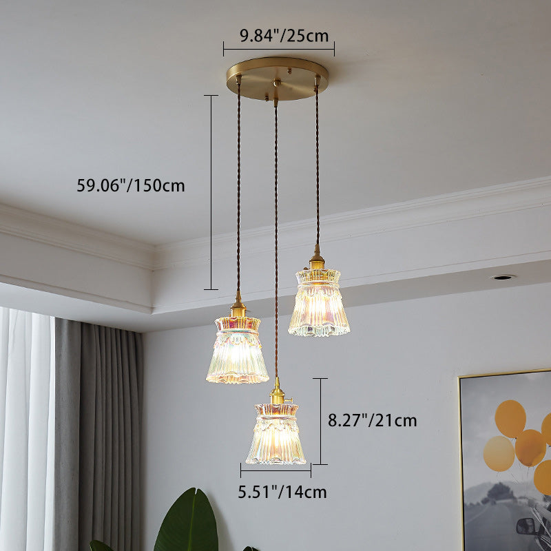 Contemporary Retro Skirt Shape Transparent Glass Lampshade Copper 1/3 - Light Pendant Light For Living Room