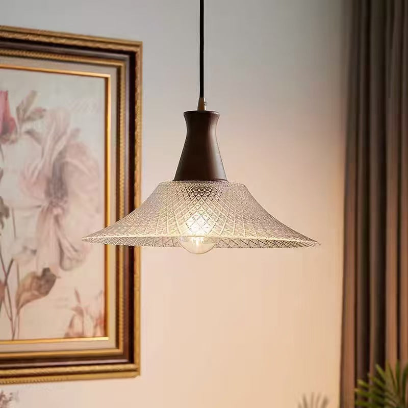 Contemporary Retro Solid Wood Conical Glass Shade 1-Light Pendant Light For Dining Room