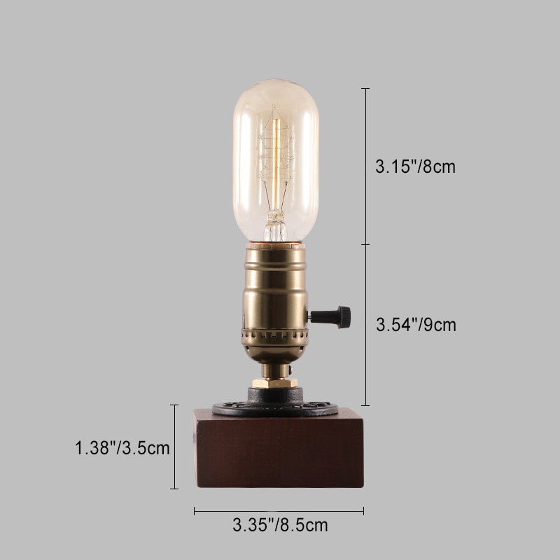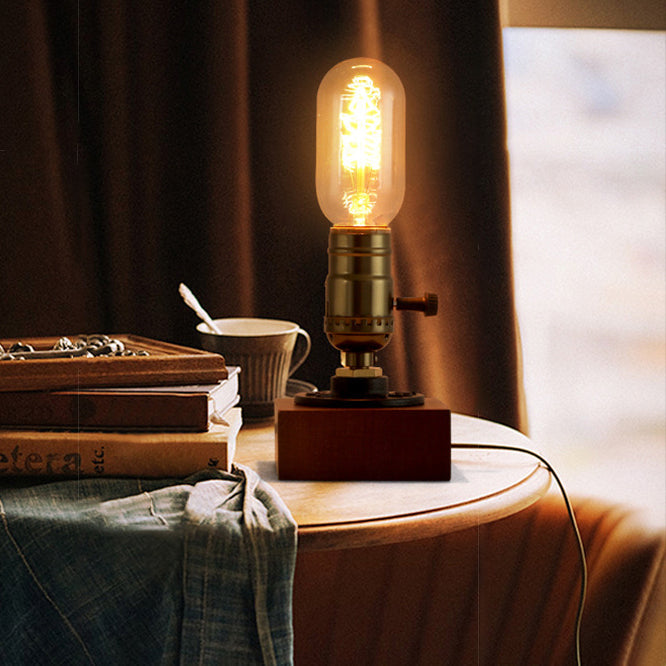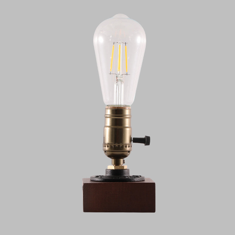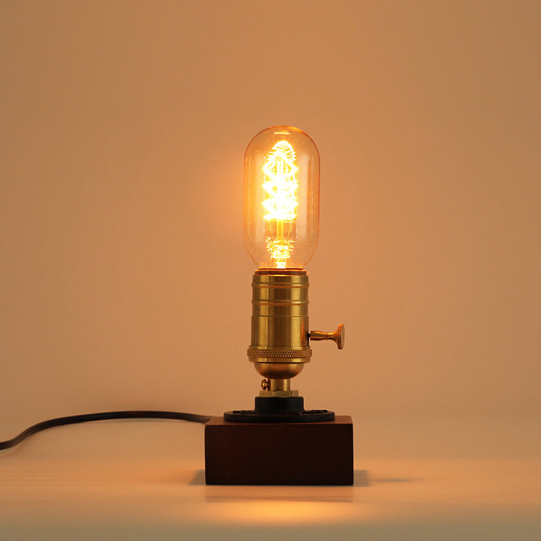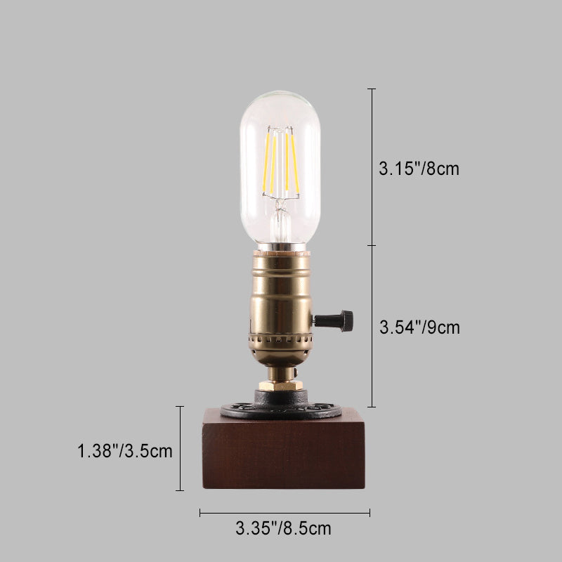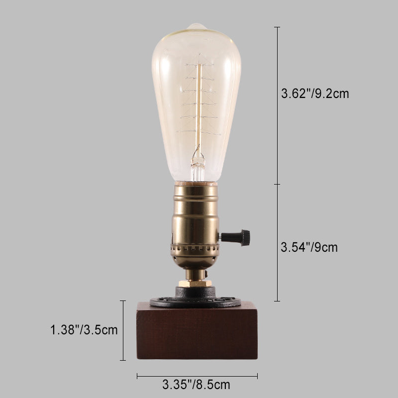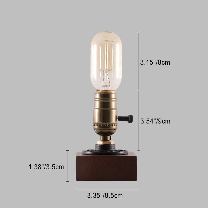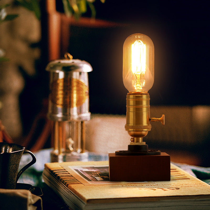 Contemporary Retro Square Base Elliptical Bulb Aluminium Copper Walnut 1-Light Table Lamp For Bedside