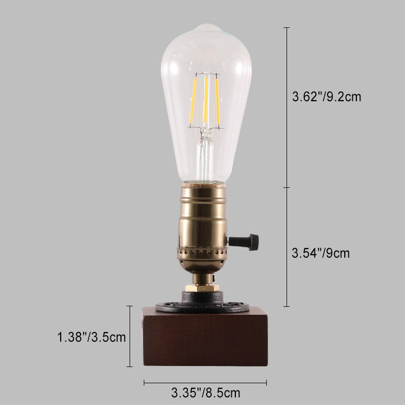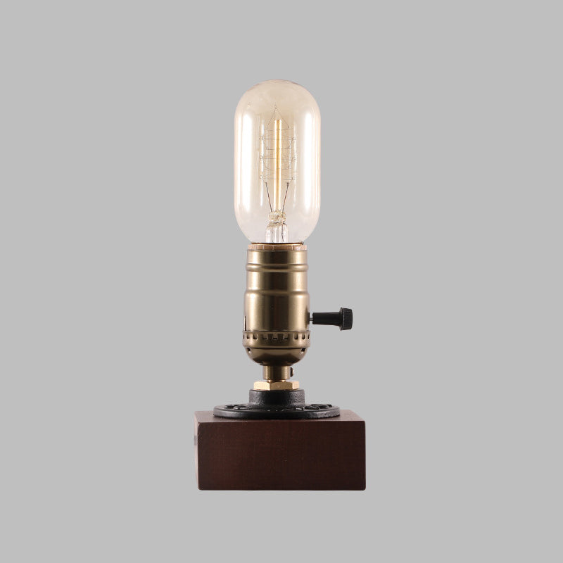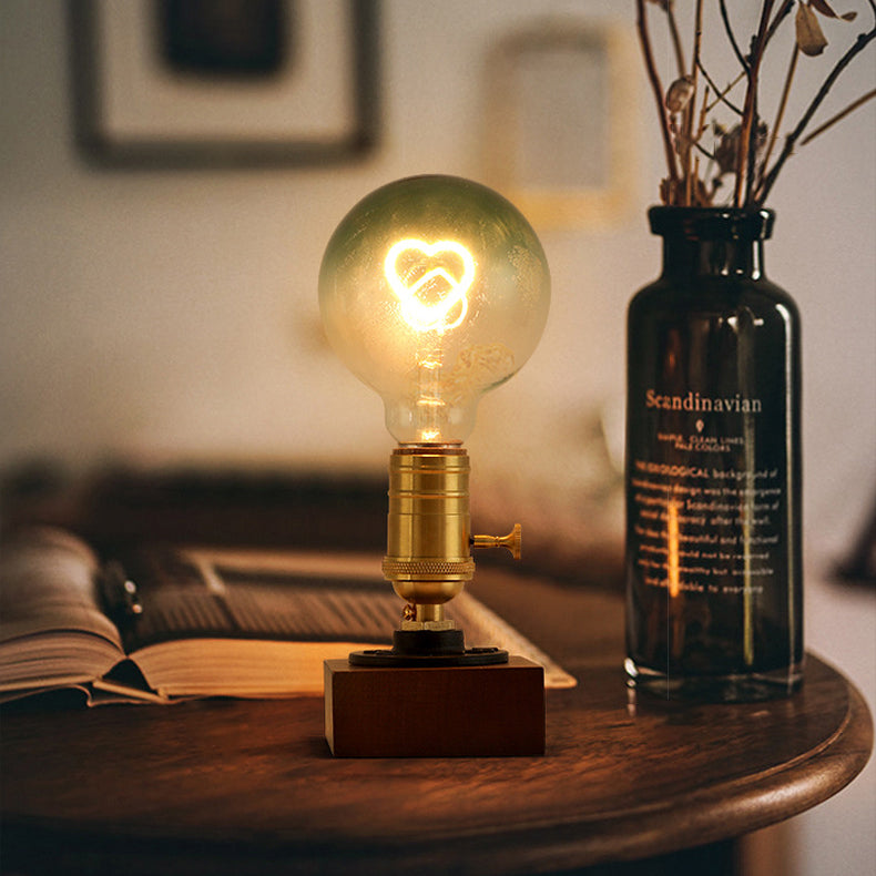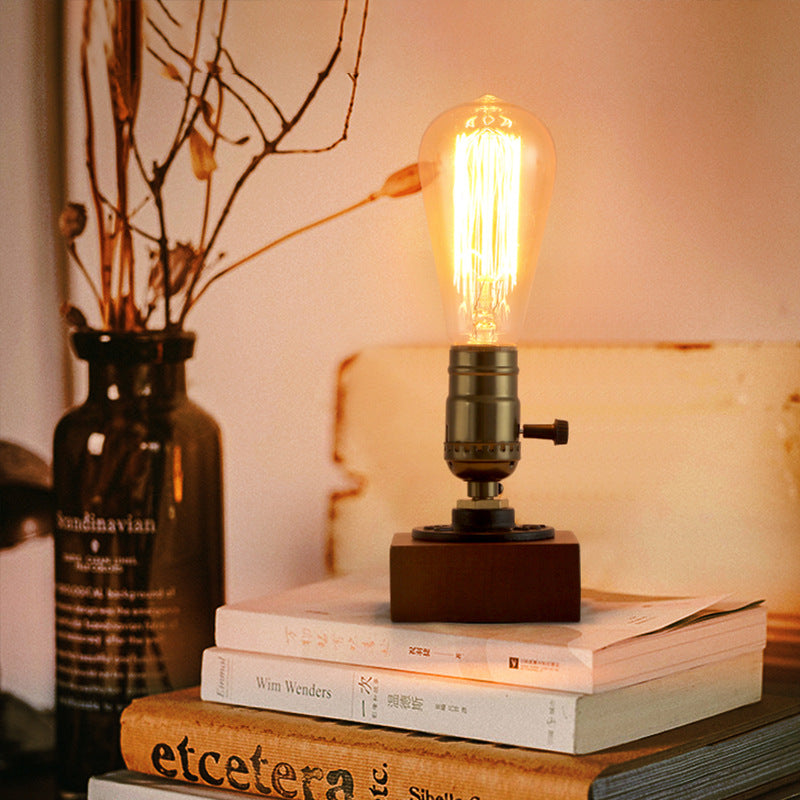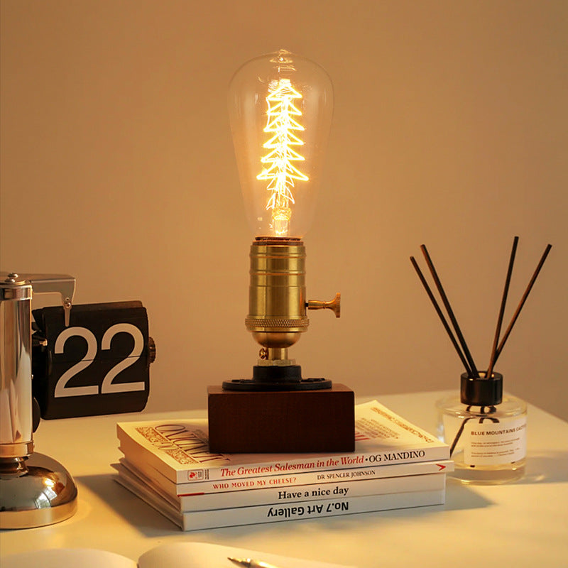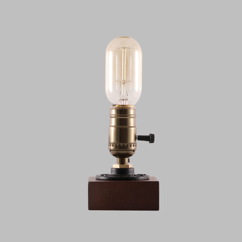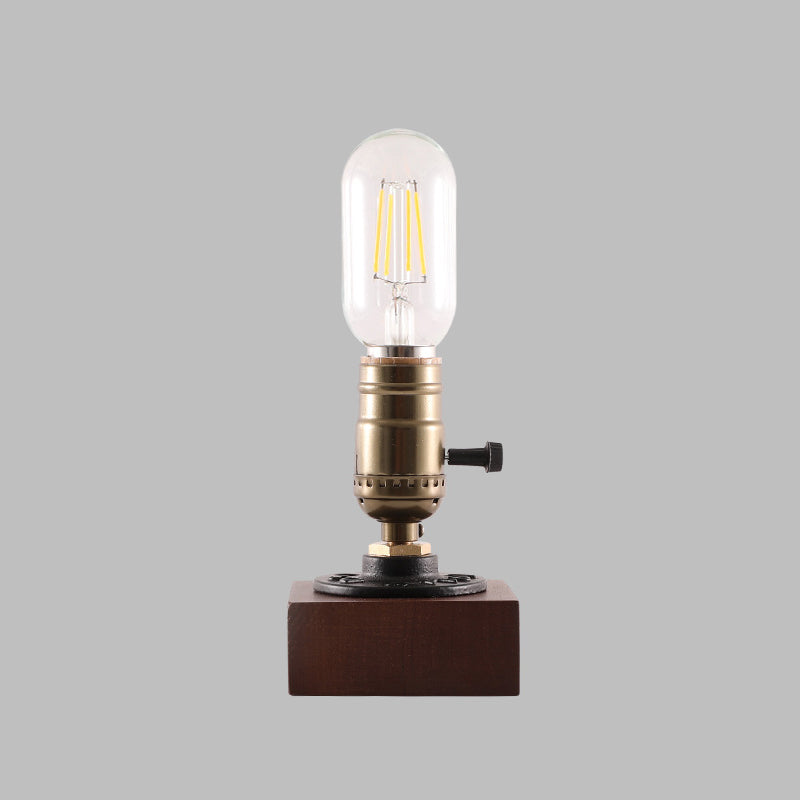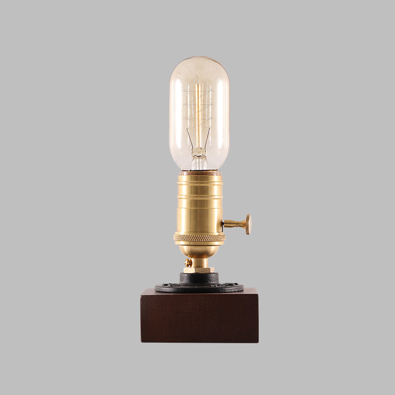 Contemporary Retro Square Base Elliptical Bulb Aluminium Copper Walnut 1-Light Table Lamp For Bedside