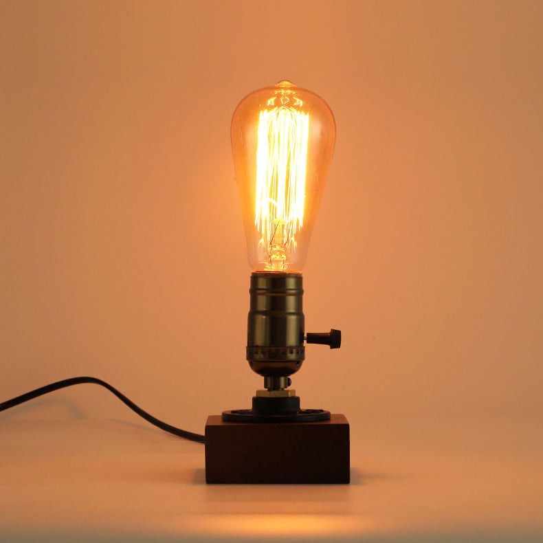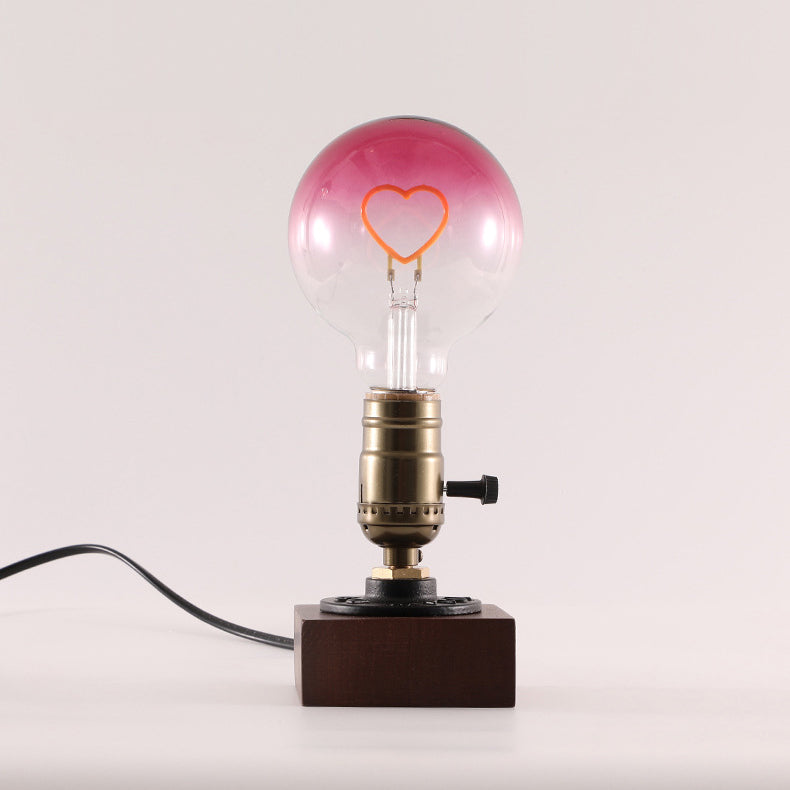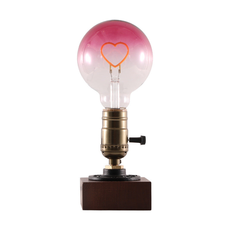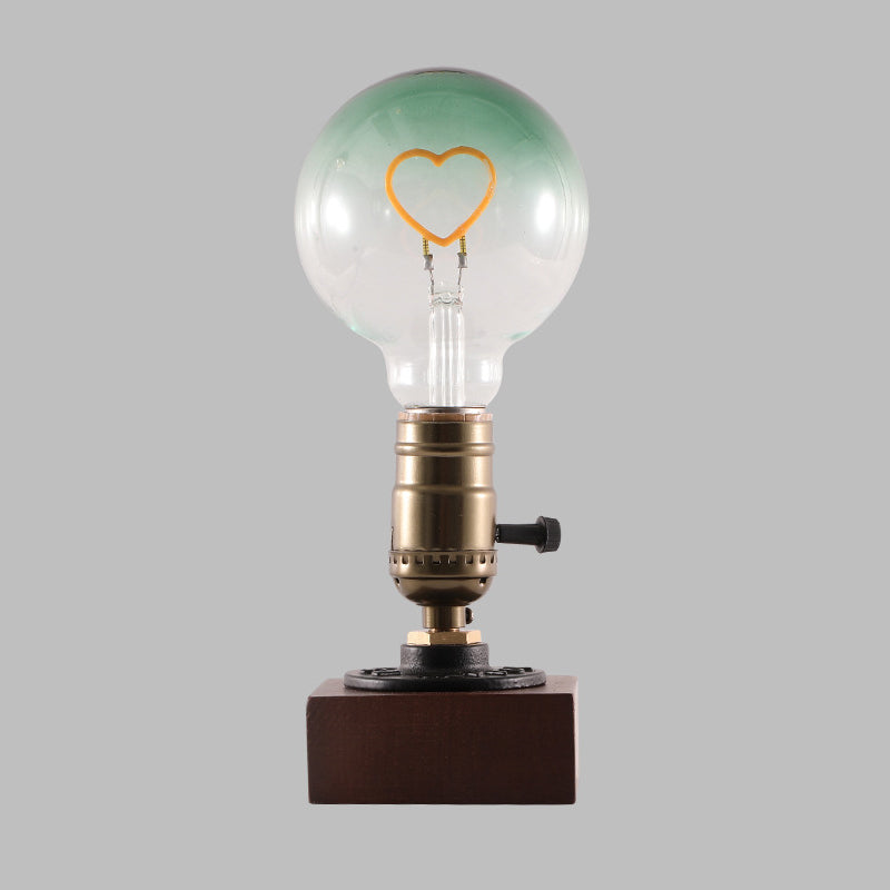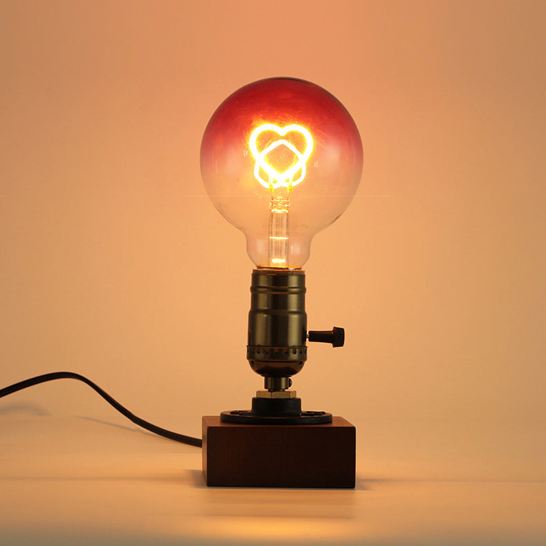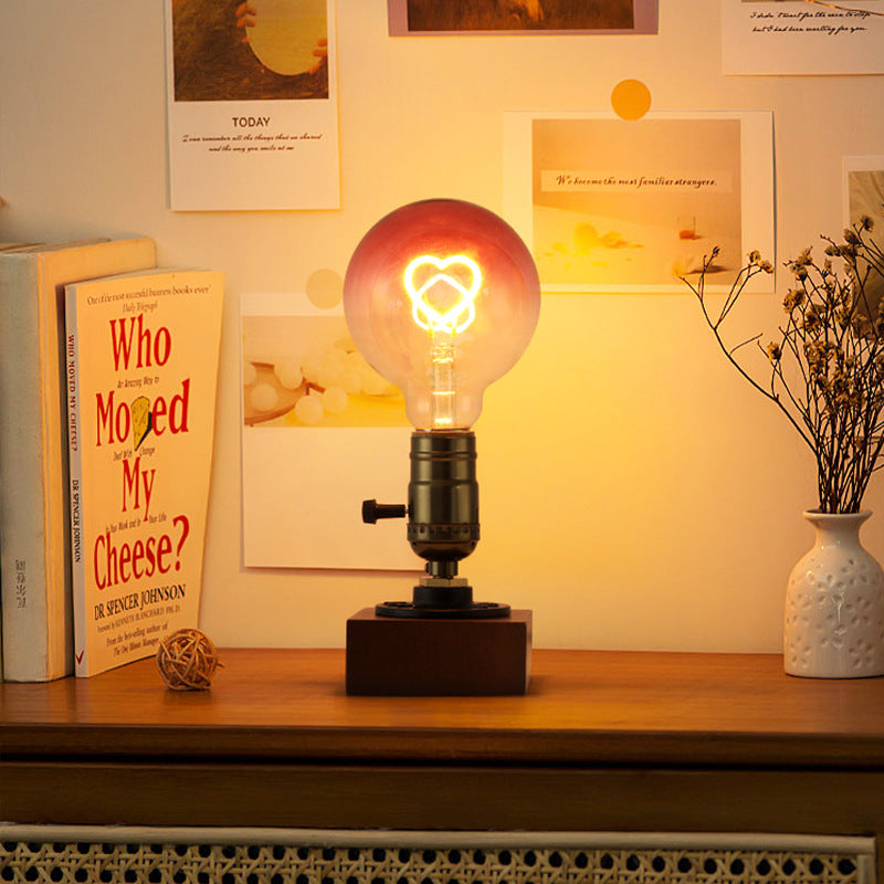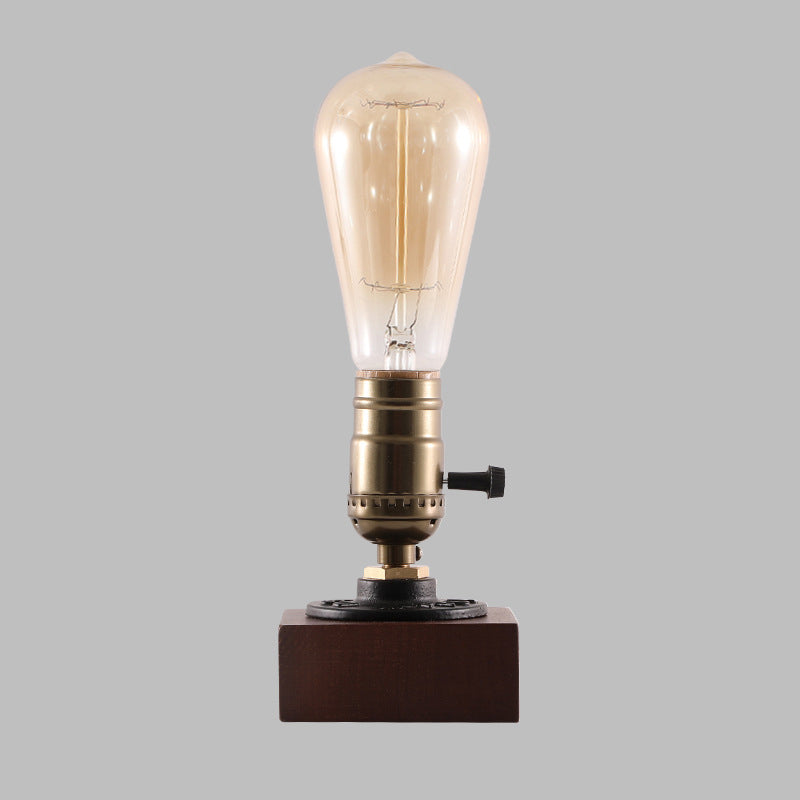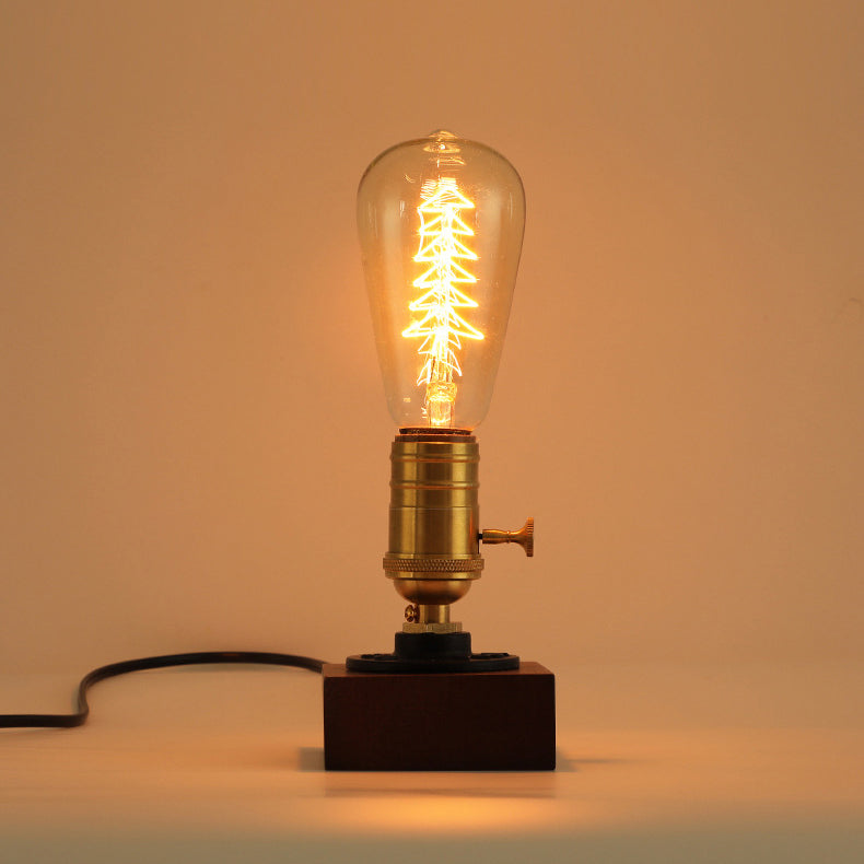 Contemporary Retro Square Base Elliptical Bulb Aluminium Copper Walnut 1-Light Table Lamp For Bedside