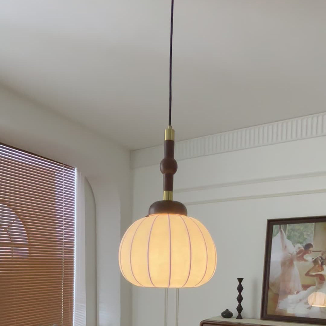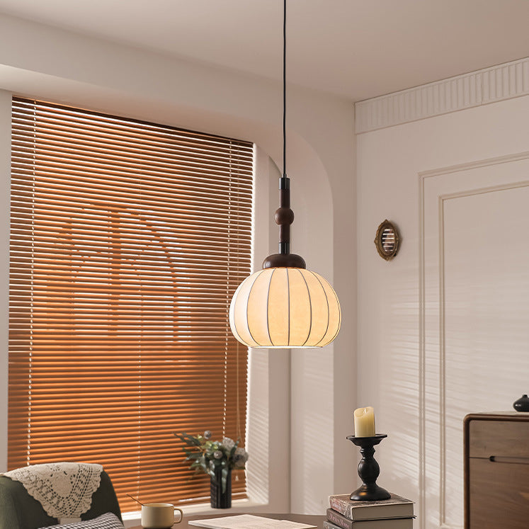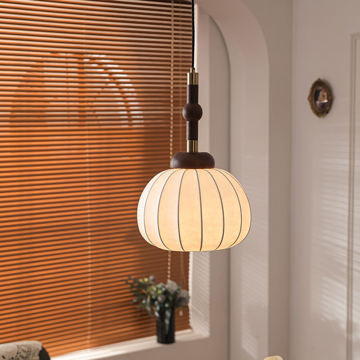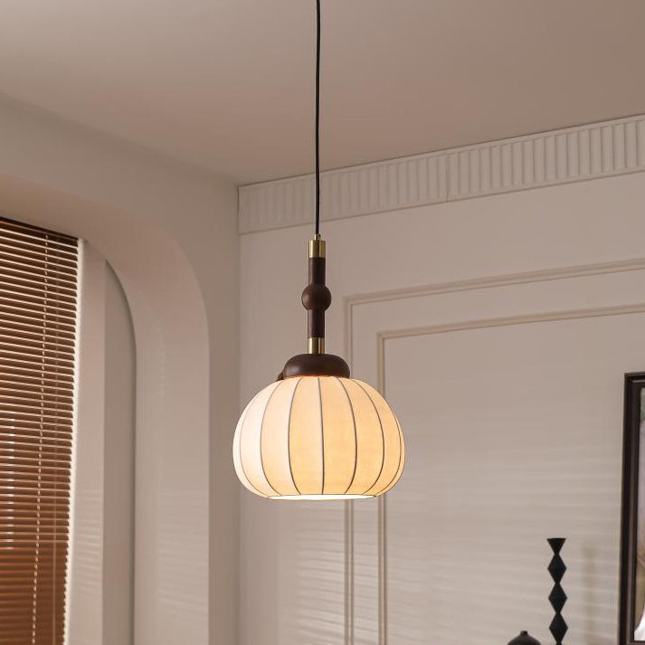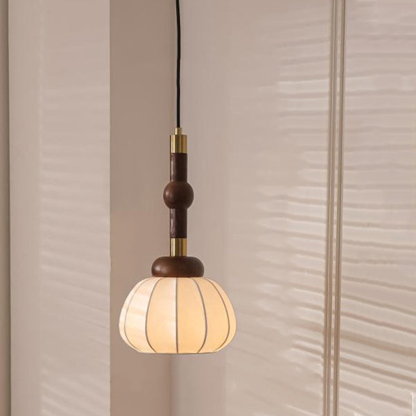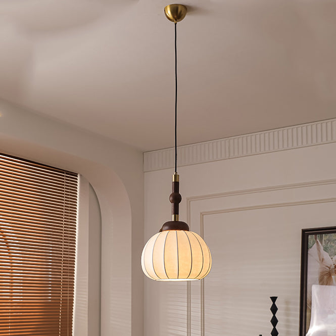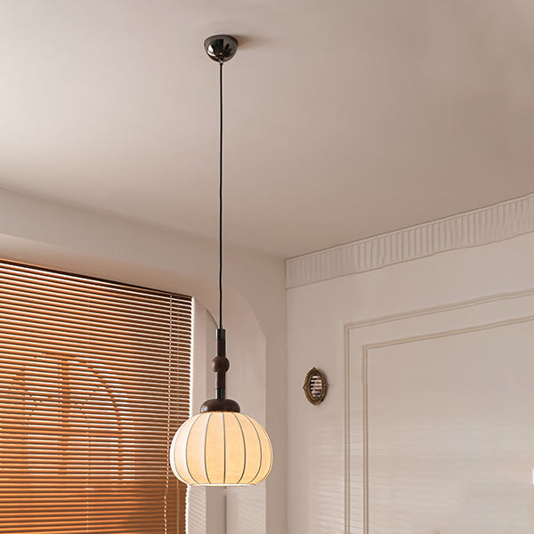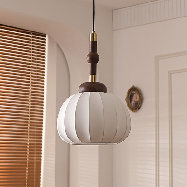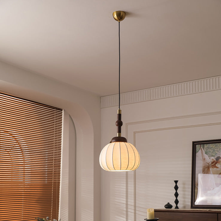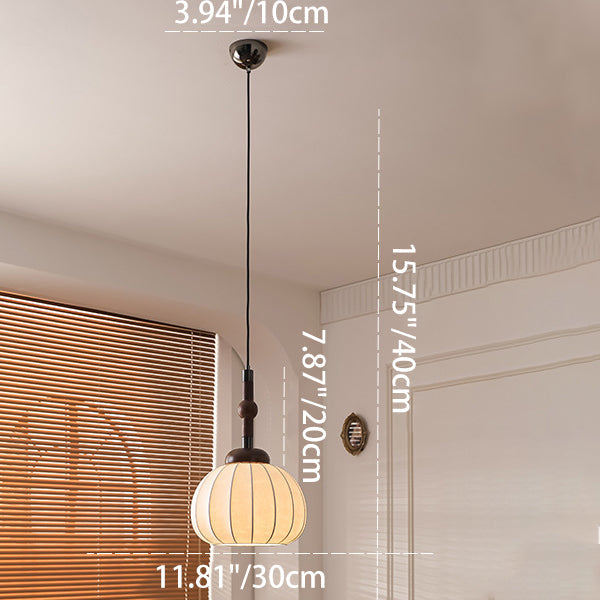 Contemporary Retro Wood Aluminum Silk Globe 1-Light Pendant Light For Living Room