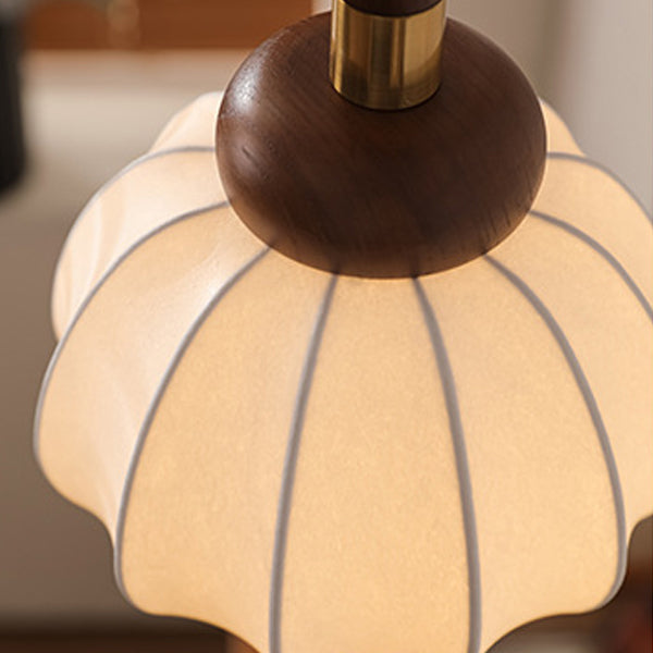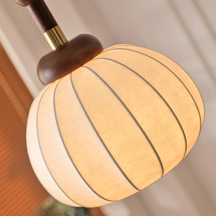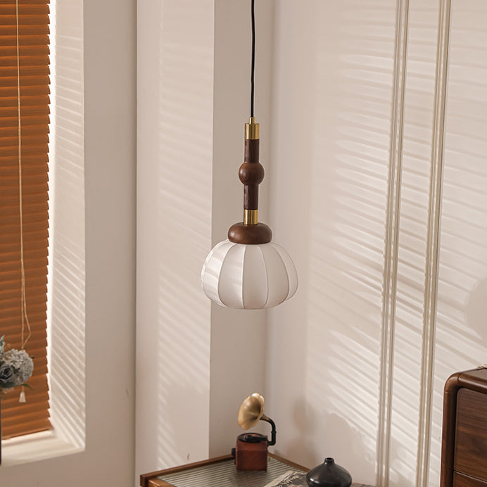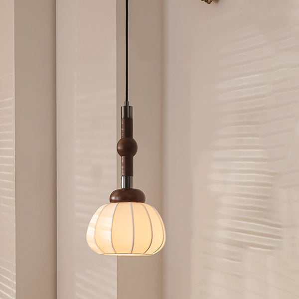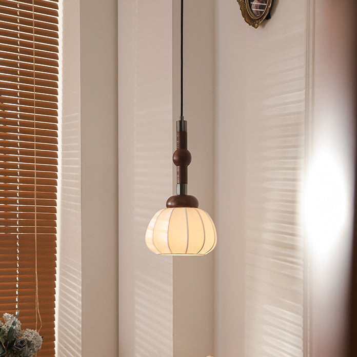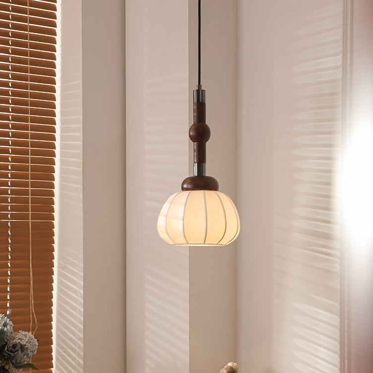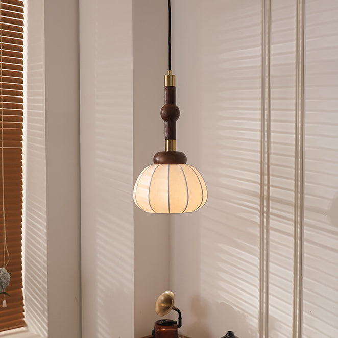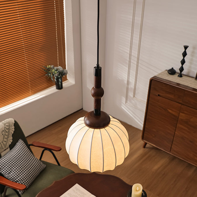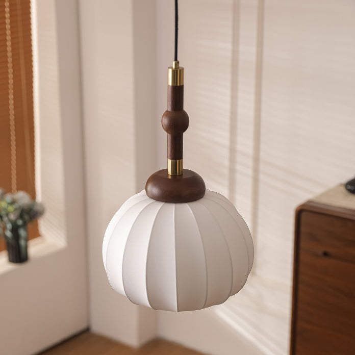 Contemporary Retro Wood Aluminum Silk Globe 1-Light Pendant Light For Living Room