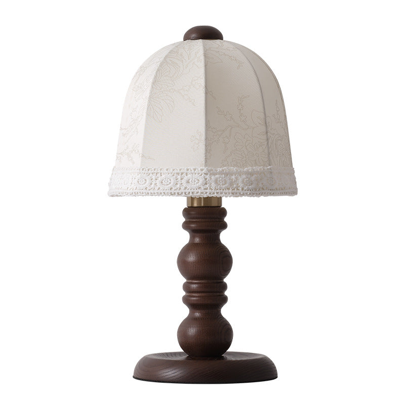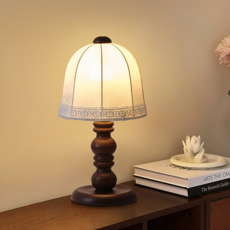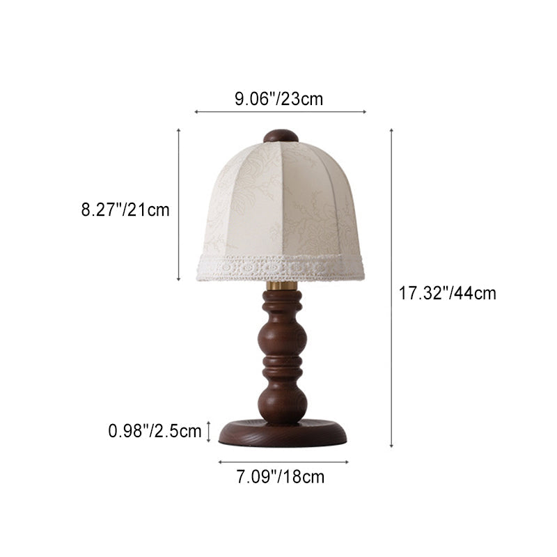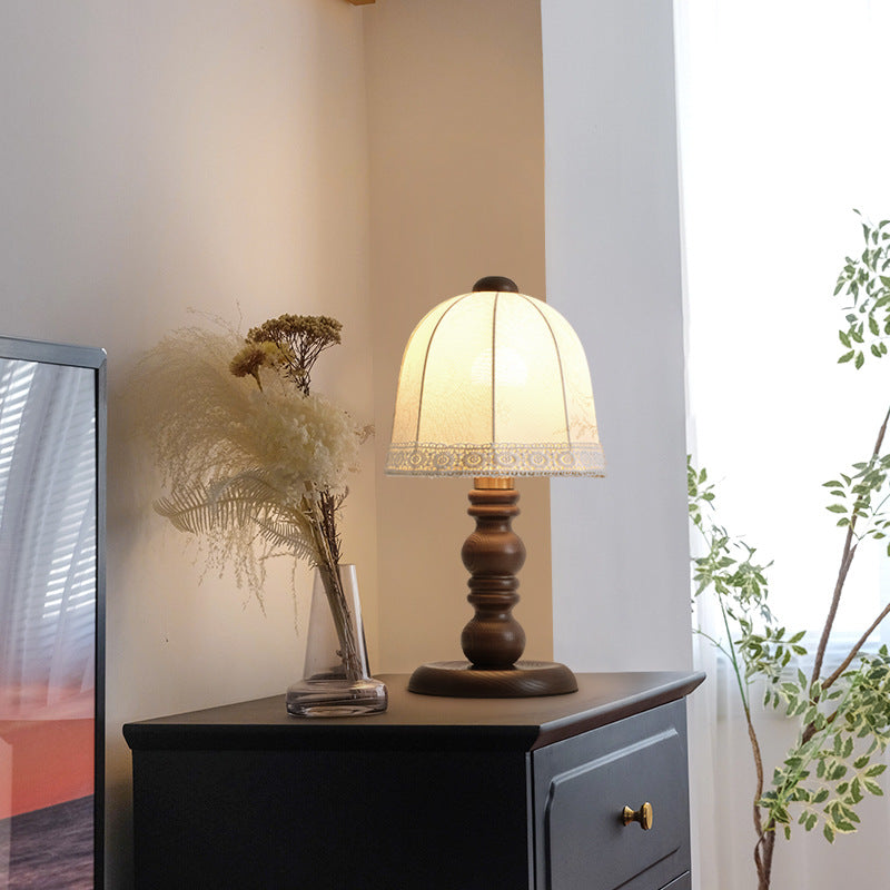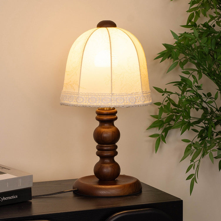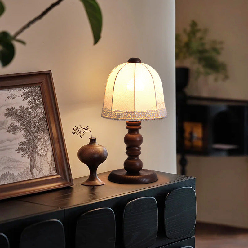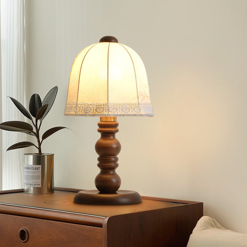Contemporary Retro Wood Fabric Dome 1-Light Table Lamp For Bedroom