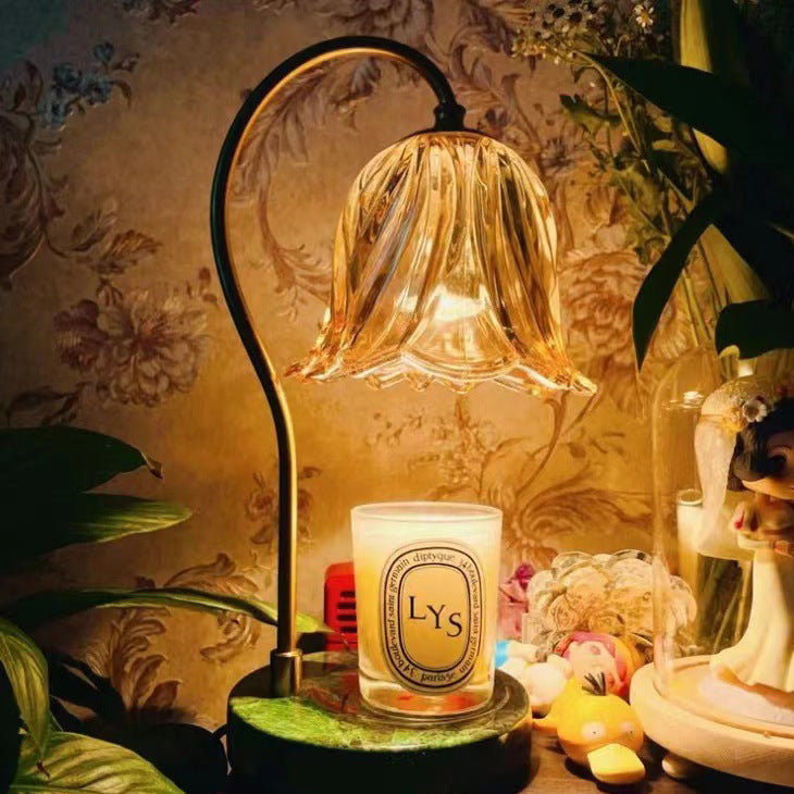 Contemporary Scandinavian Bellflower Disc Base Marble Iron Glass 1-Light Melting Wax Table Lamp For Bedroom