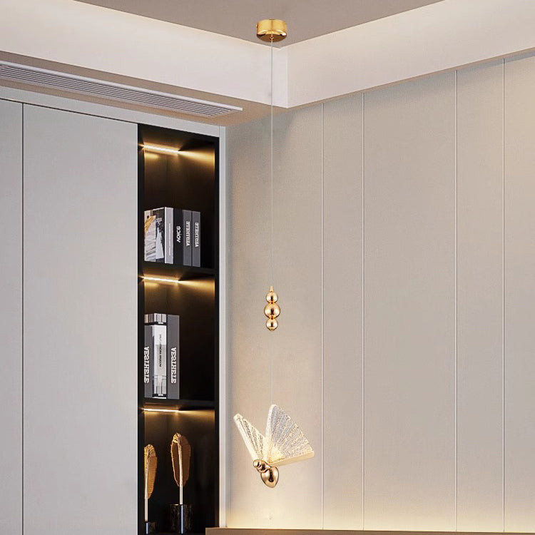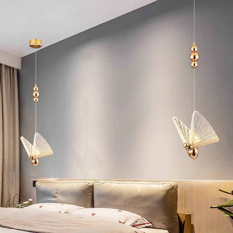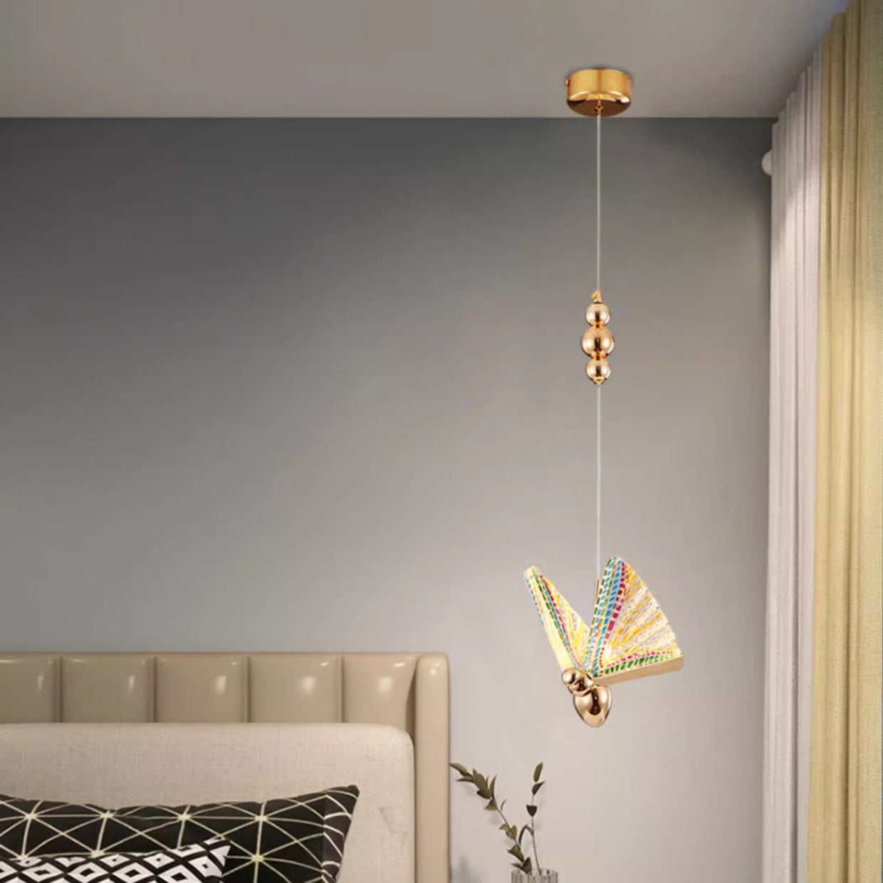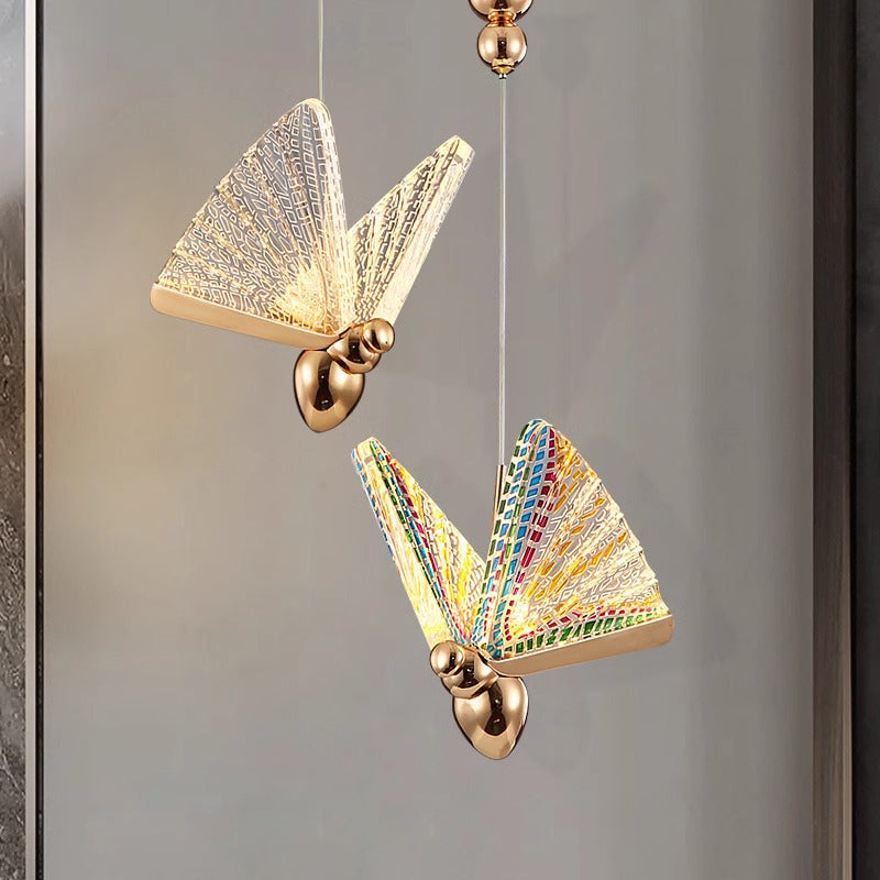 Contemporary Scandinavian Butterfly Beads Zinc Alloy Iron Acrylic LED Pendant Light For Living Room