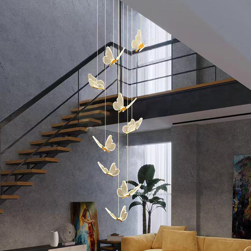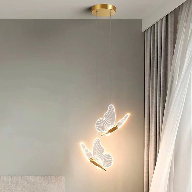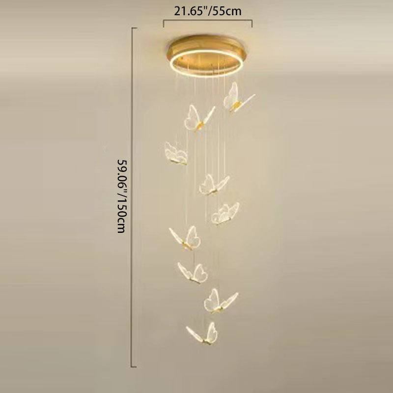 Contemporary Scandinavian Butterfly Round Acrylic Hardware LED Chandelier For Living Room