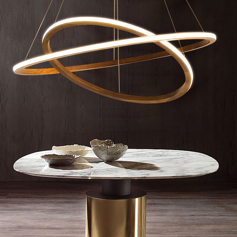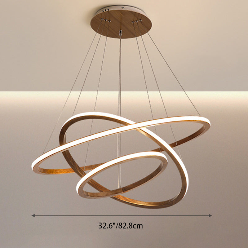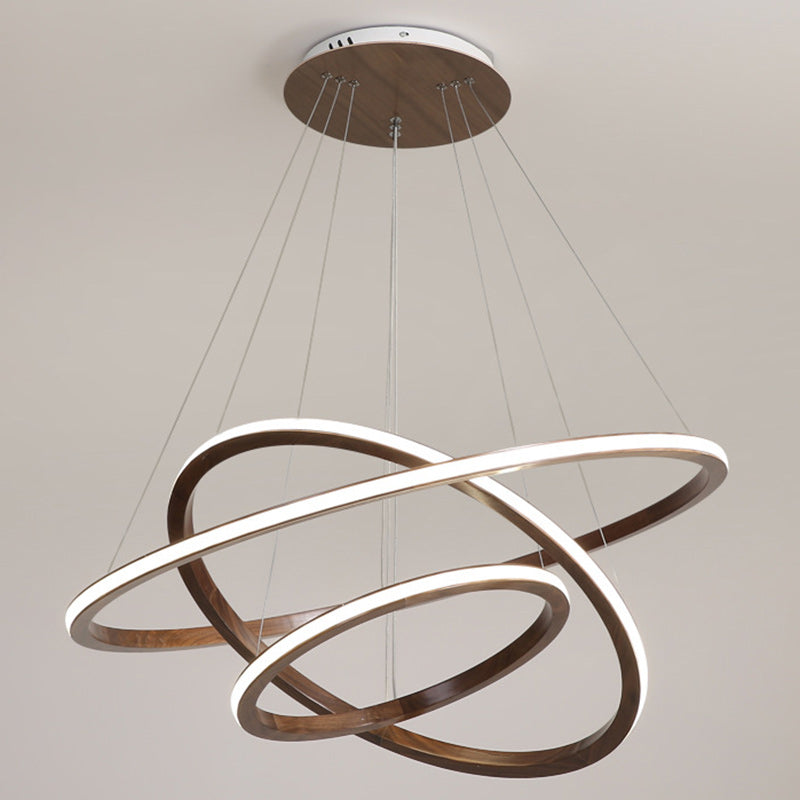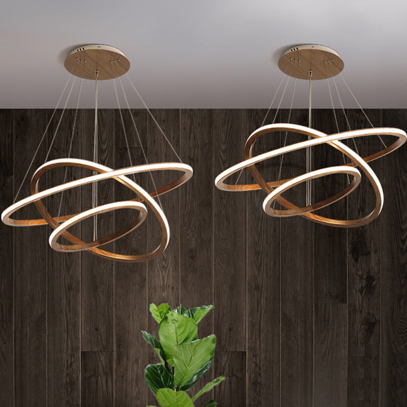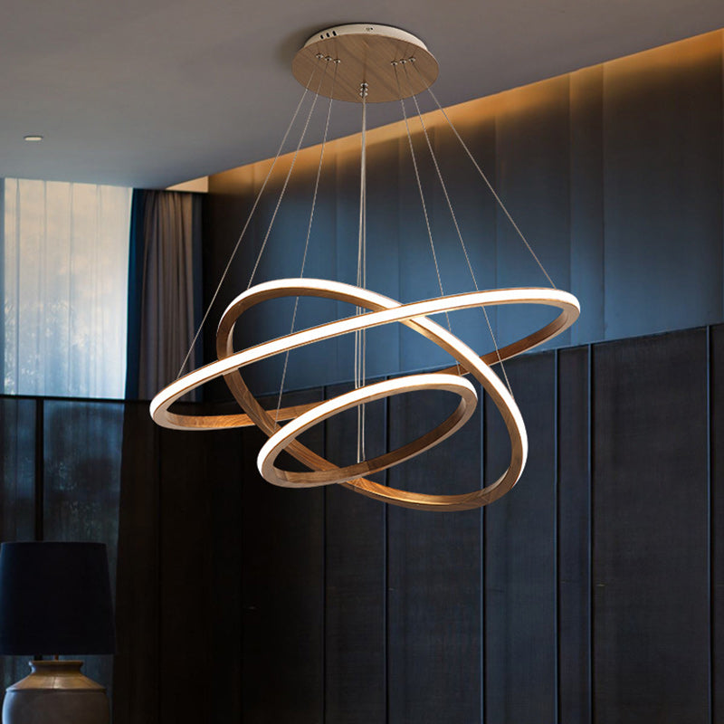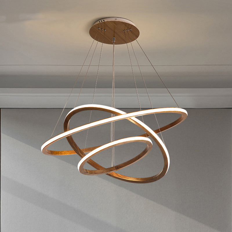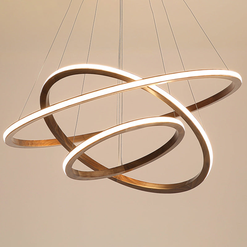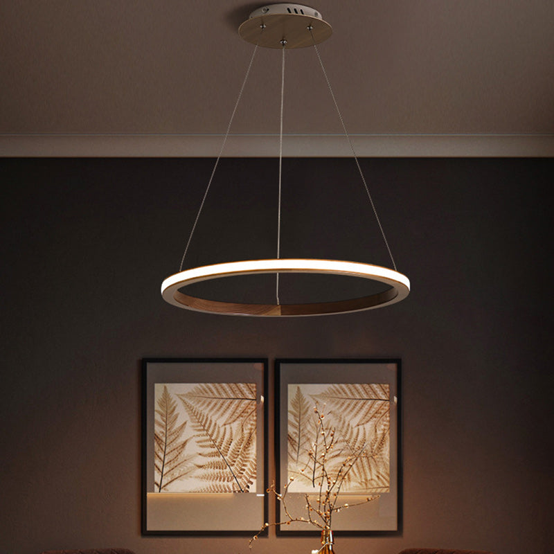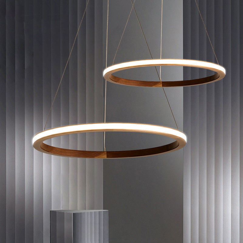 Contemporary Scandinavian Circle Multi-Layer Solid Wood Acrylic LED Island Light Pendant Light For Living Room