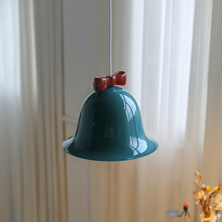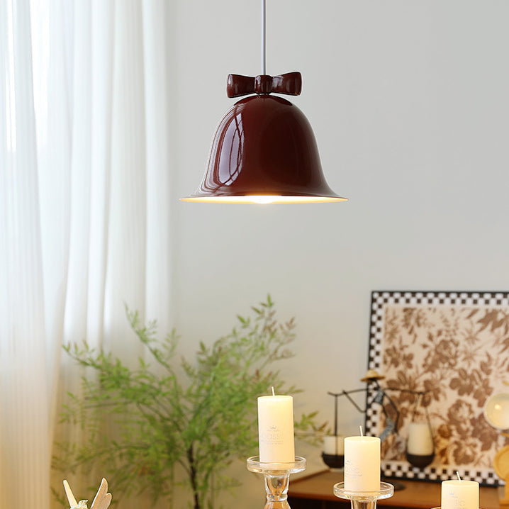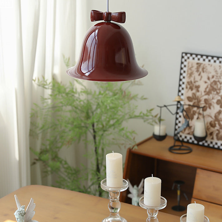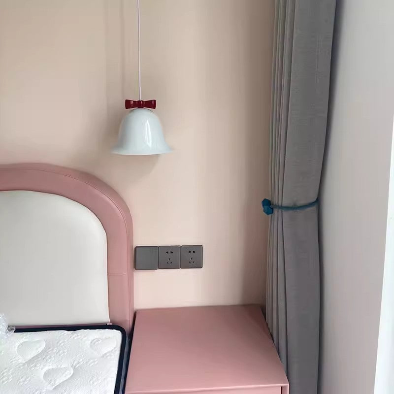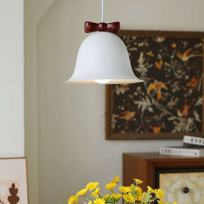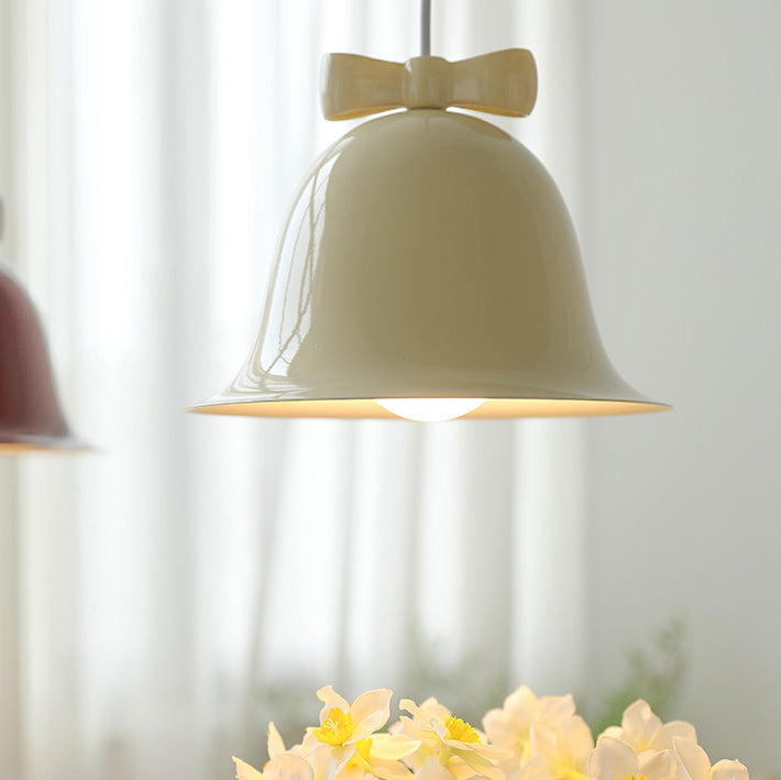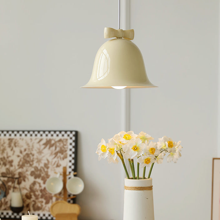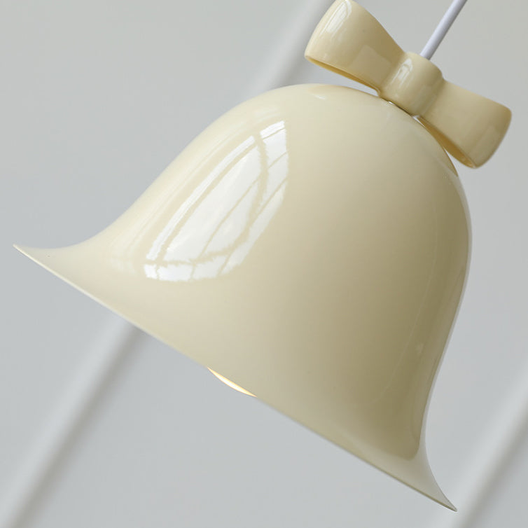 Contemporary Scandinavian Cream Bell Bow Tie Round Iron 1-Light Pendant Light For Bedroom