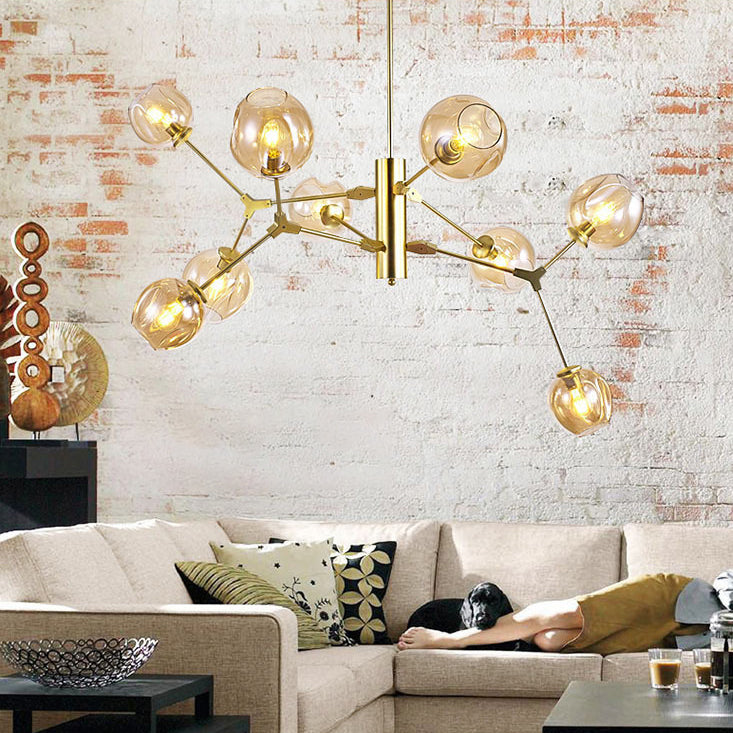 Contemporary Scandinavian Dome Branches Orbs Aluminum Iron Glass 9 - Light Chandelier For Living Room
