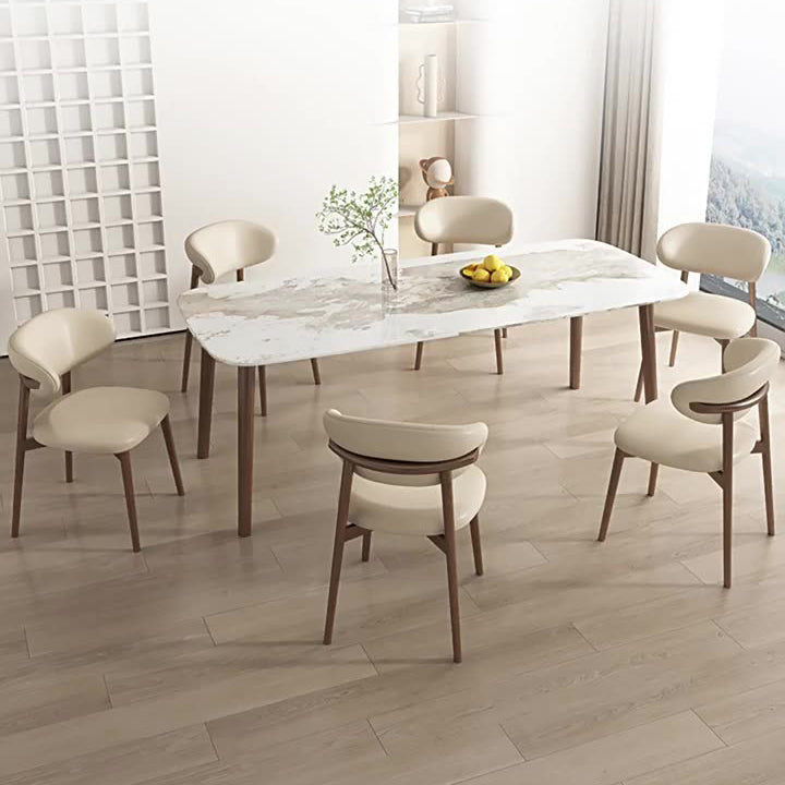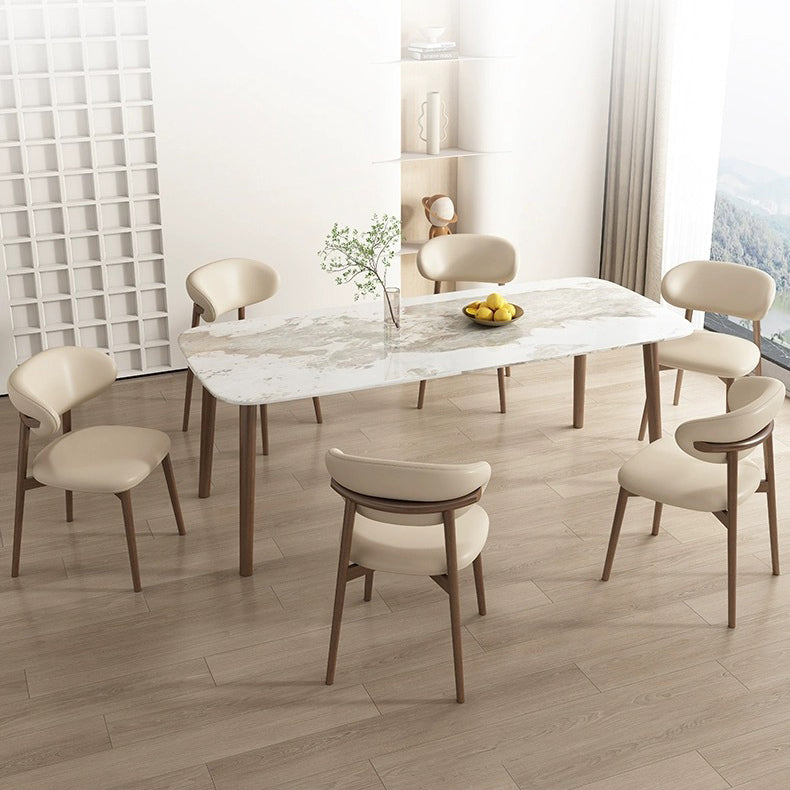 Contemporary Scandinavian Faux Leather Solid Wood Curved Horn Rounded Square Dining Chair With Ergonomic Back For Living Room & Dining Room