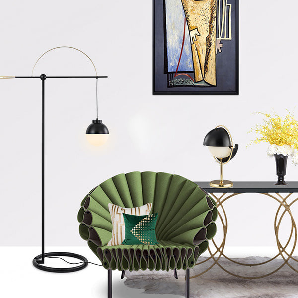 Contemporary Scandinavian Fishing Rod Iron Glass 1-Light Standing Floor Lamp For Living Room