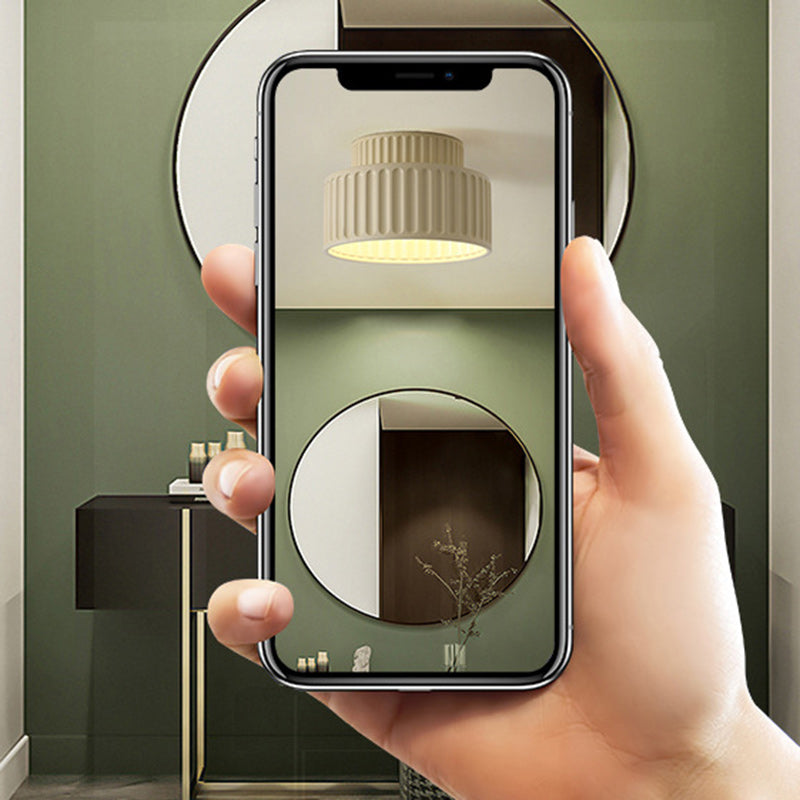 Contemporary Scandinavian Fluted Resin Cylinder Shade Iron 1-Light Semi-Flush Mount Ceiling Light For Living Room