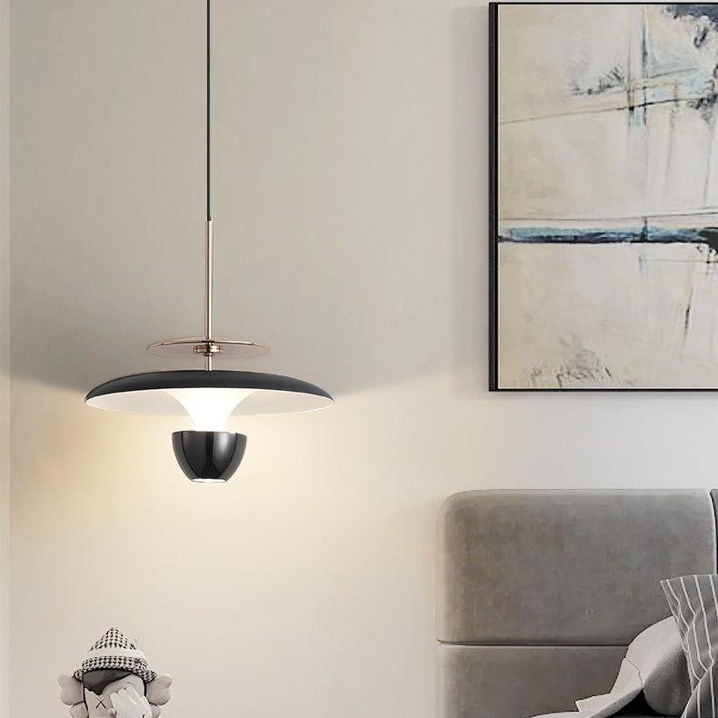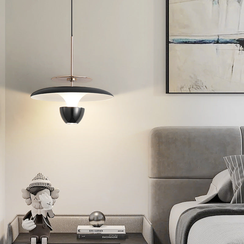 Contemporary Scandinavian Flying Saucer Round Iron Acrylic LED Pendant Light For Bedroom