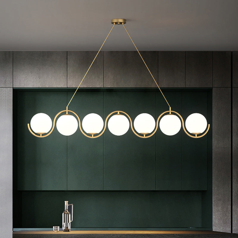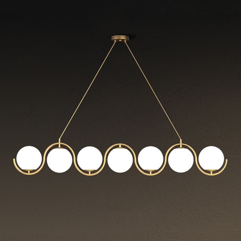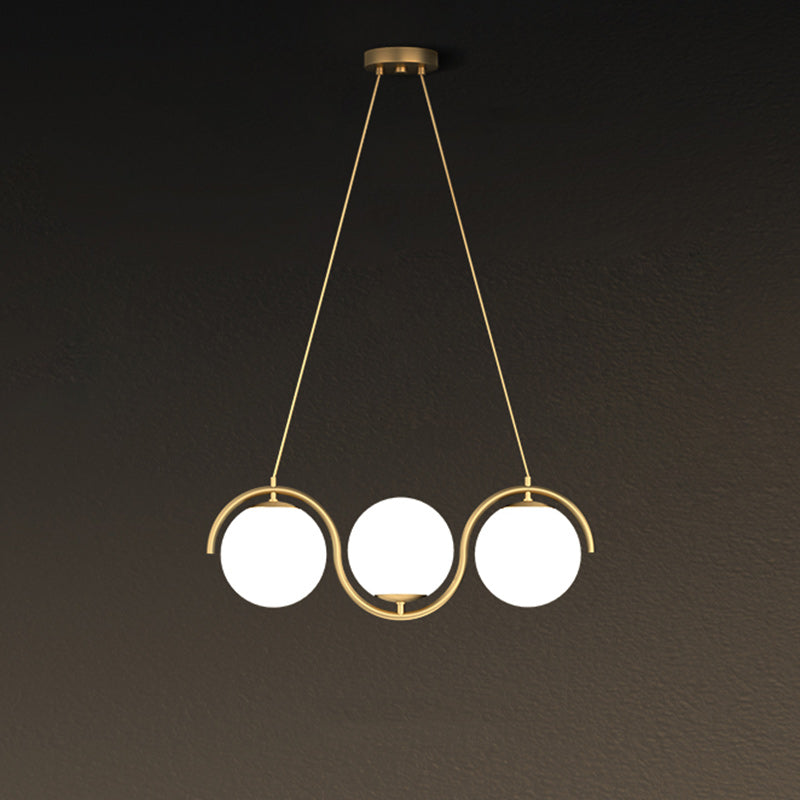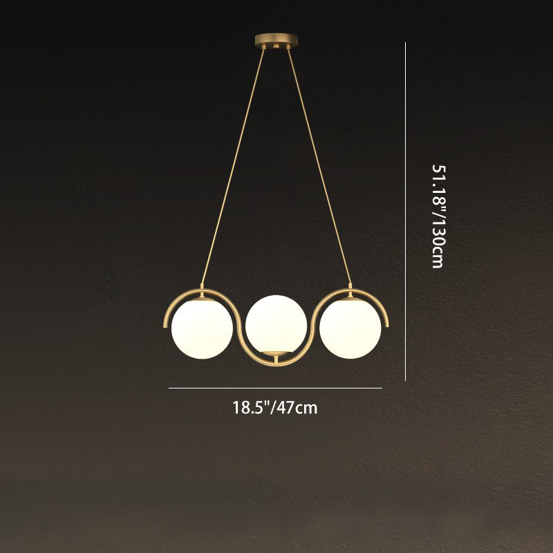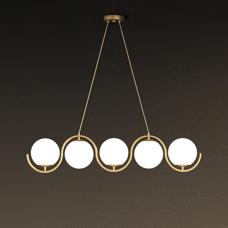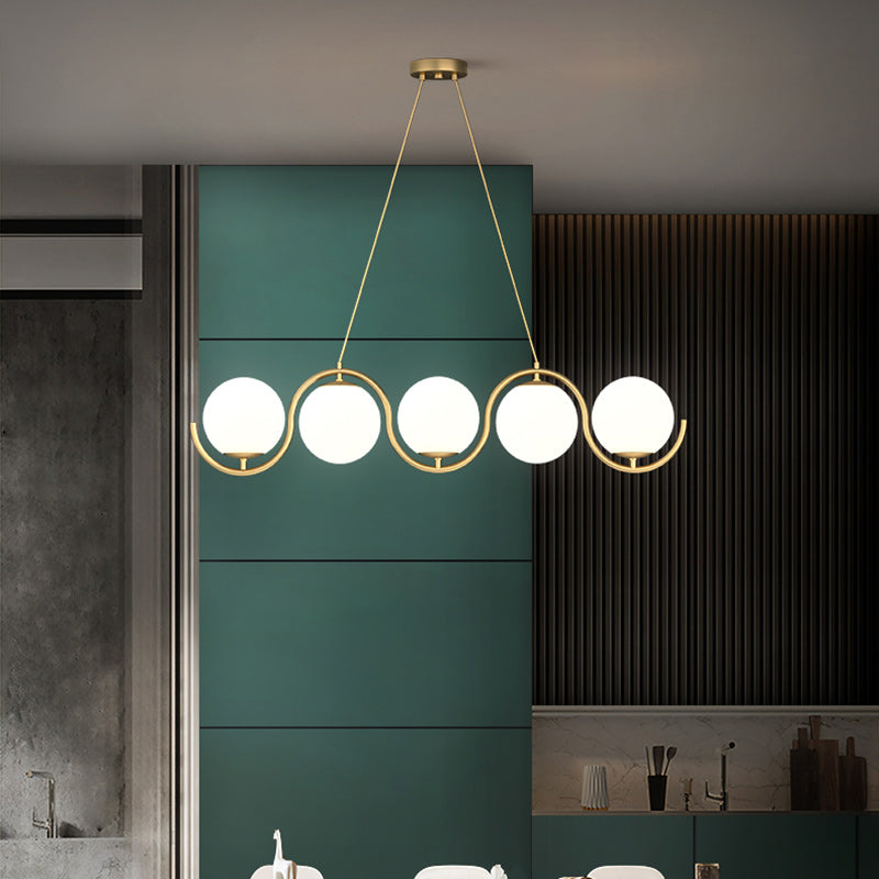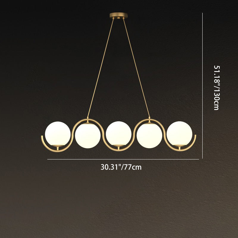 Contemporary Scandinavian Full Copper Round Orb Glass Lampshade 3/5/7 - Light Chandeliers Island Light For Dining Room