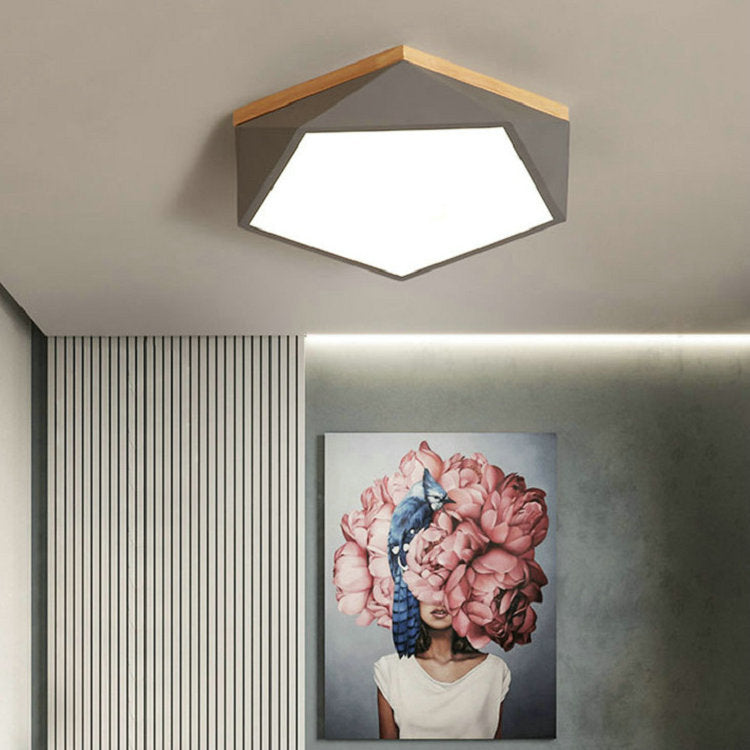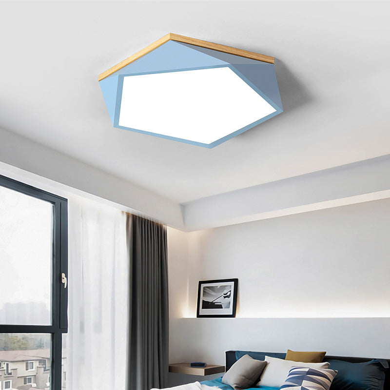 Contemporary Scandinavian Iron Acrylic Polygon LED Flush Mount Ceiling Light For Bedroom