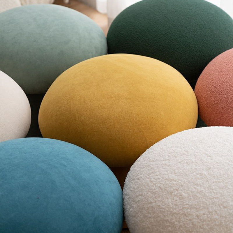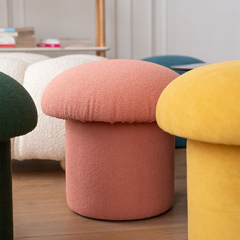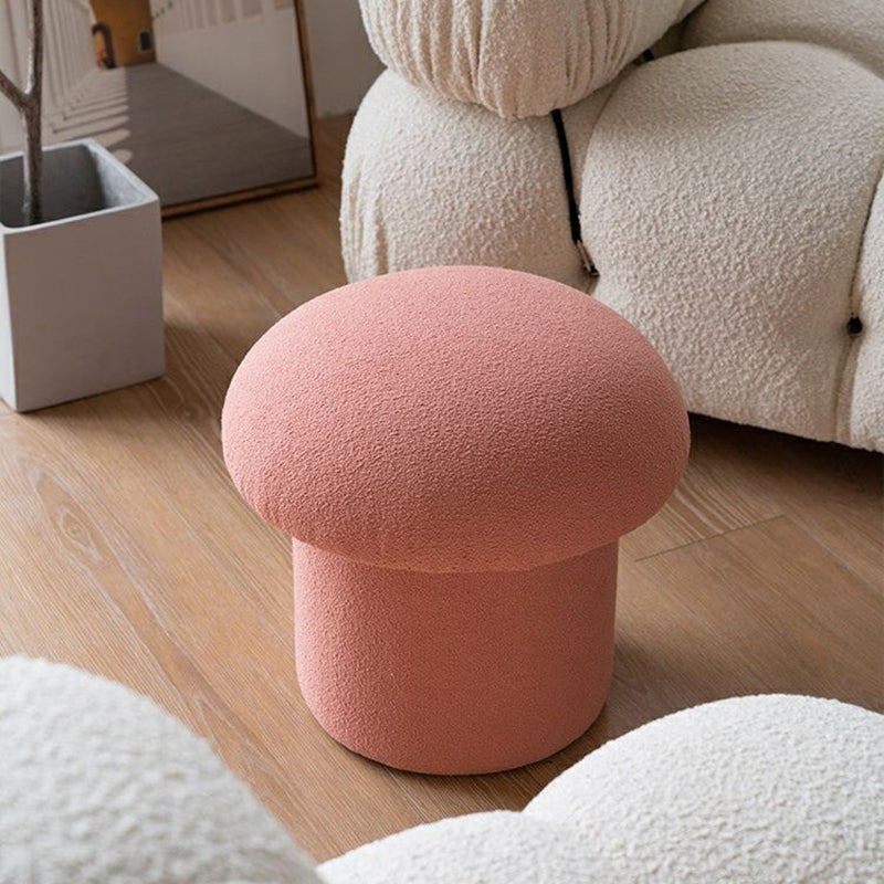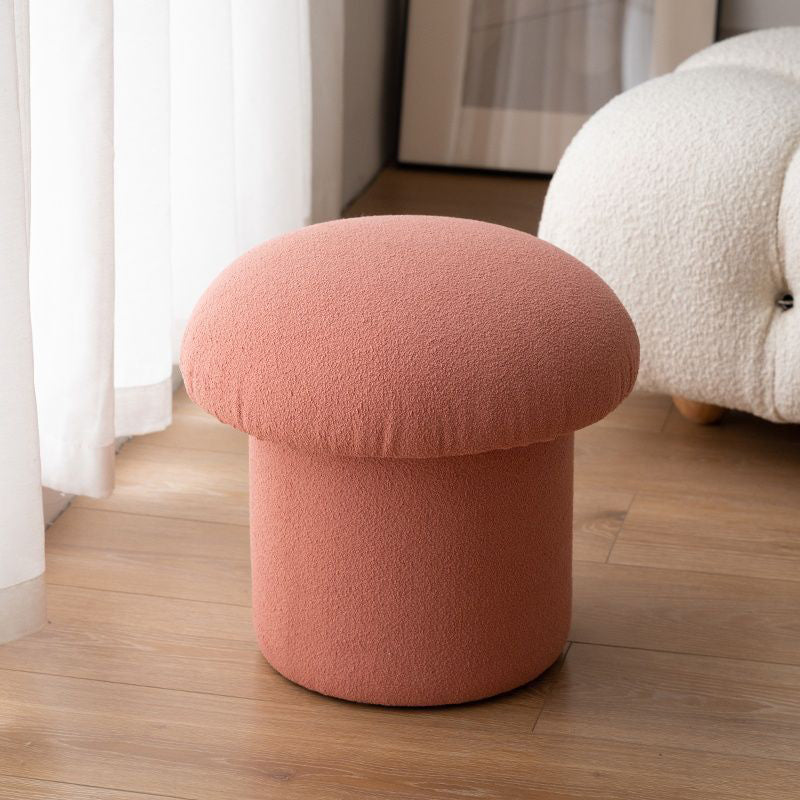 Contemporary Scandinavian Lambswool Cotton Hemp Sponge Wood Round Mushroom Vanity Stool Backless For Bedroom
