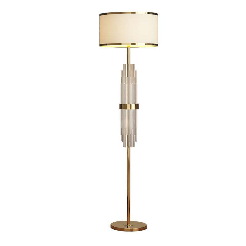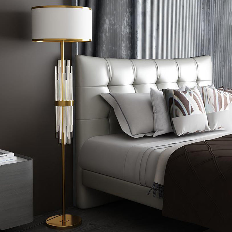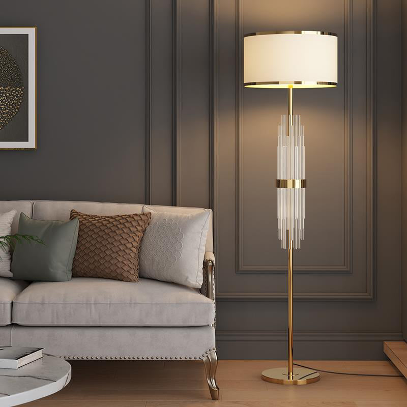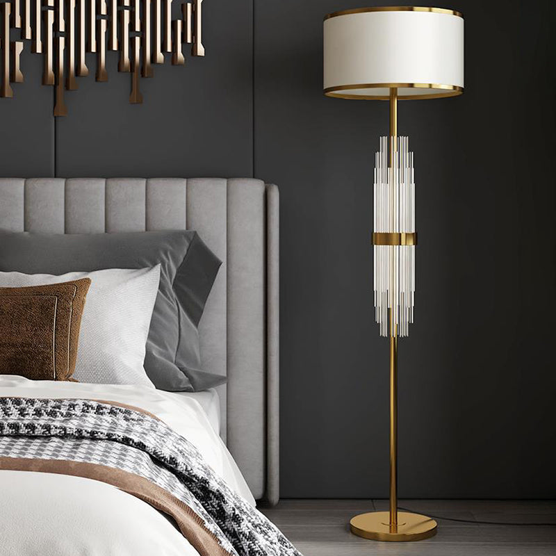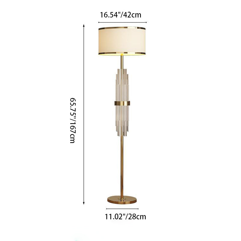 Contemporary Scandinavian Luxury Round Fabric Glass Column 1-Light Standing Floor Lamp For Living Room