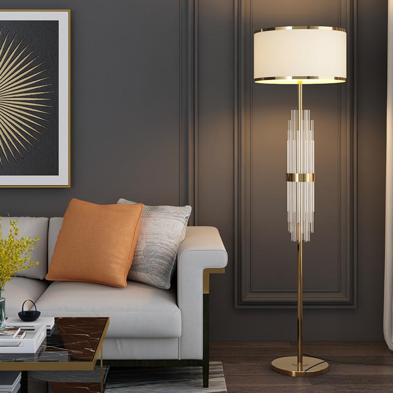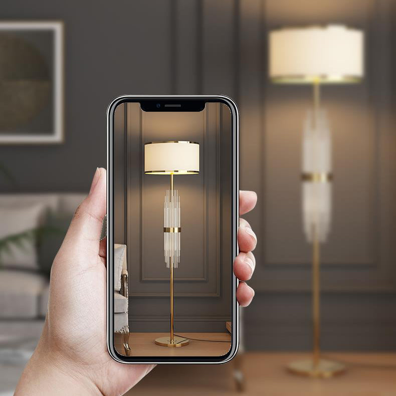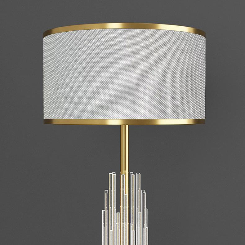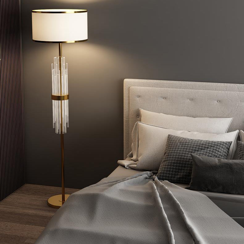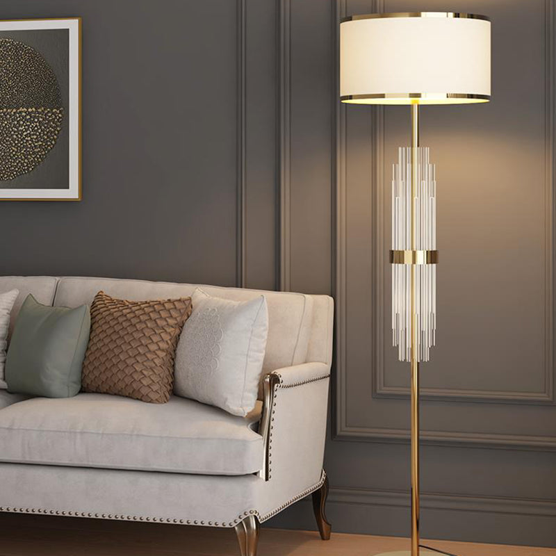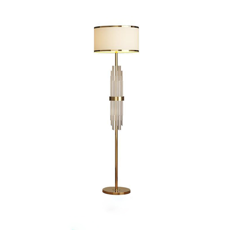 Contemporary Scandinavian Luxury Round Fabric Glass Column 1-Light Standing Floor Lamp For Living Room