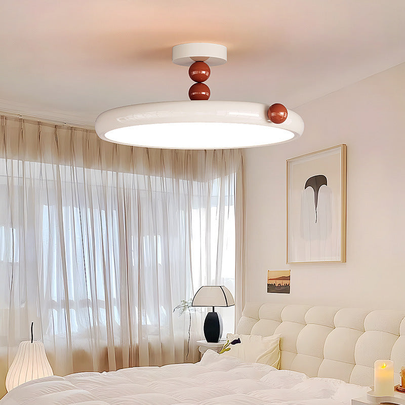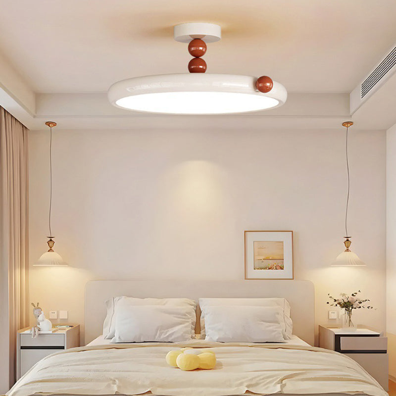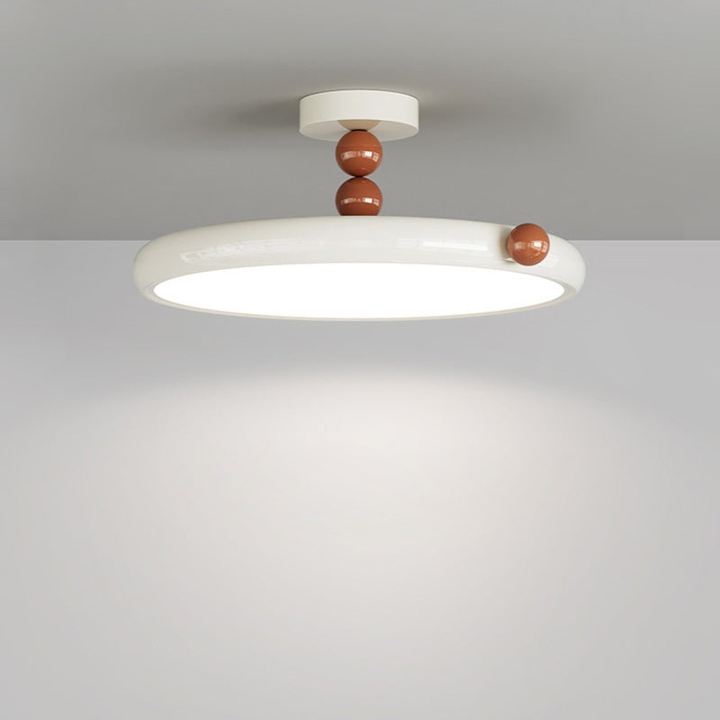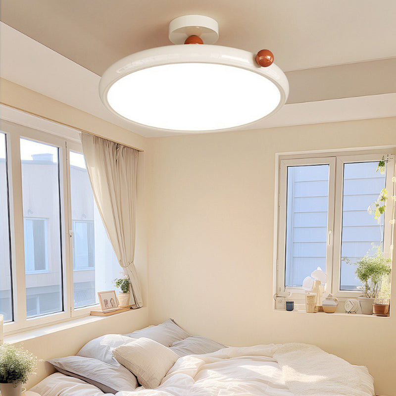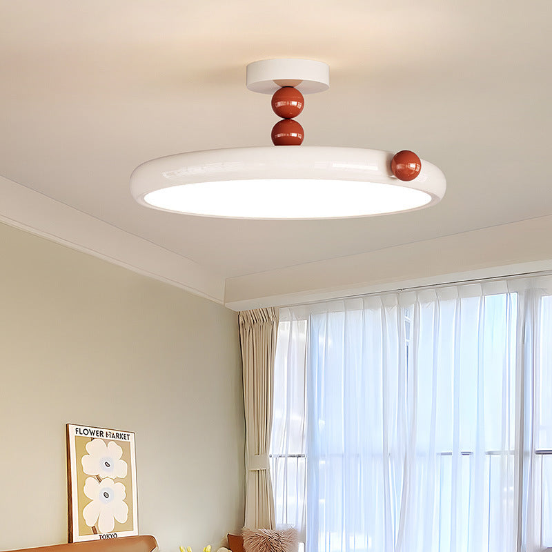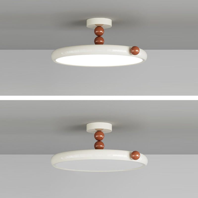 Contemporary Scandinavian Macaron Hardware Glass Round Shade LED Semi-Flush Mount Ceiling Light For Living Room