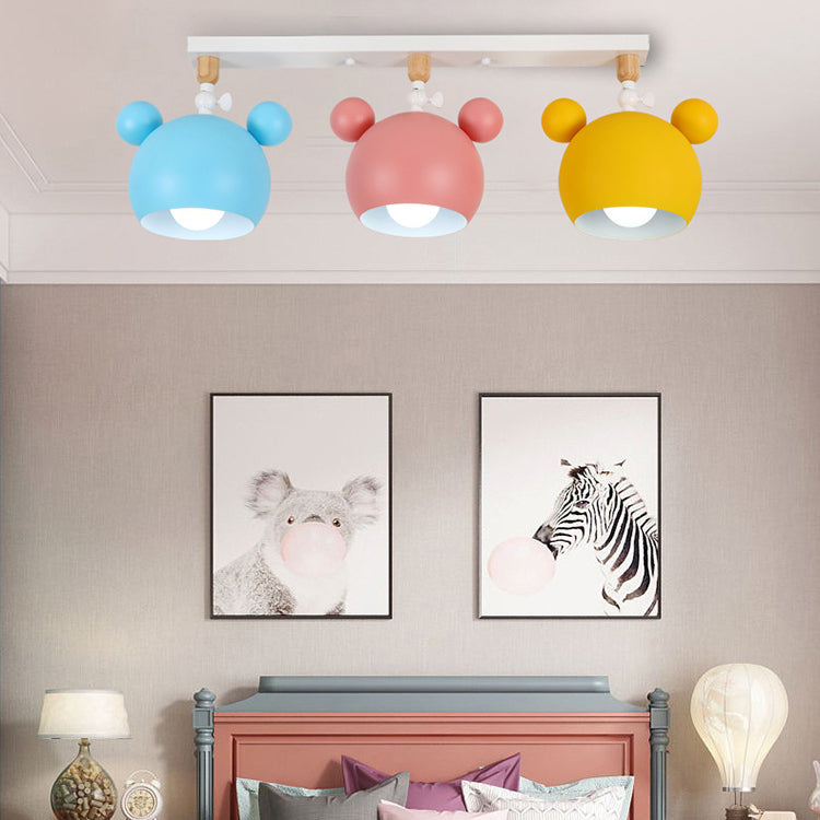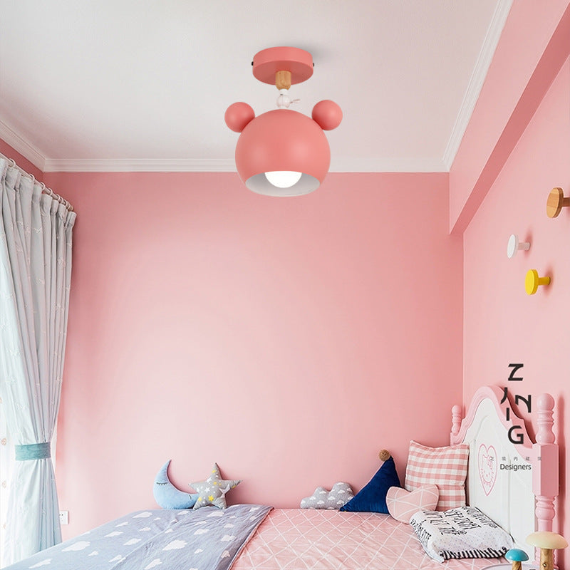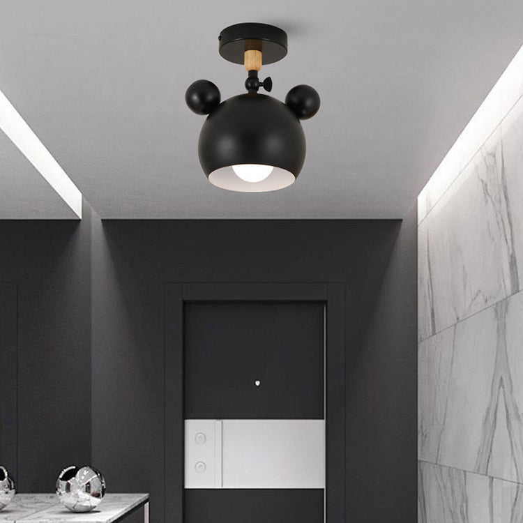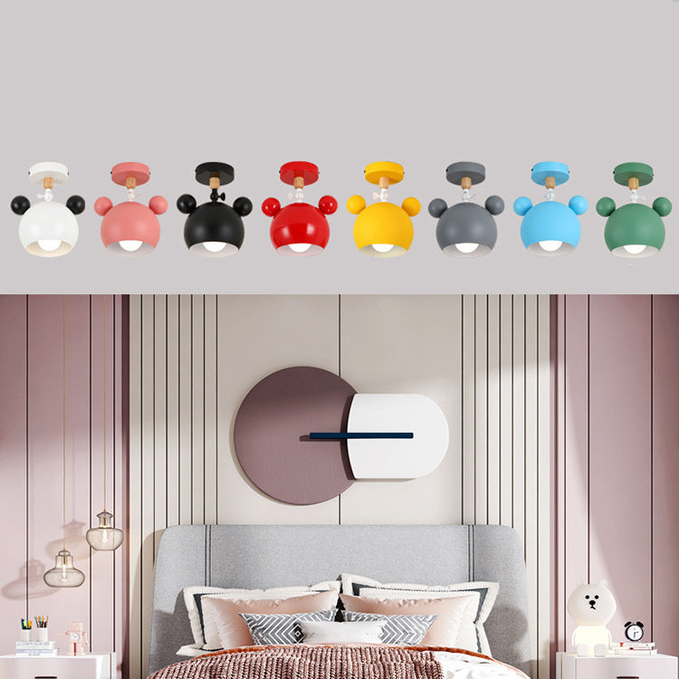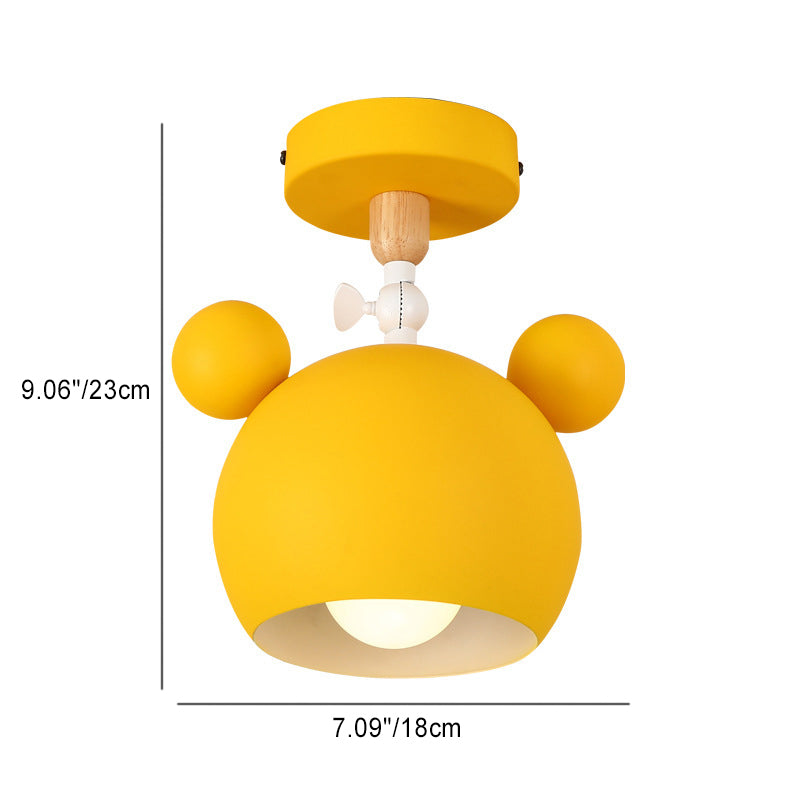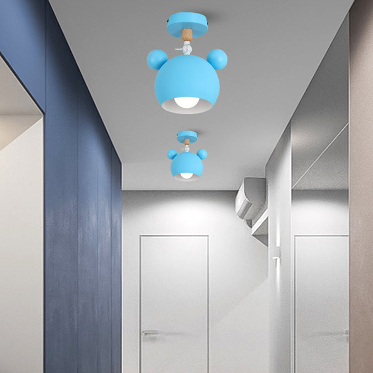 Contemporary Scandinavian Macaron Round Iron Rotatable 1-Light Semi-Flush Mount Ceiling Light For Living Room