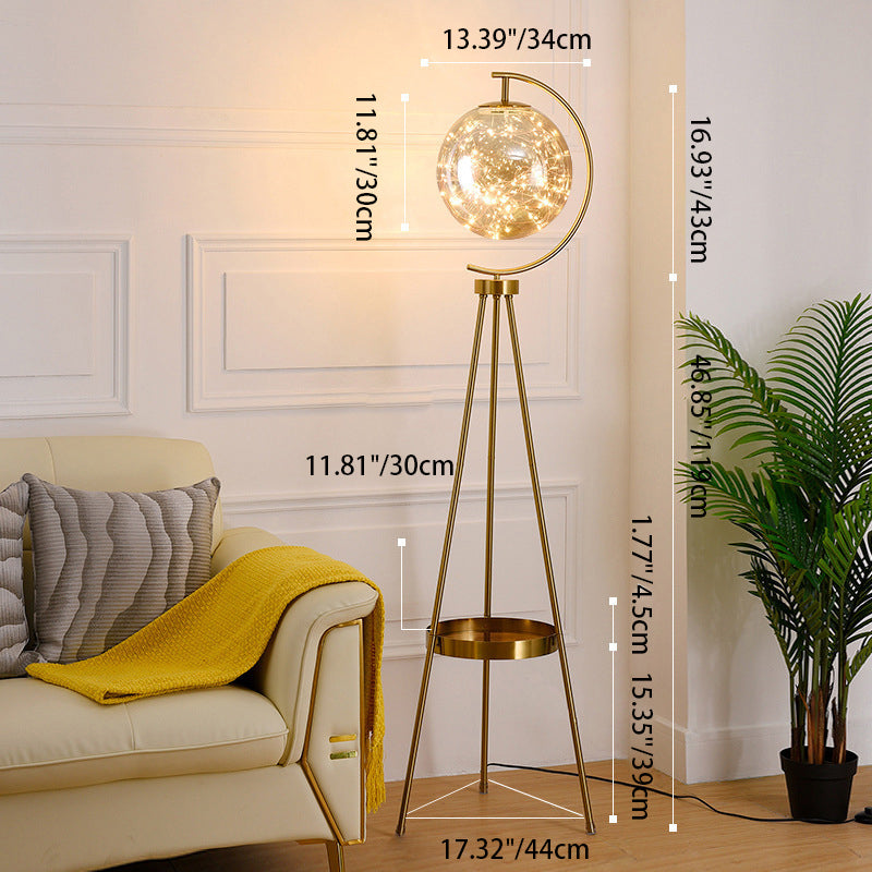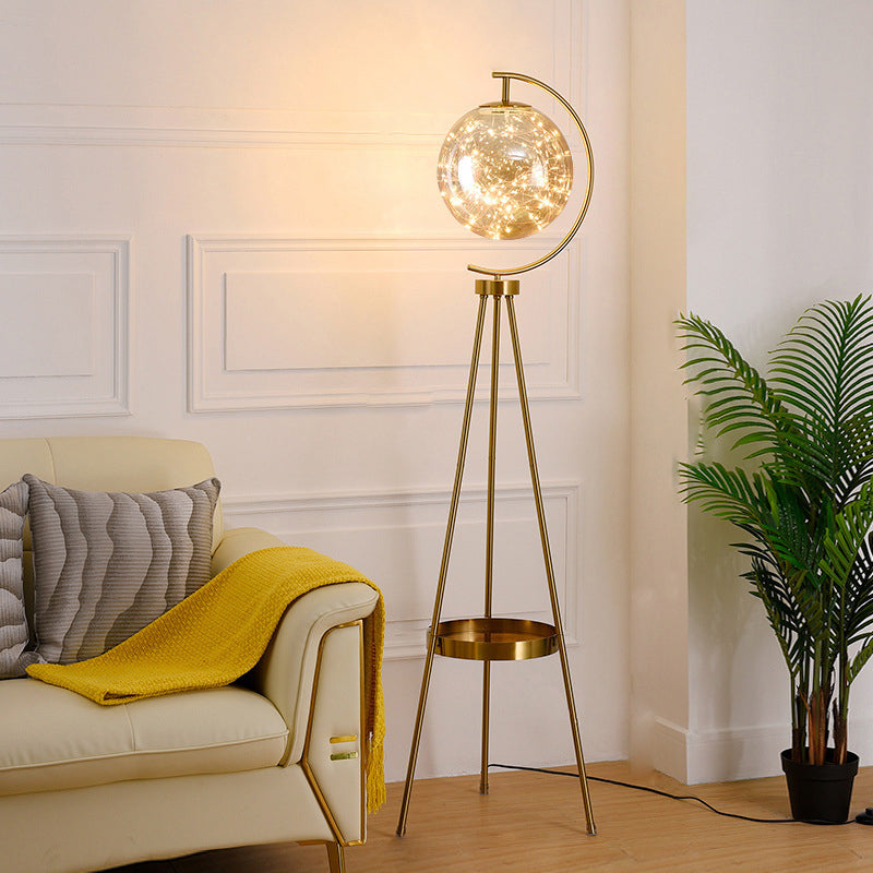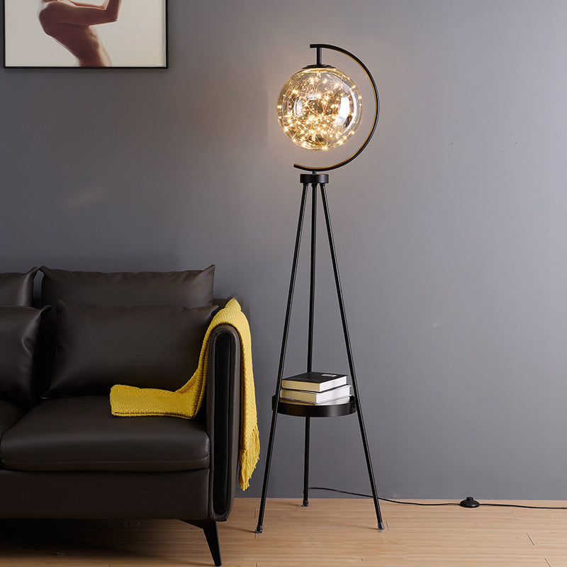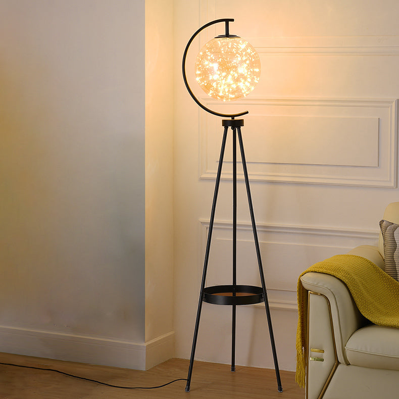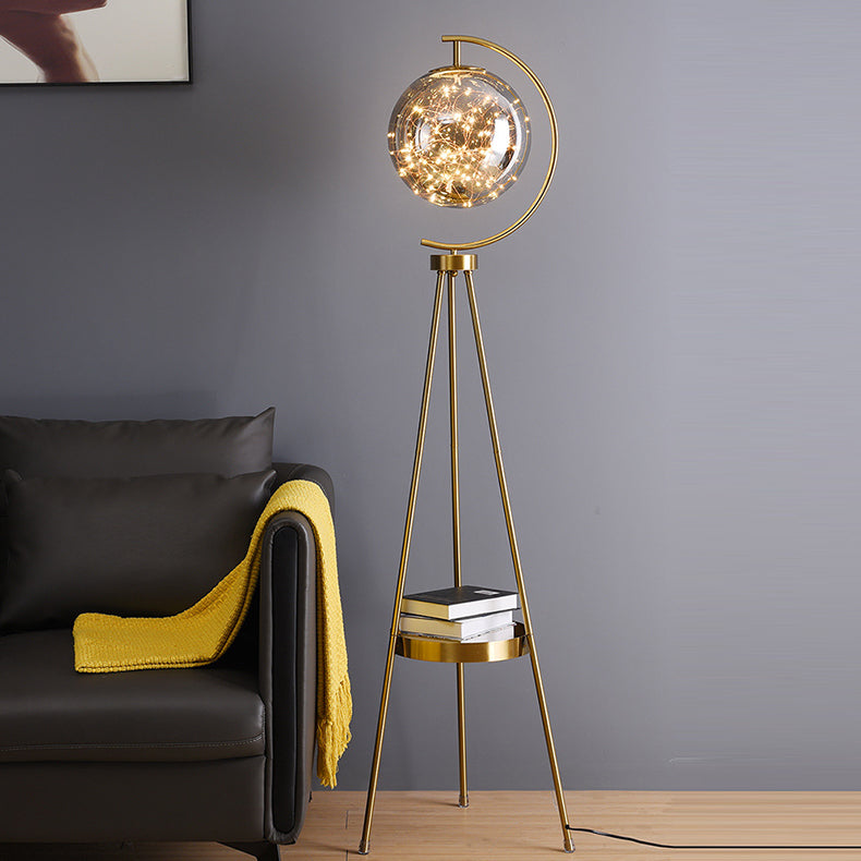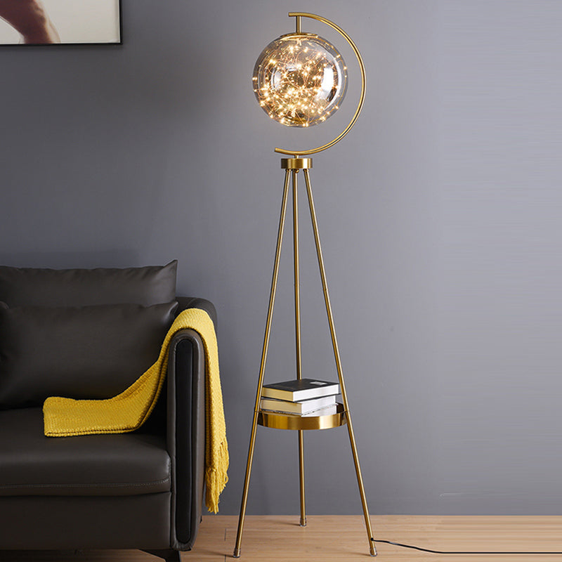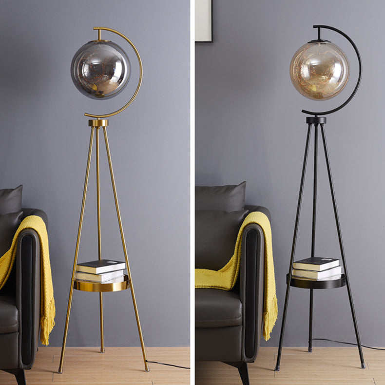 Contemporary Scandinavian Orb Tripod Iron Glass LED Standing Floor Lamp For Bedroom