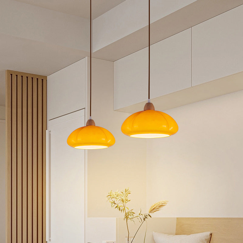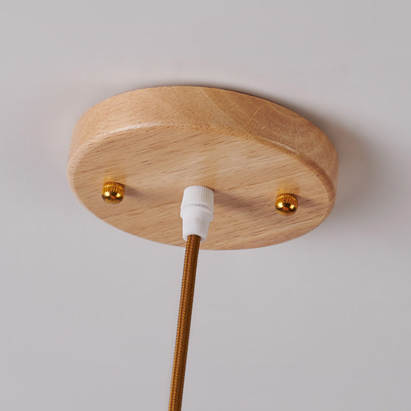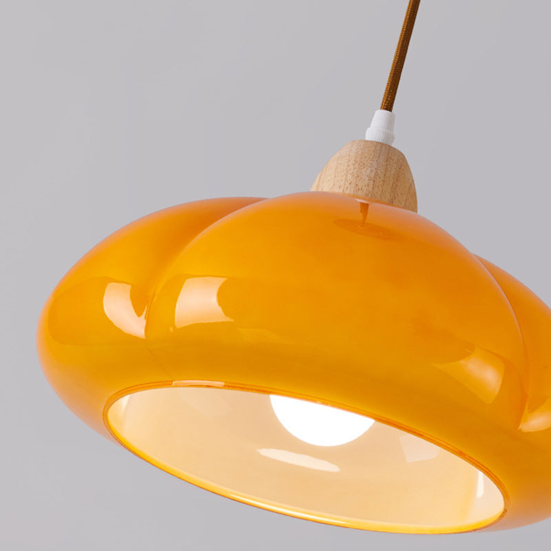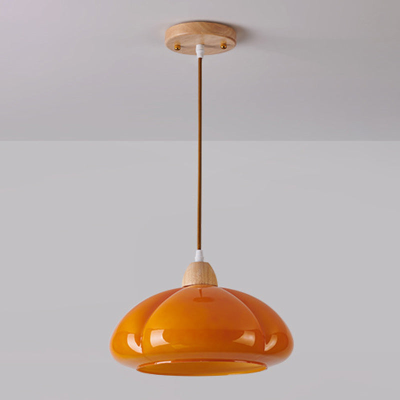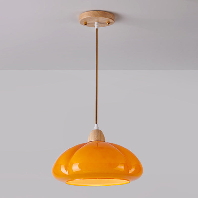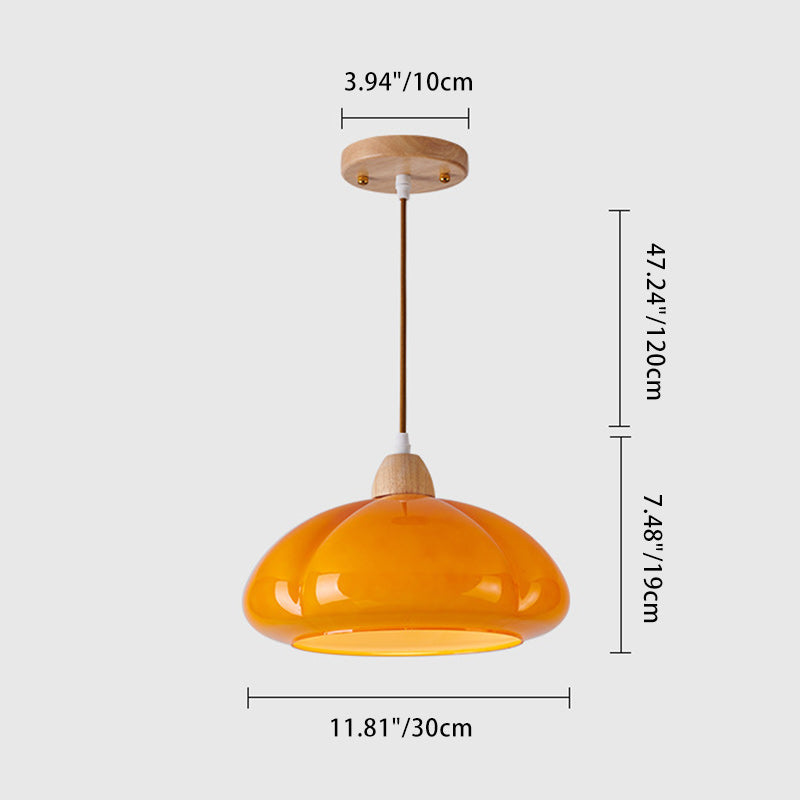 Contemporary Scandinavian Persimmon Round Cone Oak Glass 1-Light Pendant Light For Bedroom