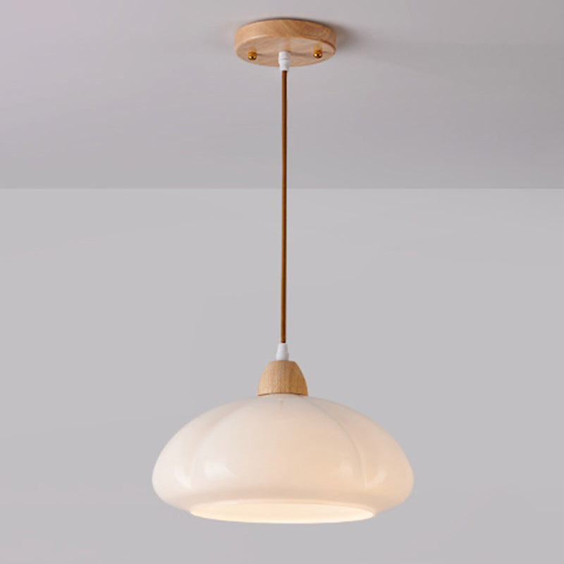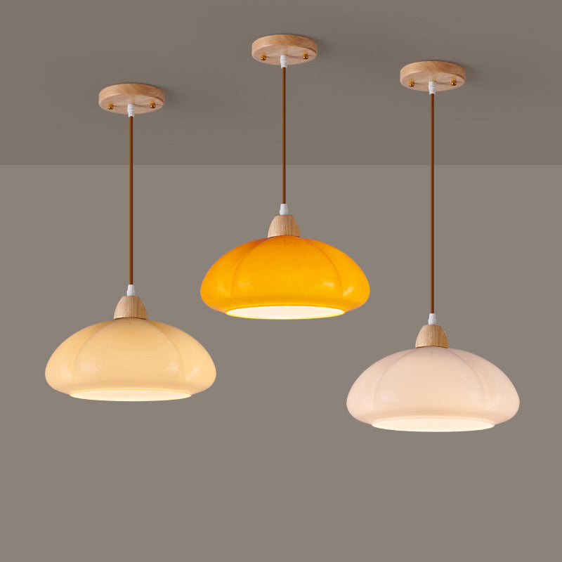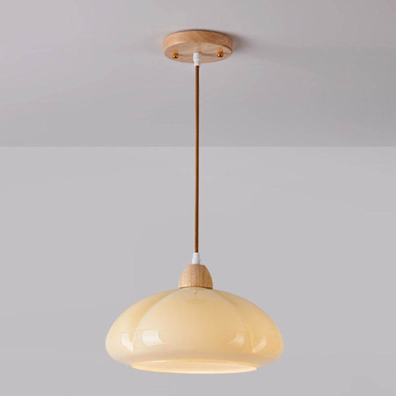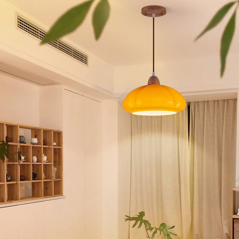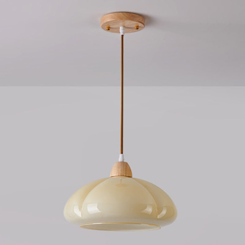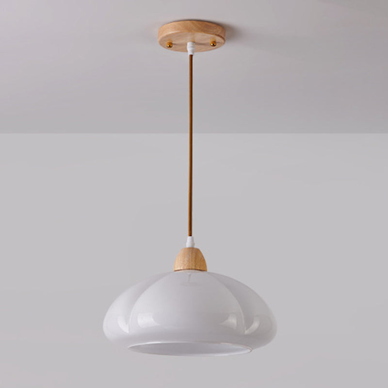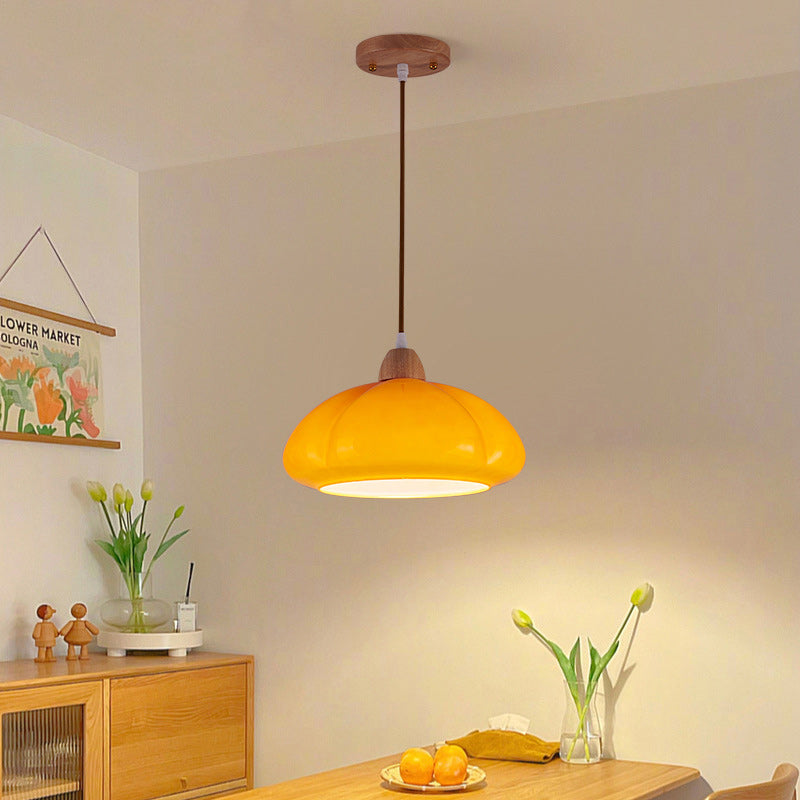 Contemporary Scandinavian Persimmon Round Cone Oak Glass 1-Light Pendant Light For Bedroom
