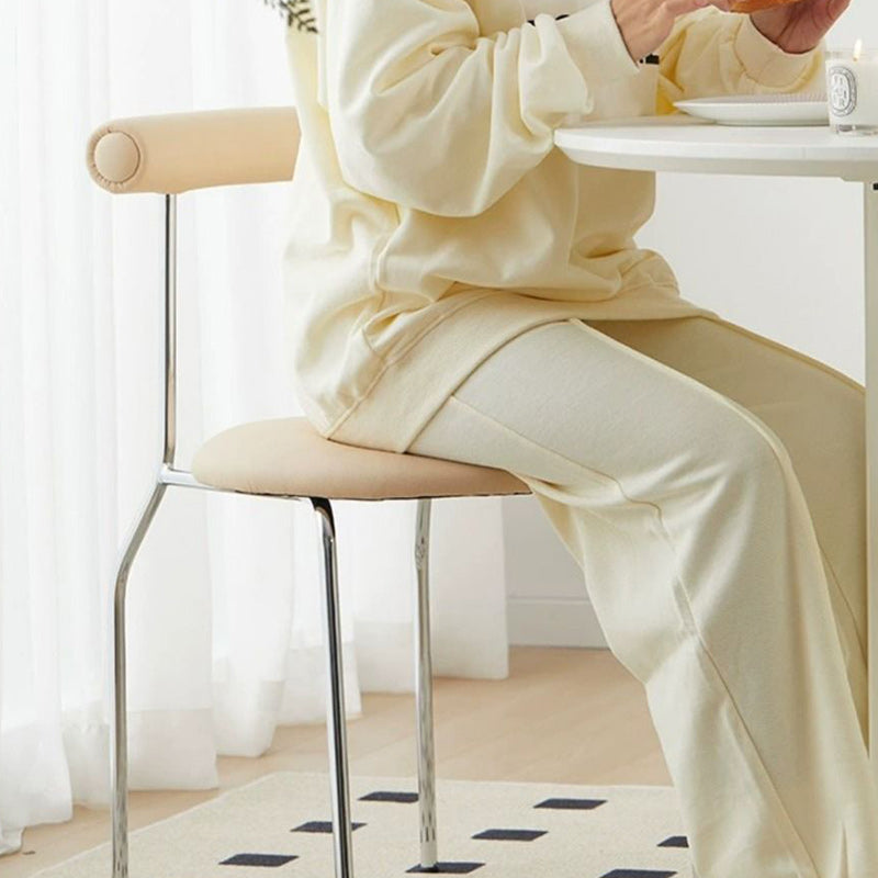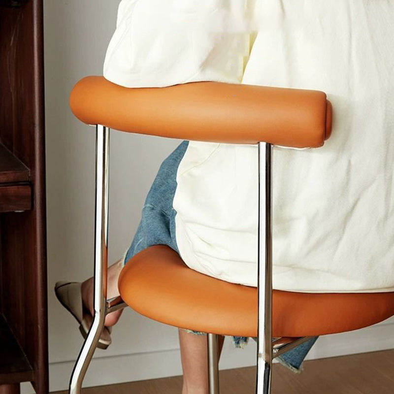Contemporary Scandinavian PU Leather Metal Sponge Round Arc Dining Chair Backrest For Dining Room