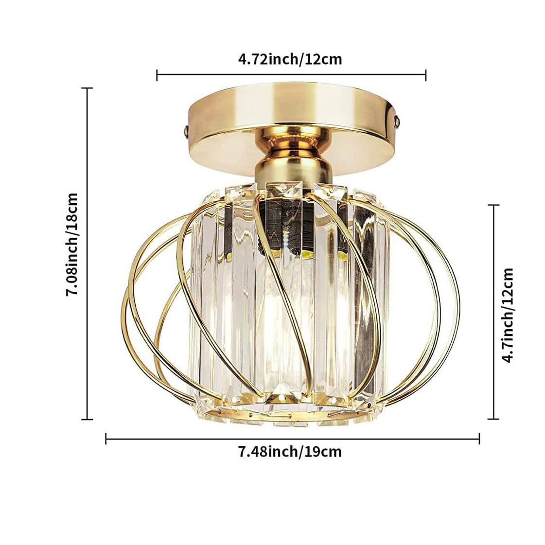 Contemporary Scandinavian Pumpkin Curved Arc Hollow Cylinder Disc Base Iron Crystal 1-Light Semi-Flush Mount Ceiling Light For Living Room