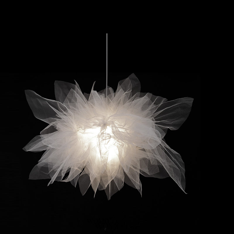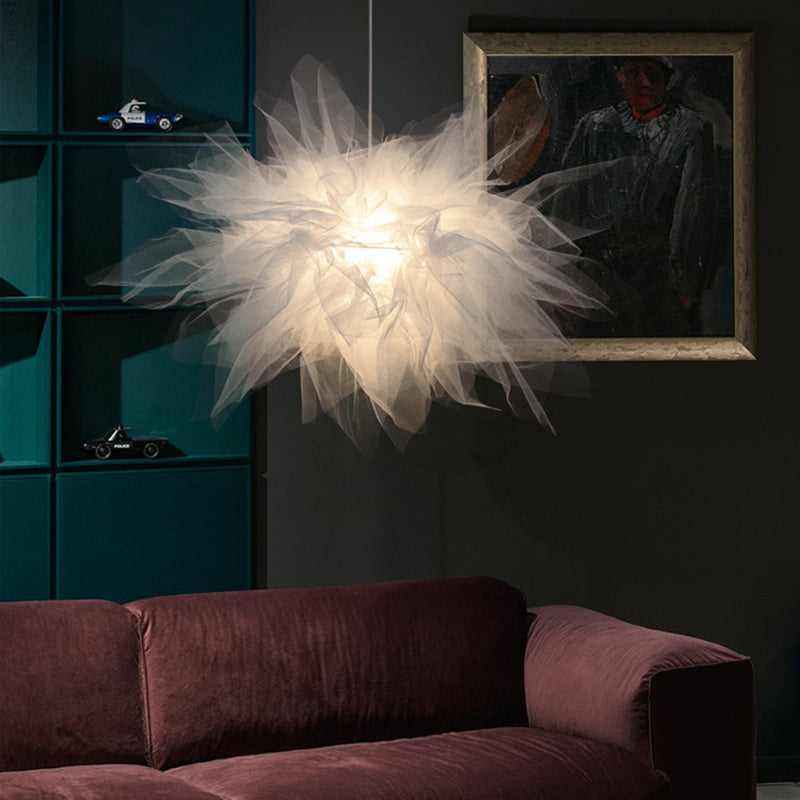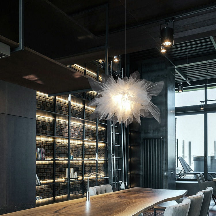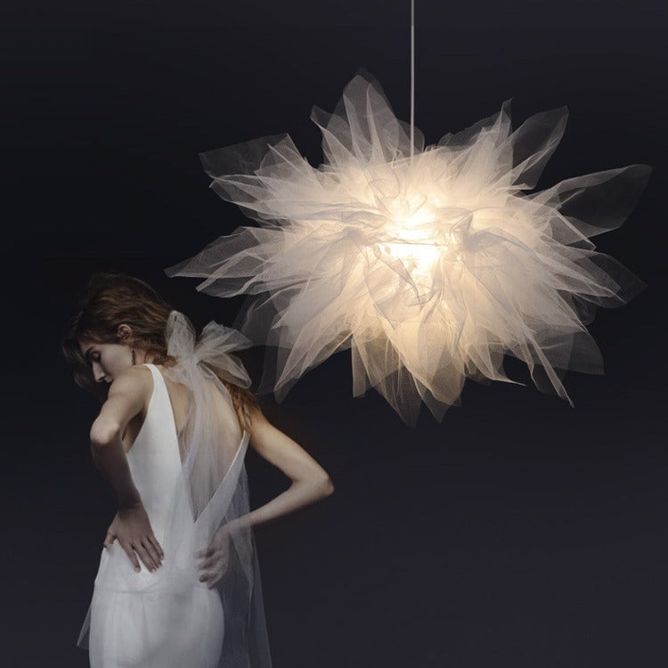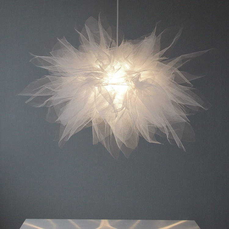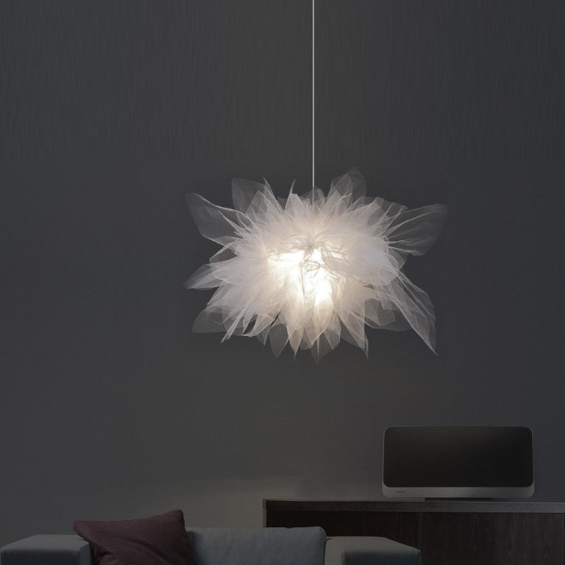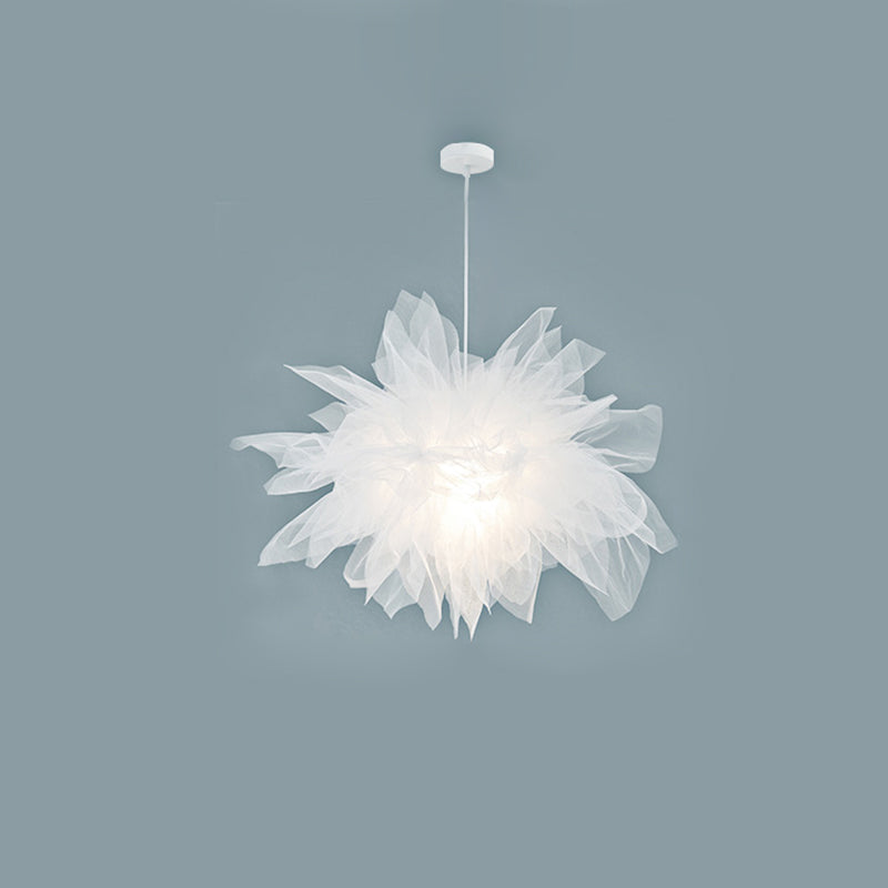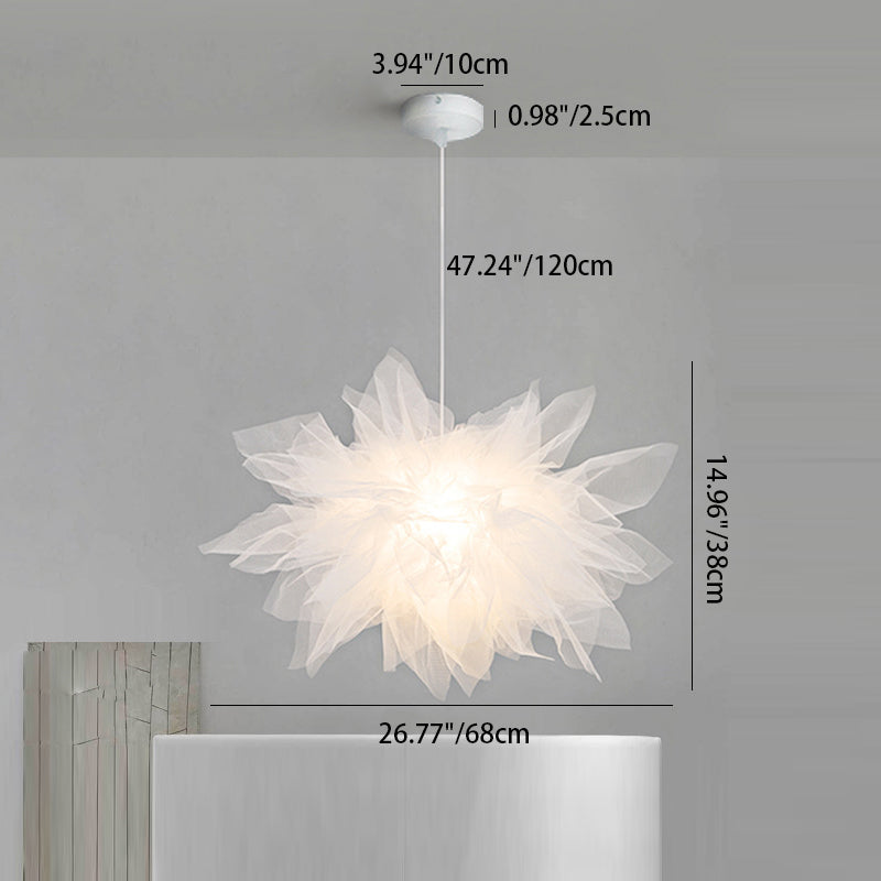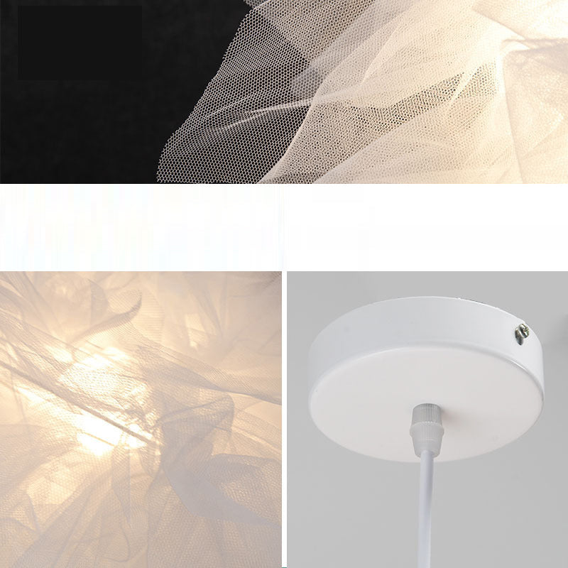 Contemporary Scandinavian Romantic Floral Illusion Iron Fabric 1-Light Pendant Light For Bedroom