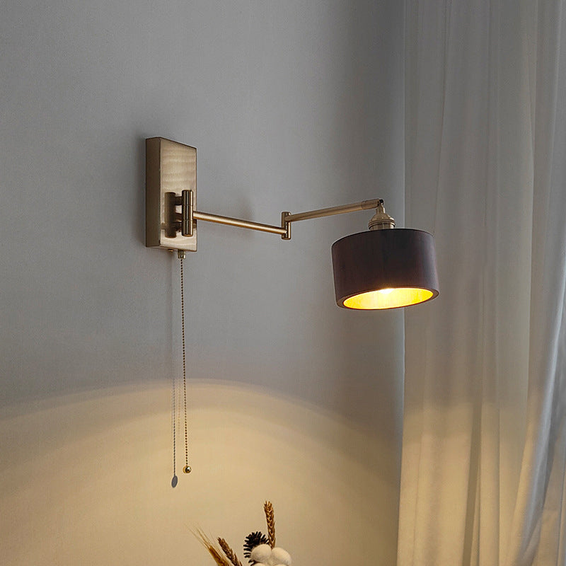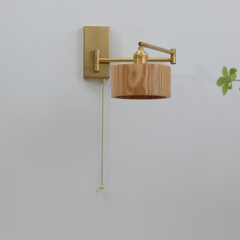 Contemporary Scandinavian Round Column Rotatable Wood Metal 1-Light Wall Sconce Lamp For Bedroom