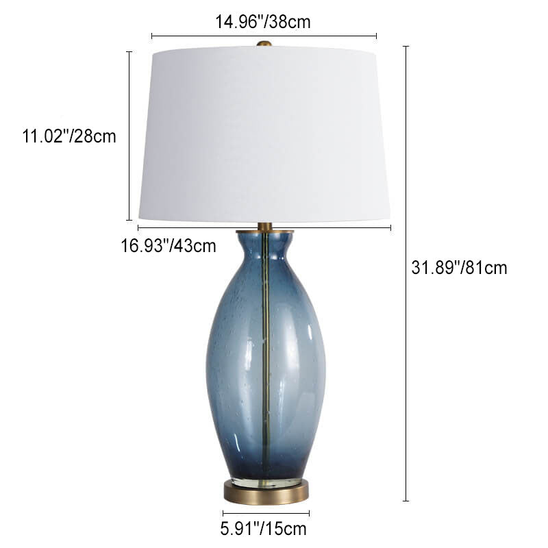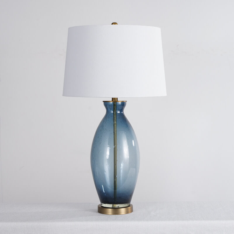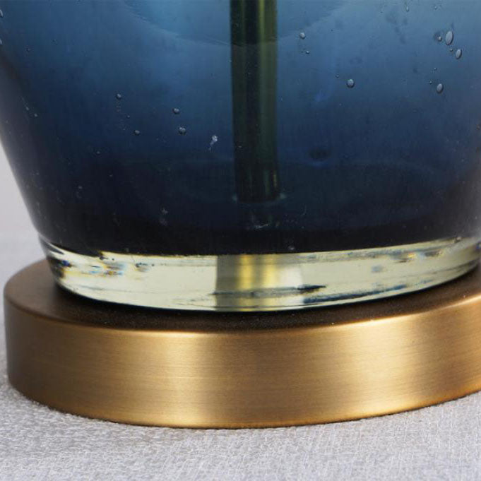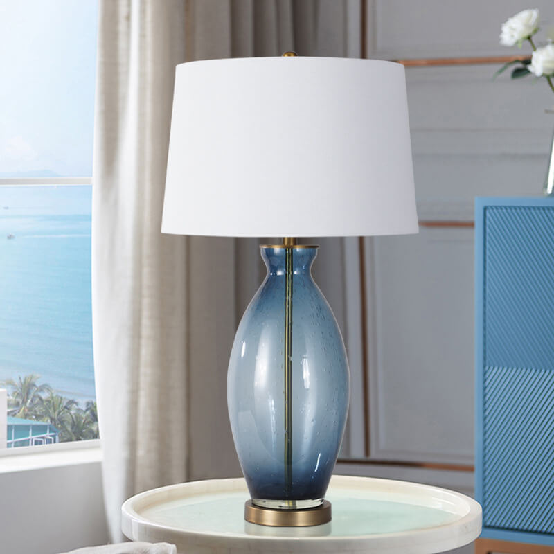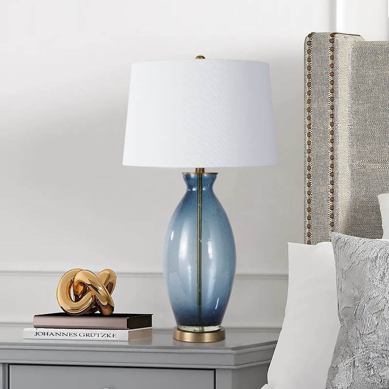 Contemporary Scandinavian Round Vase Base Hardware Glass Fabric 1-Light Table Lamp For Bedroom