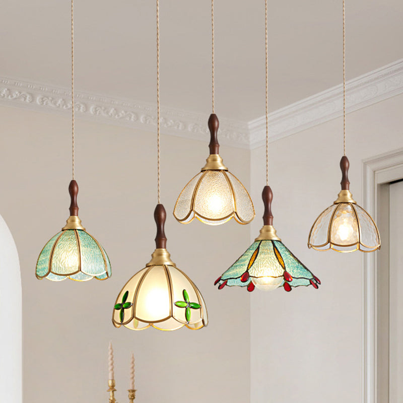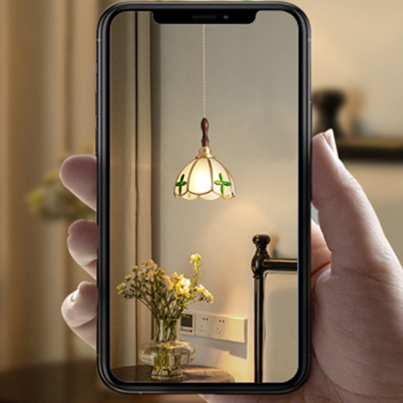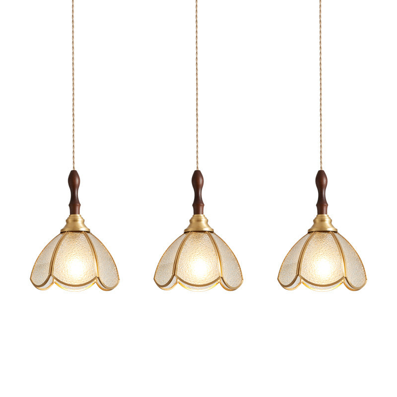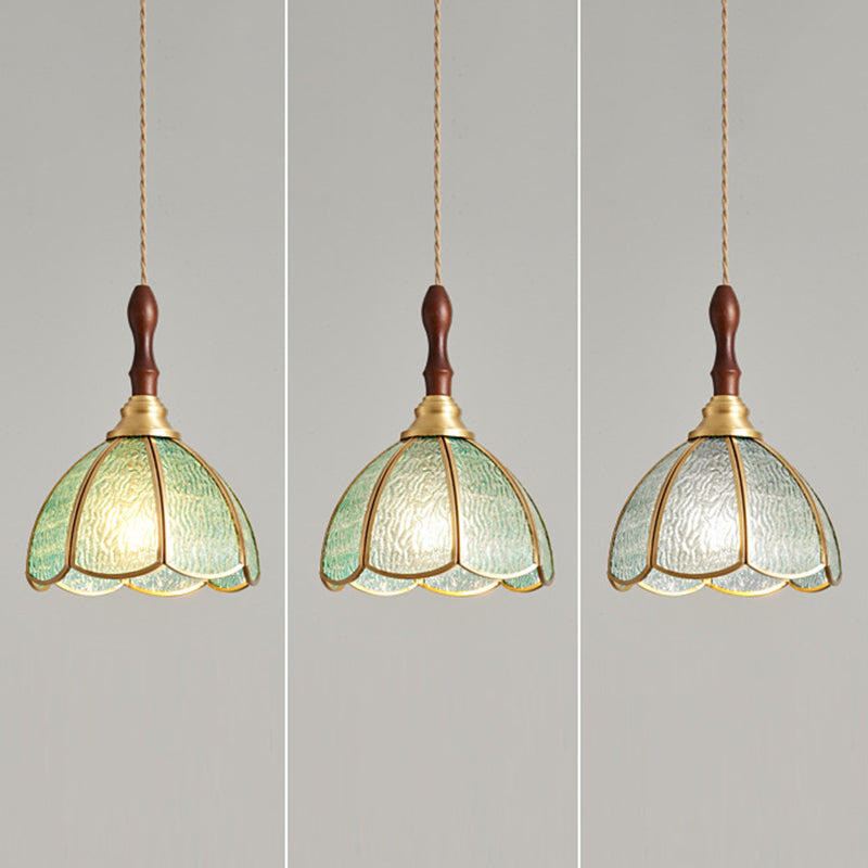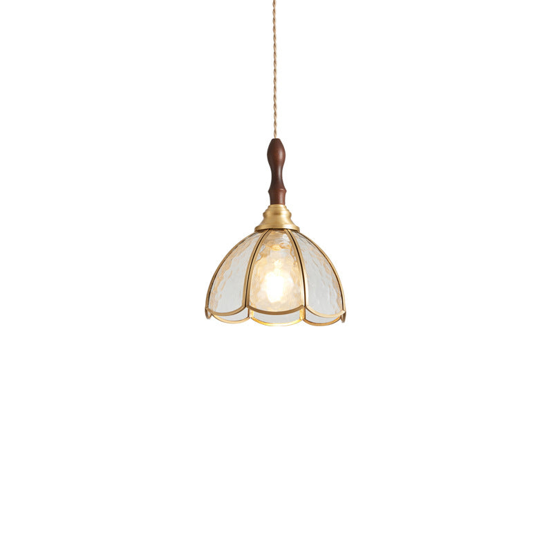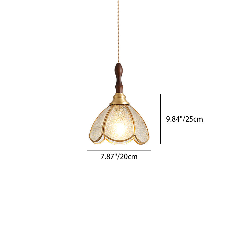 Contemporary Scandinavian Scalloped Round Leaf Glass Copper 1-Light Pendant Light For Living Room