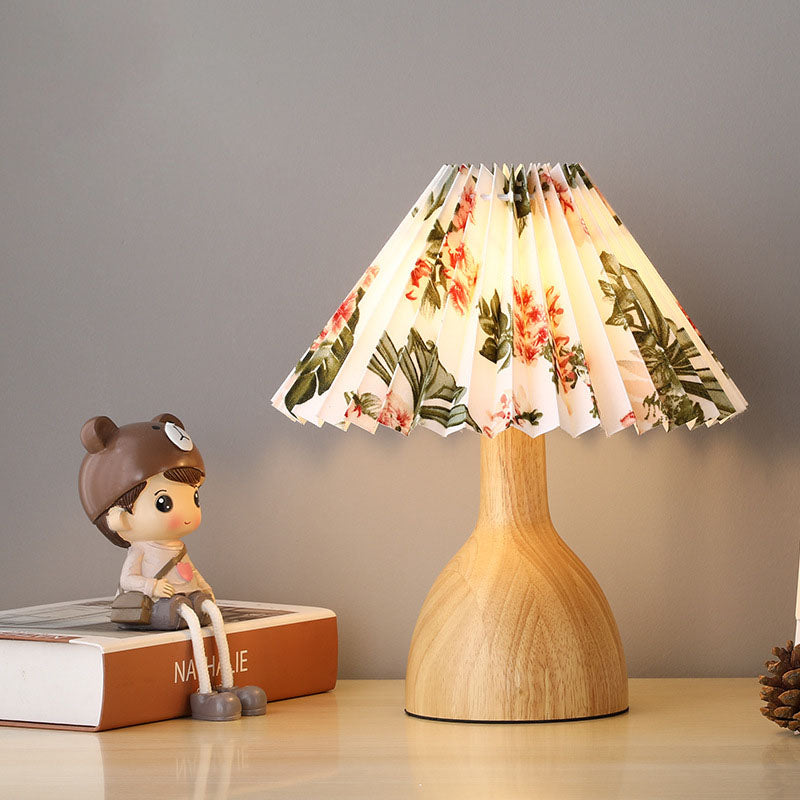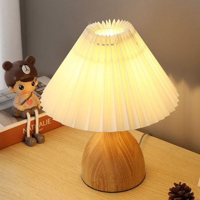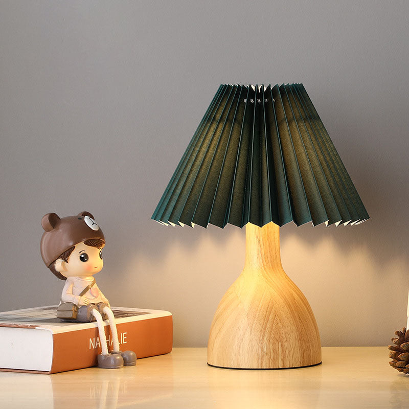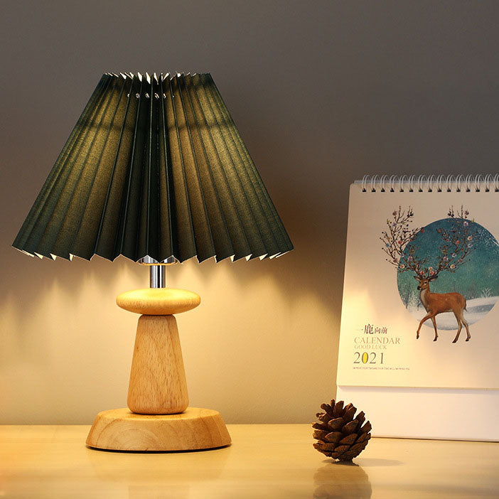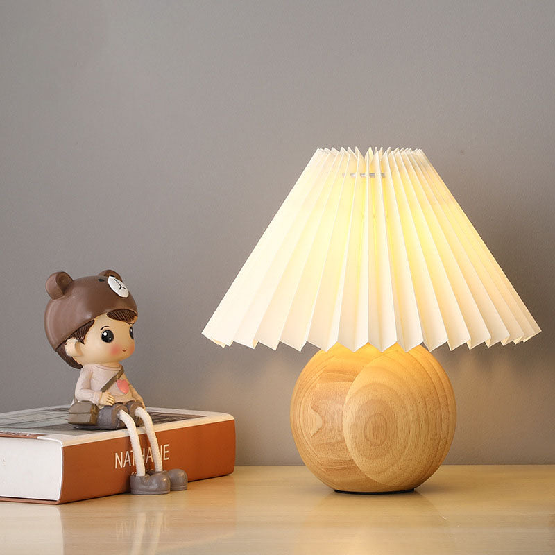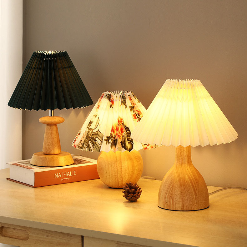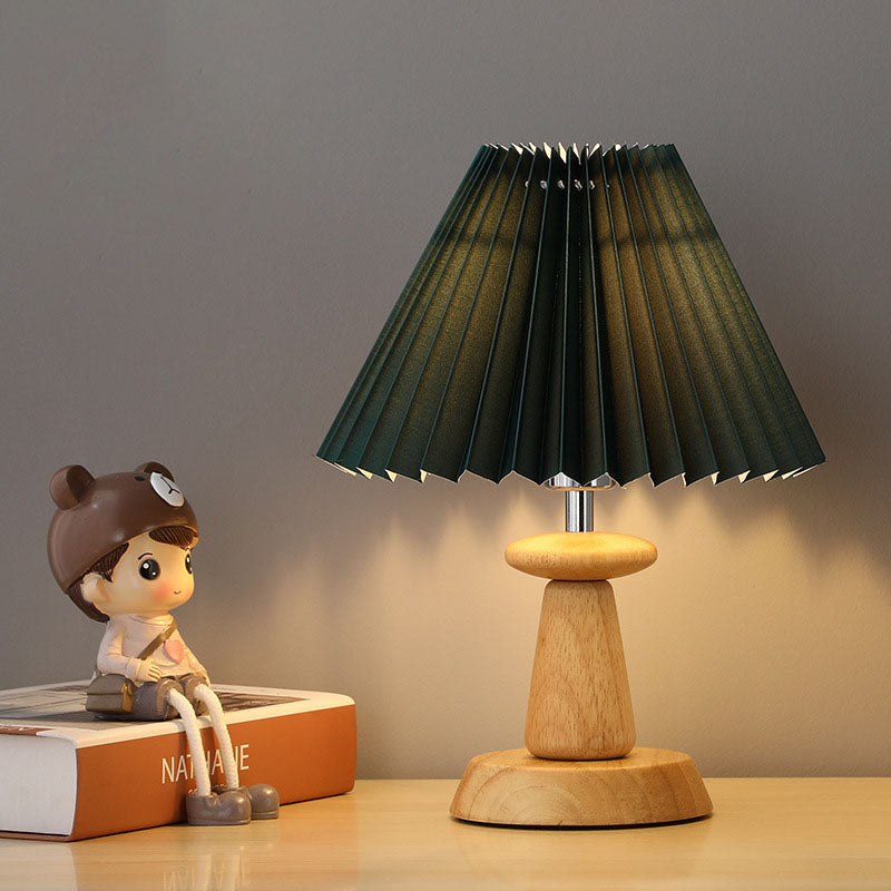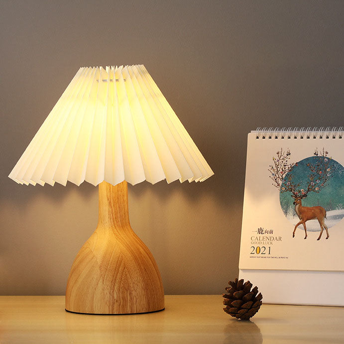 Contemporary Scandinavian Solid Wood Base PVC Lampshade 1-Light Table Lamp For Bedroom