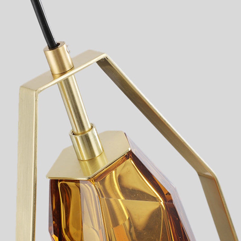 Contemporary Scandinavian Transparent Polygon Glass Iron Lampshade 1 - Light Pendant Light For Living Room