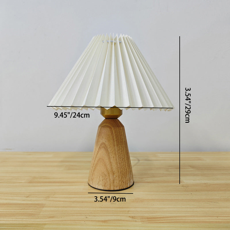 Contemporary Scandinavian Trapezoidal Pleated Fabric Wood 1-Light Table Lamp For Bedroom