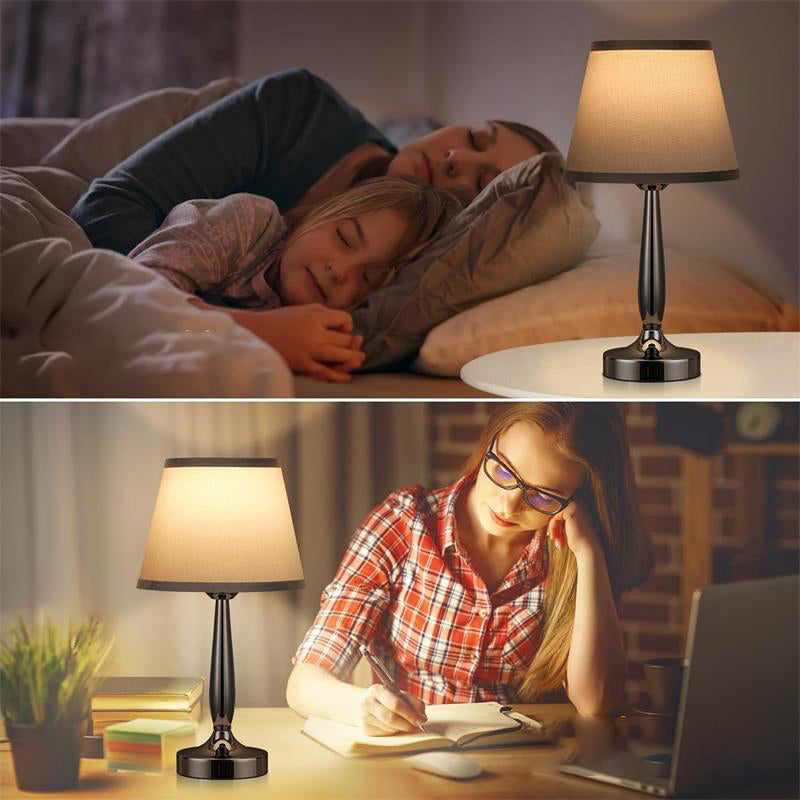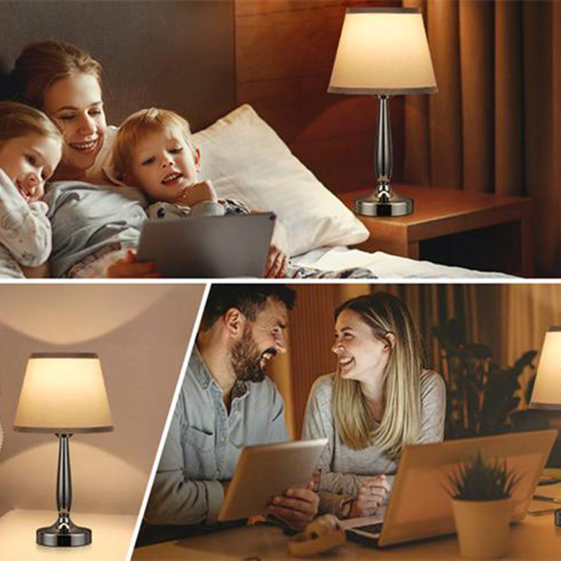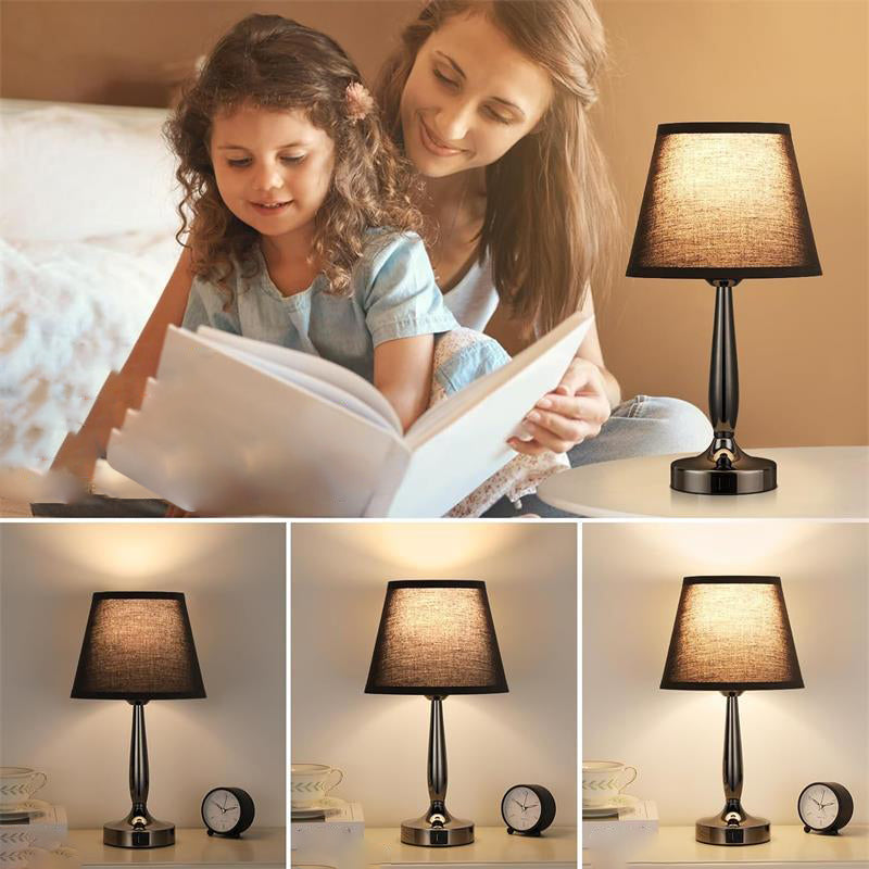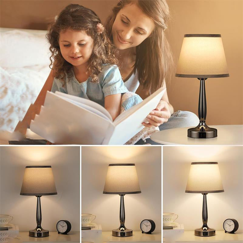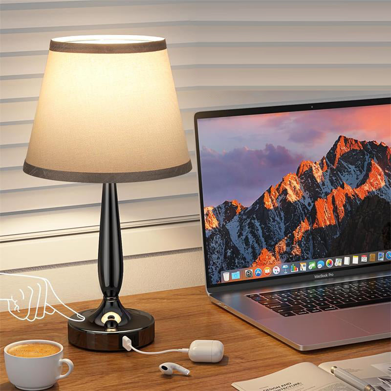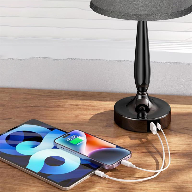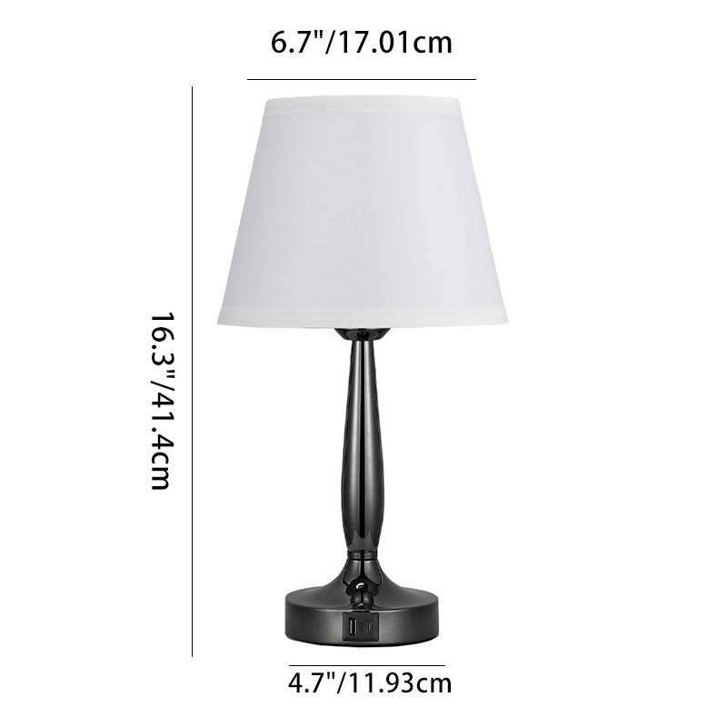 Contemporary Scandinavian USB Metal Fabric Cylinder 1-Light Table Lamp For Bedside