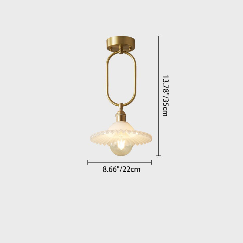 Contemporary Simplicity Conical Umbrella Semicircular Copper Glass 1 - Light Semi-Flush Mount Ceiling Light For Hallways