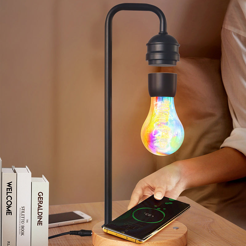 Contemporary Simplicity Rubber Wood Iron Magnetic Levitation LED Table Lamp For Study