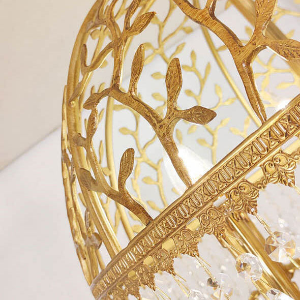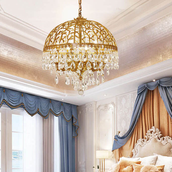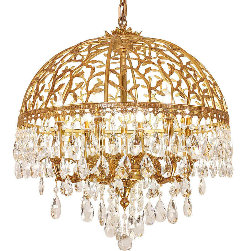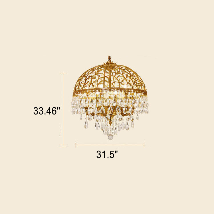 European Luxury Brass Carved Crystal Dome 6/8 Light Chandelier