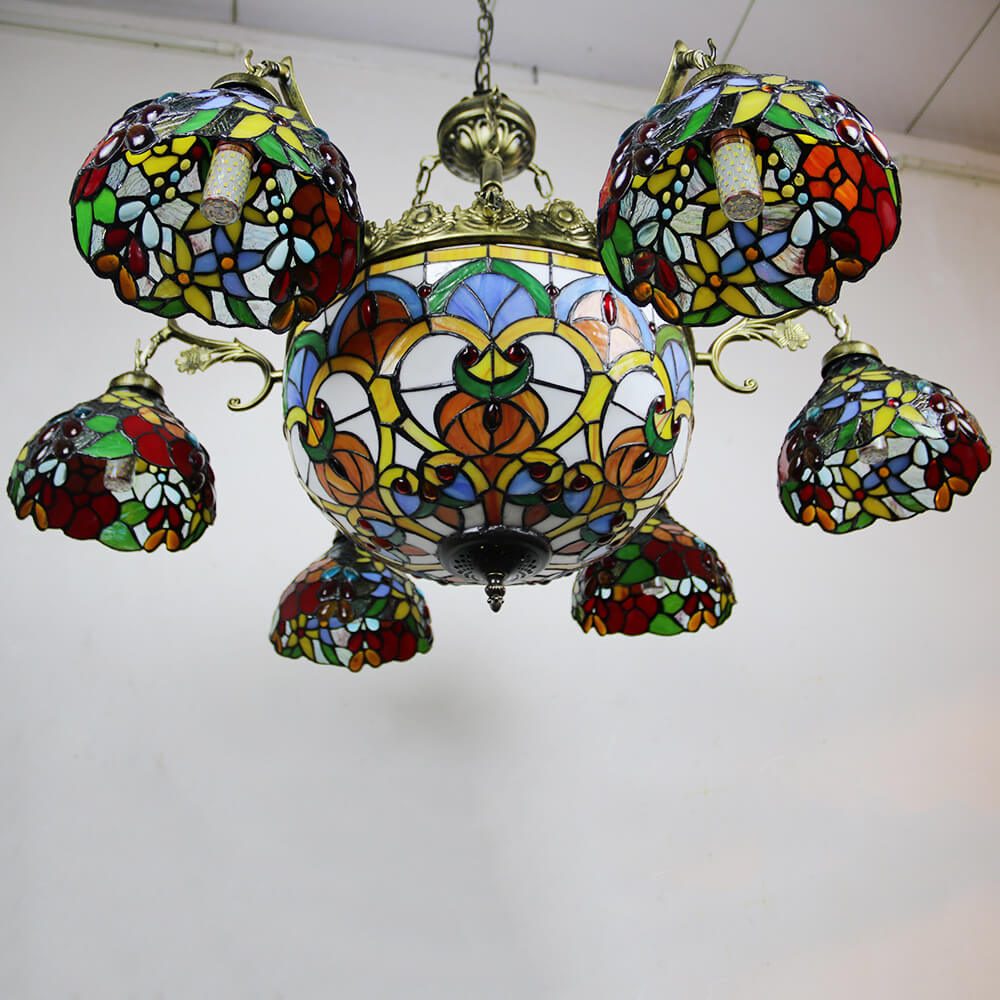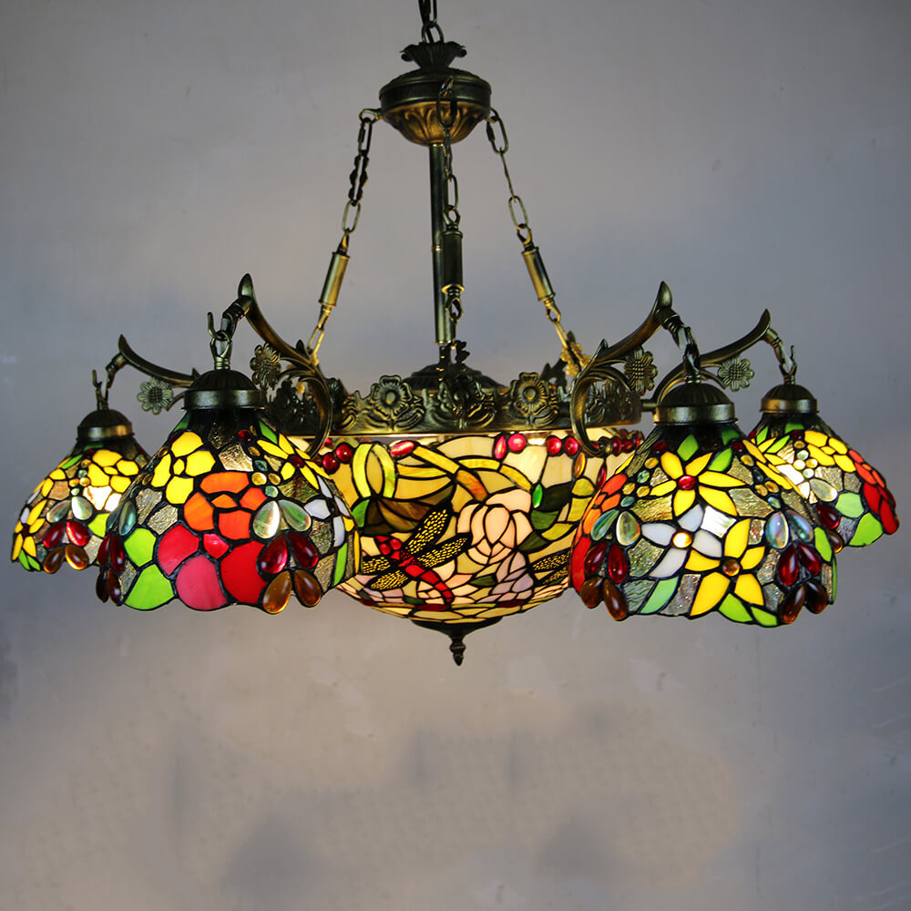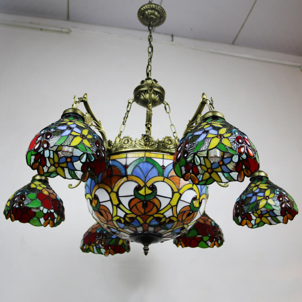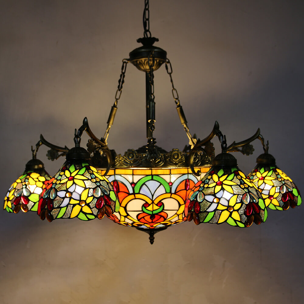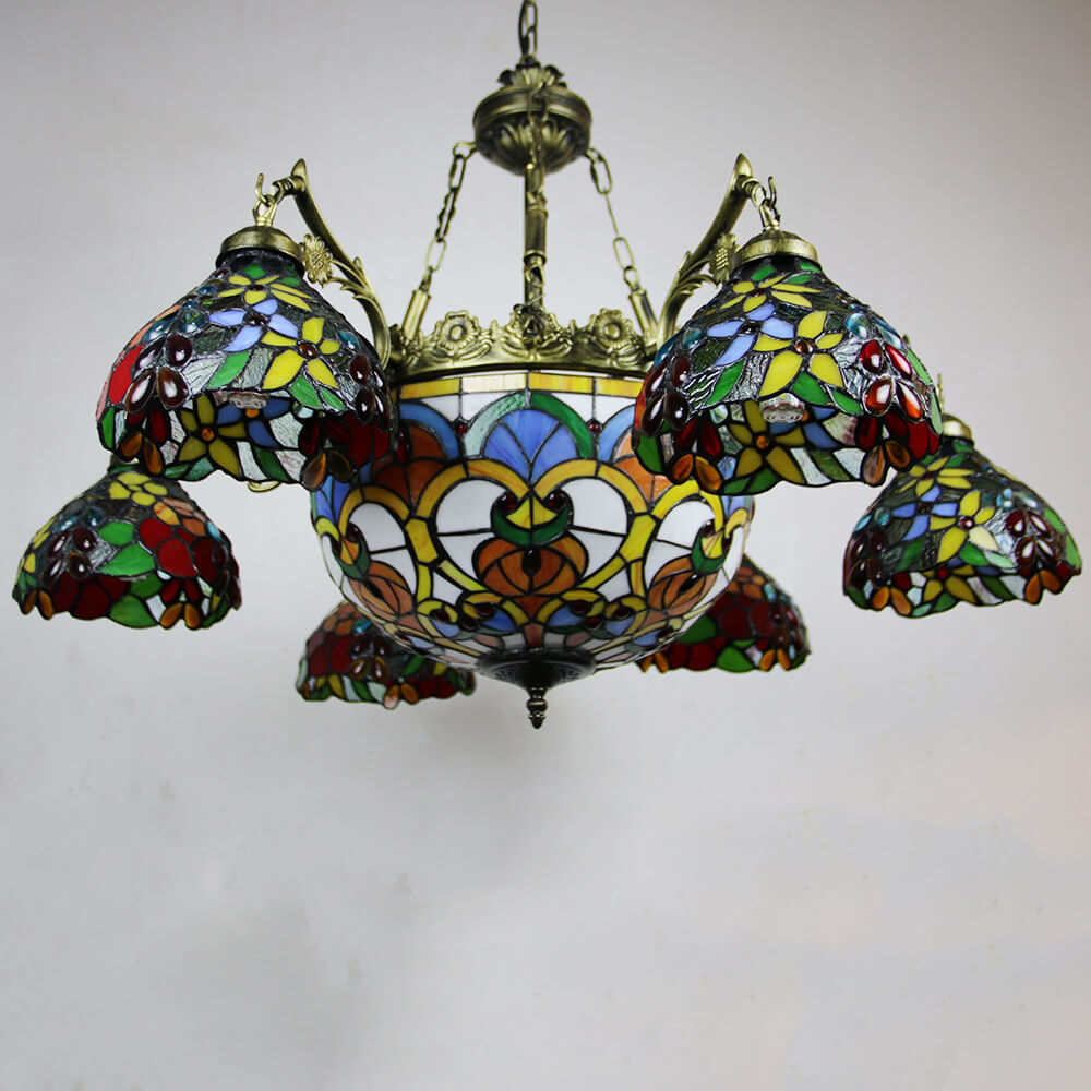 European Tiffany Vintage 9-Light Island Light Chandelier