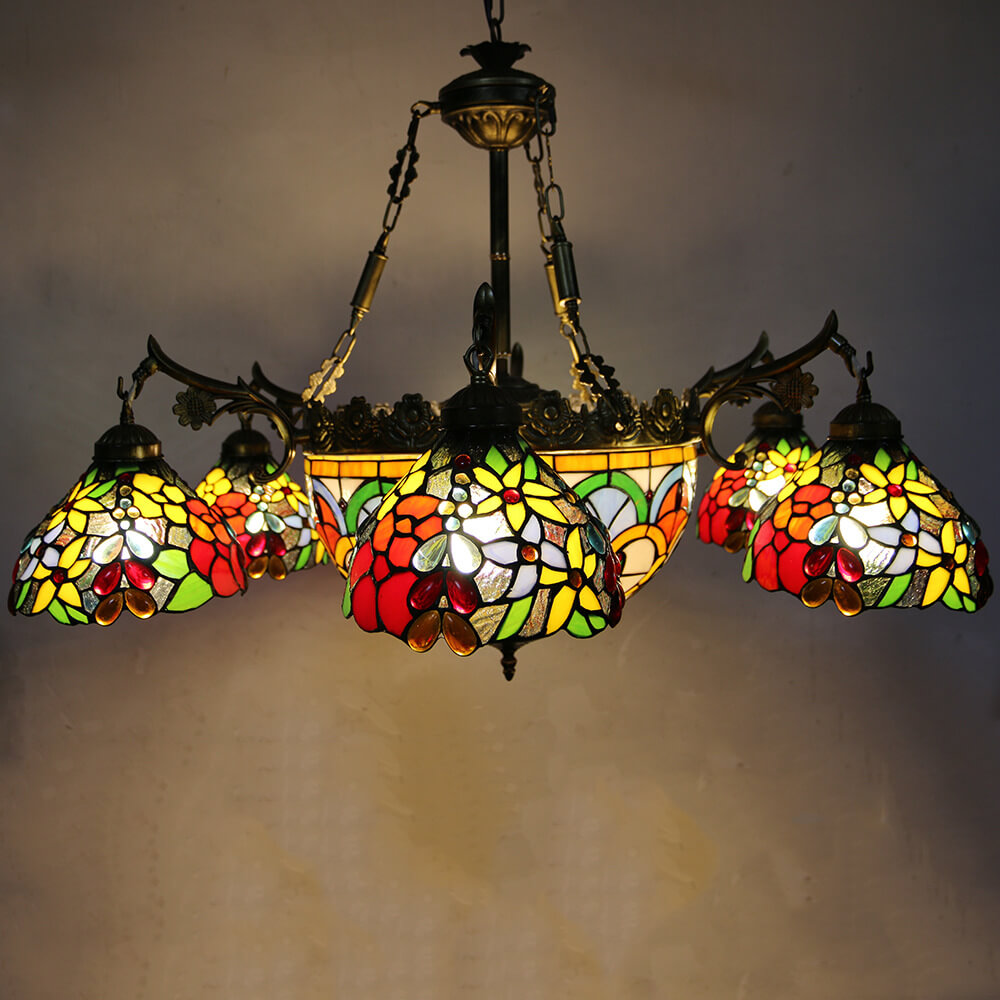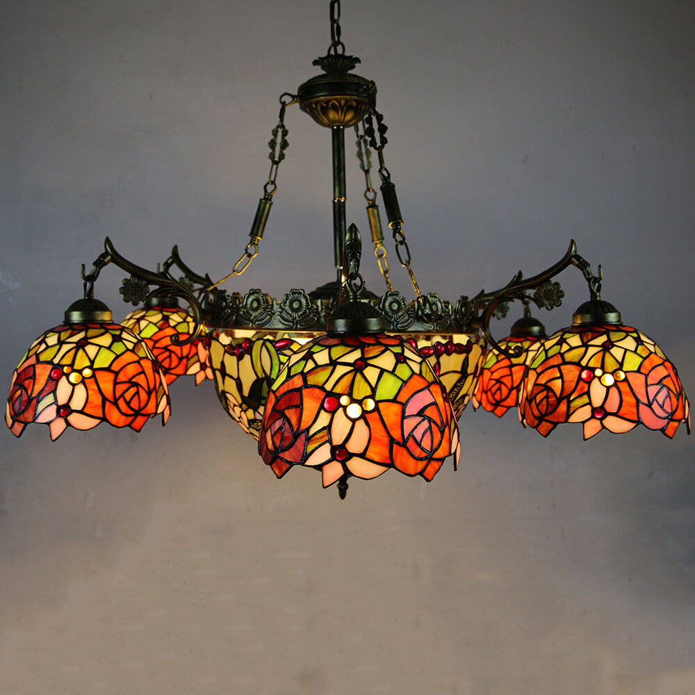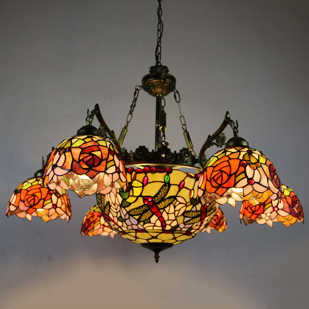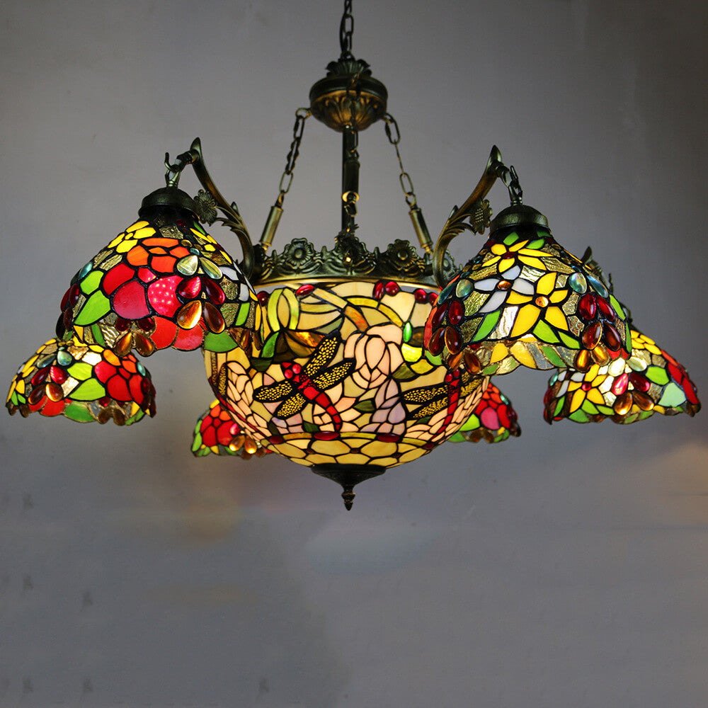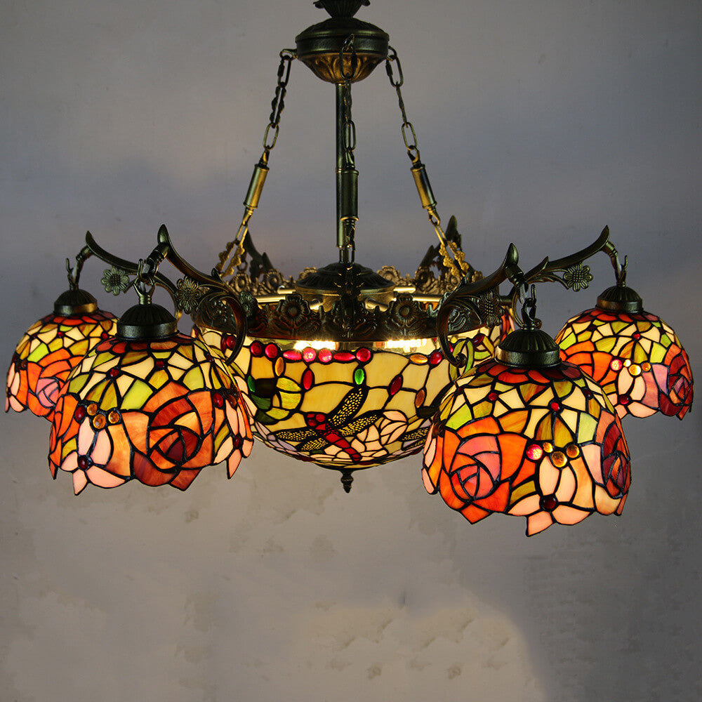 European Tiffany Vintage 9-Light Island Light Chandelier