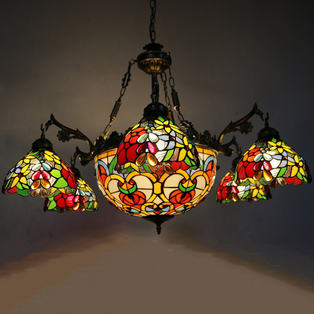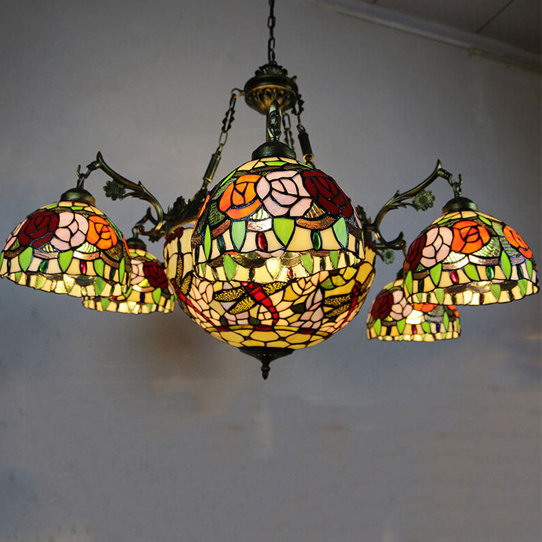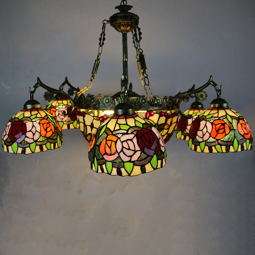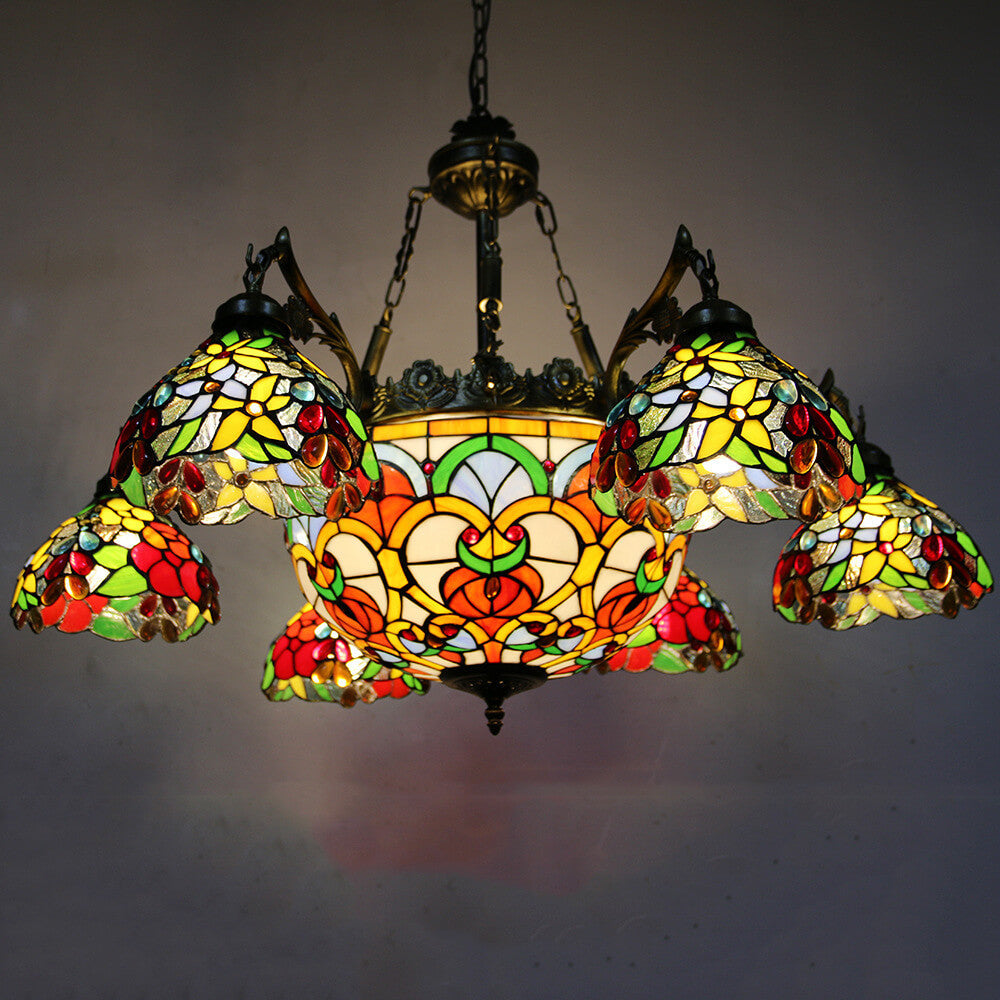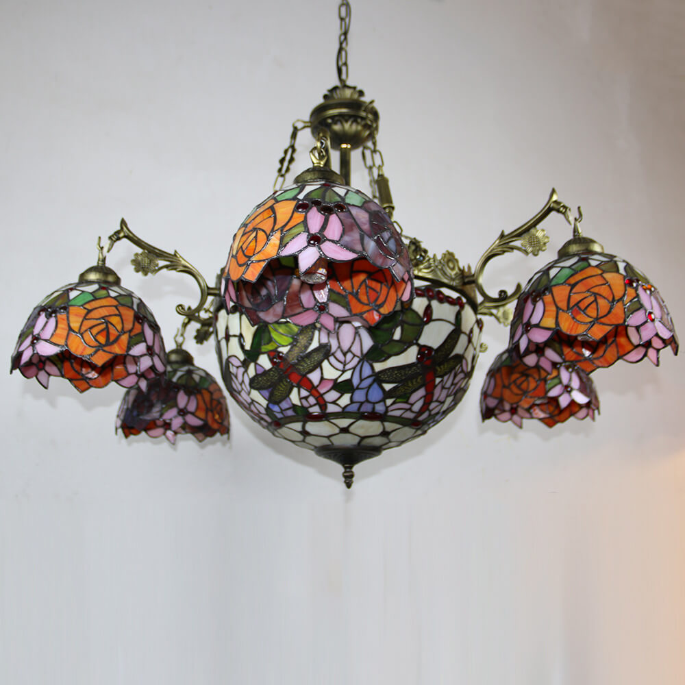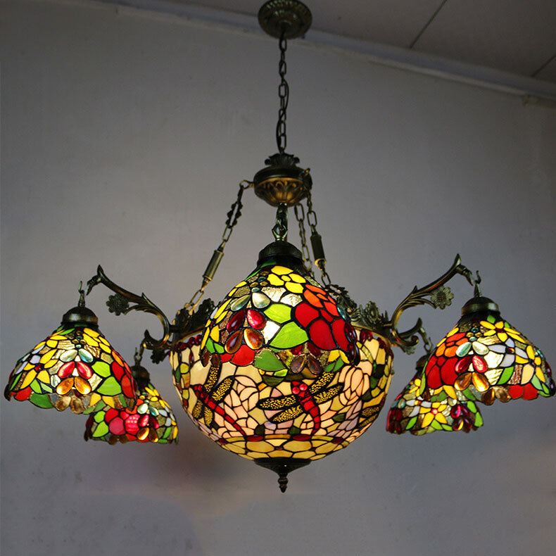 European Tiffany Vintage 9-Light Island Light Chandelier