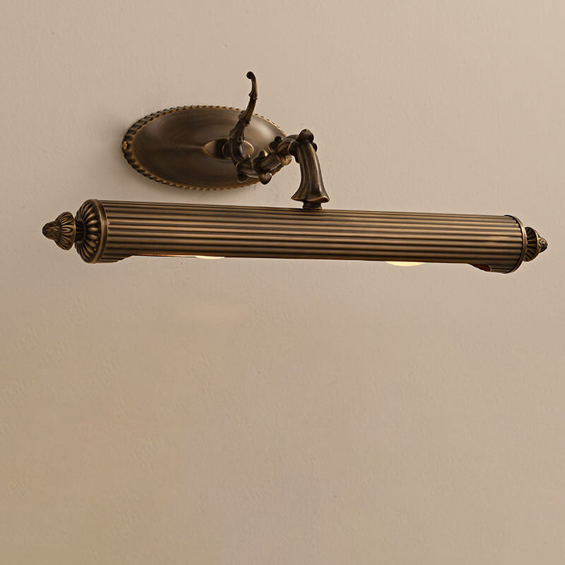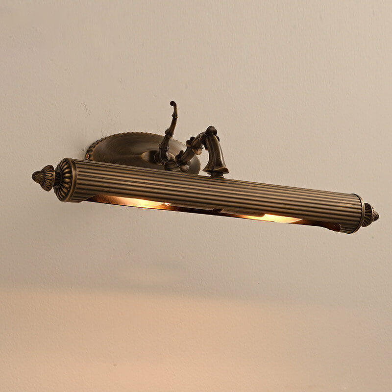 French Antique Copper Cylindrical 2-Light Mirror Front Wall Sconce Lamp